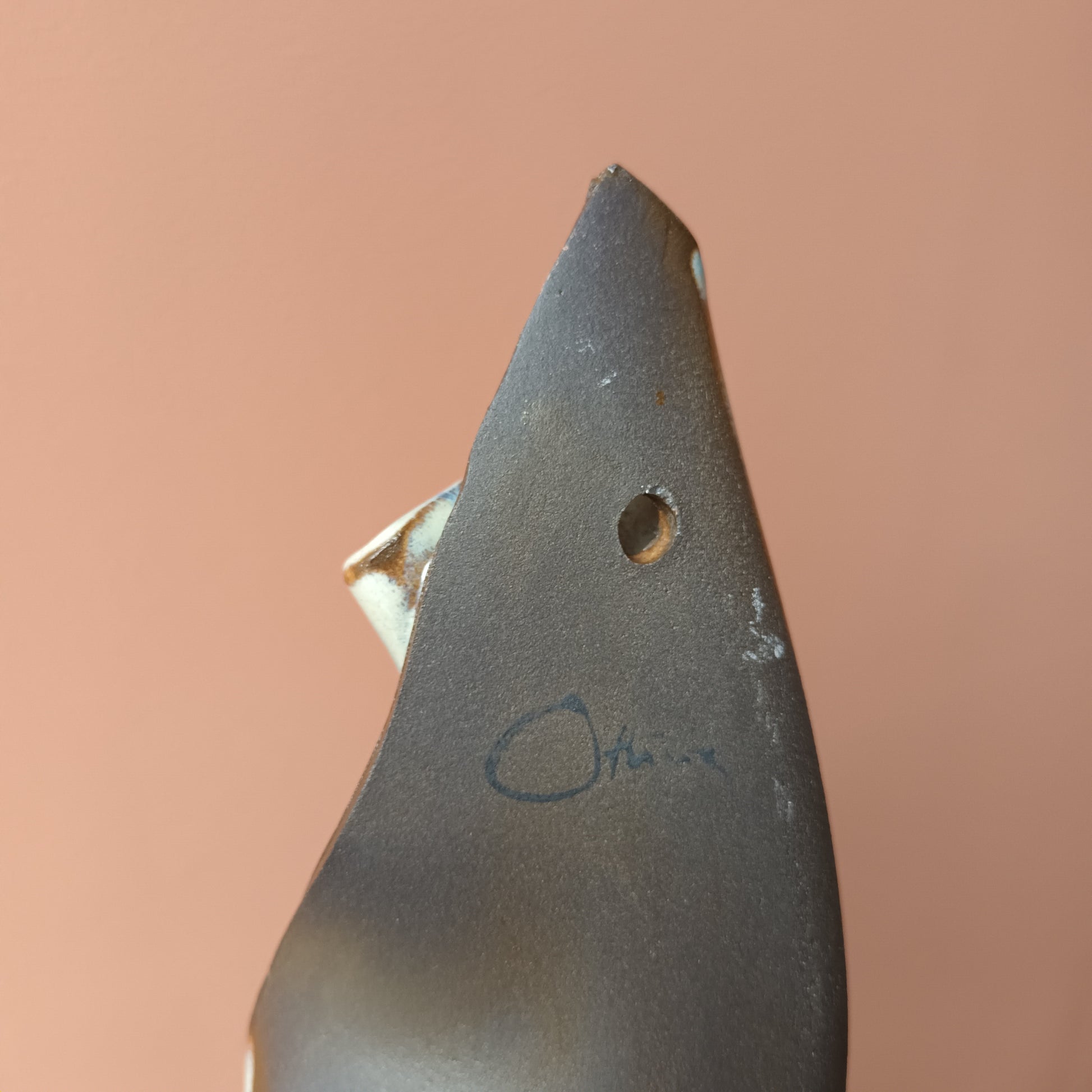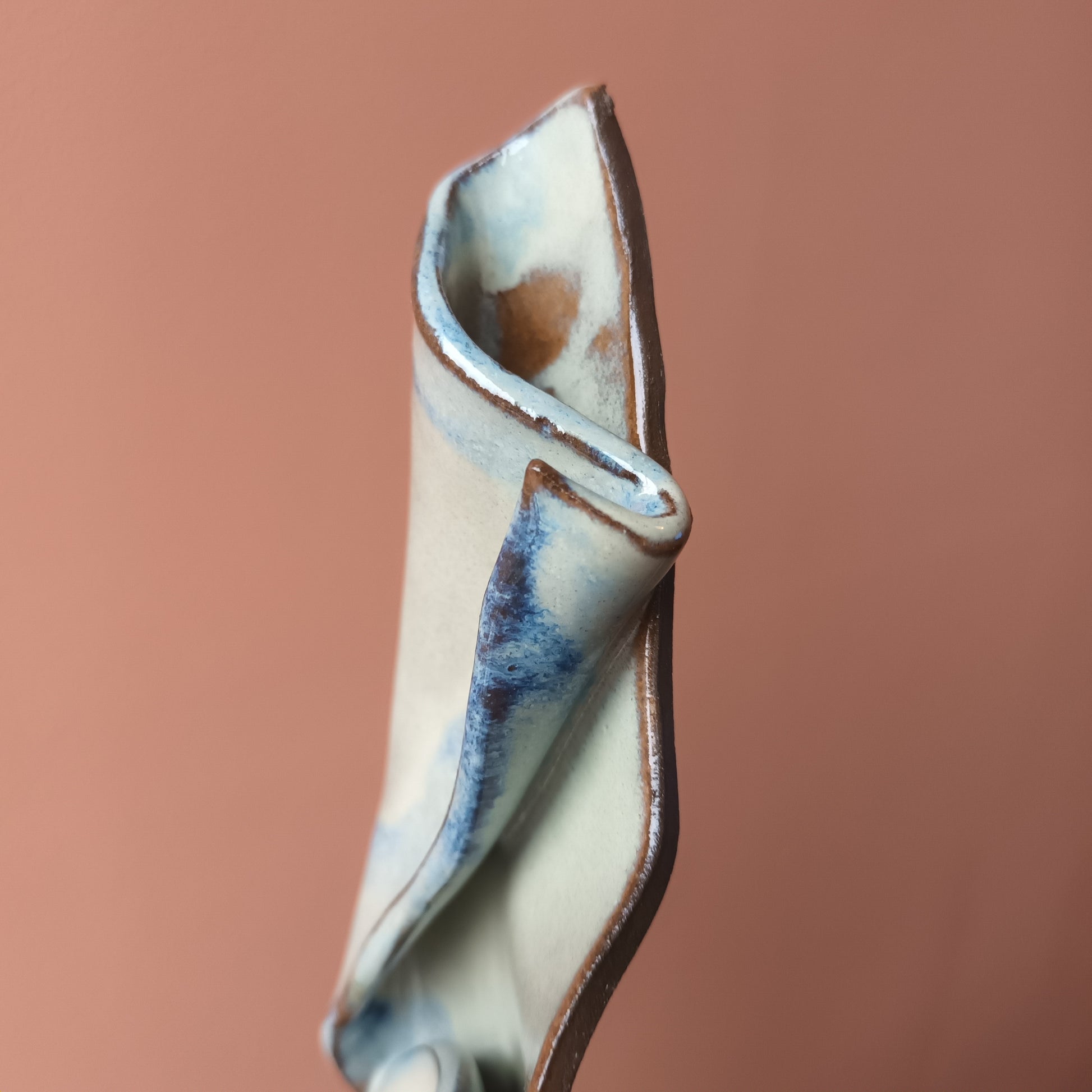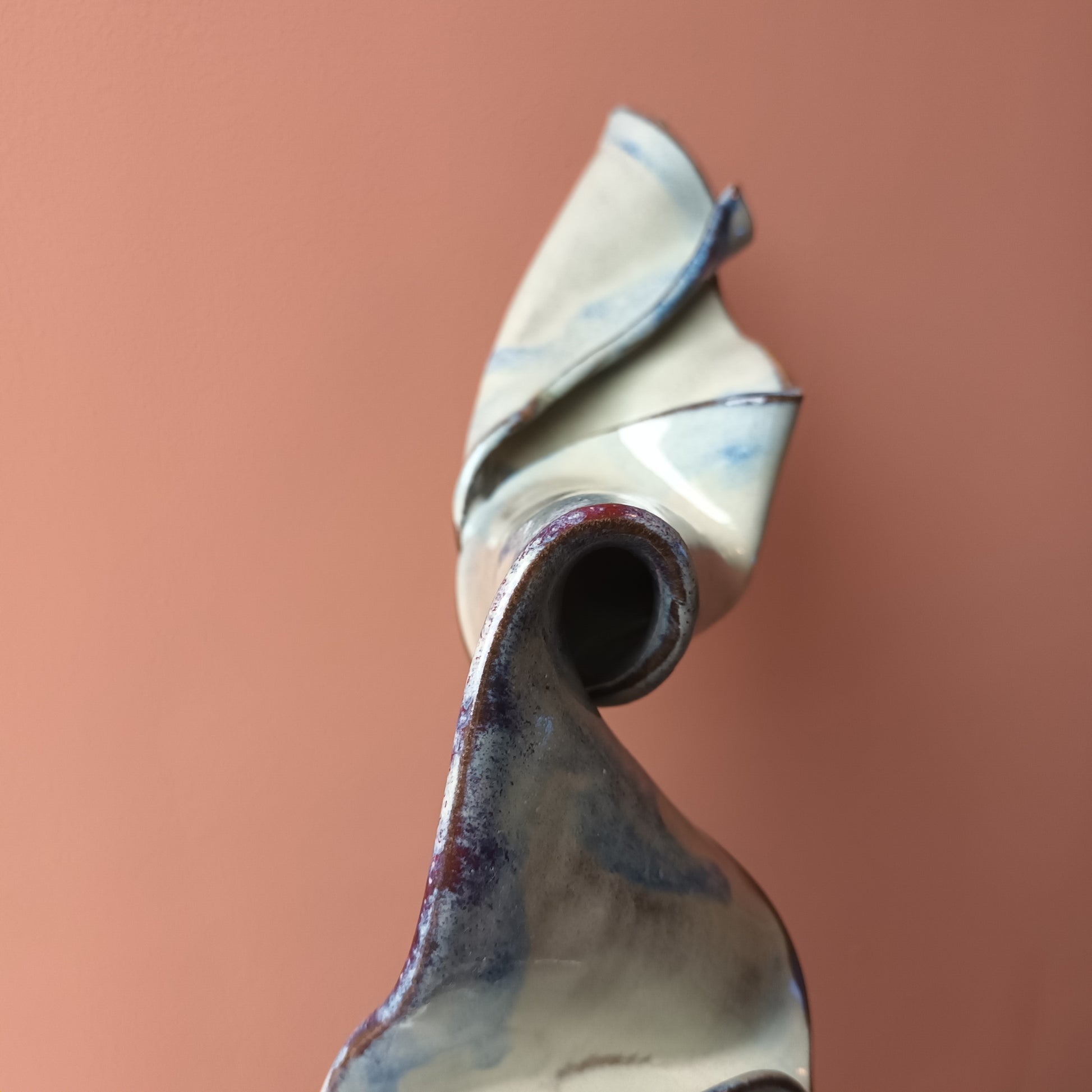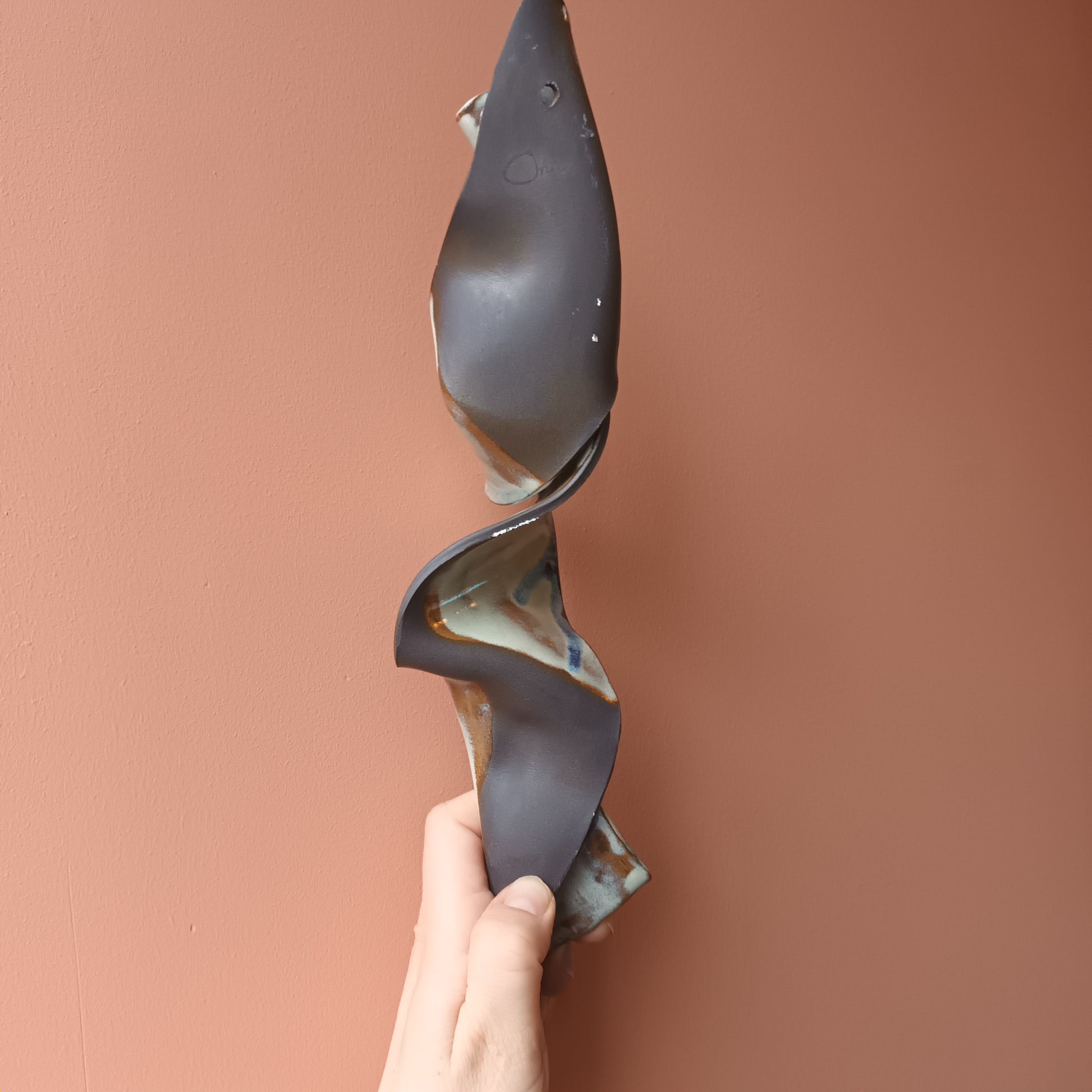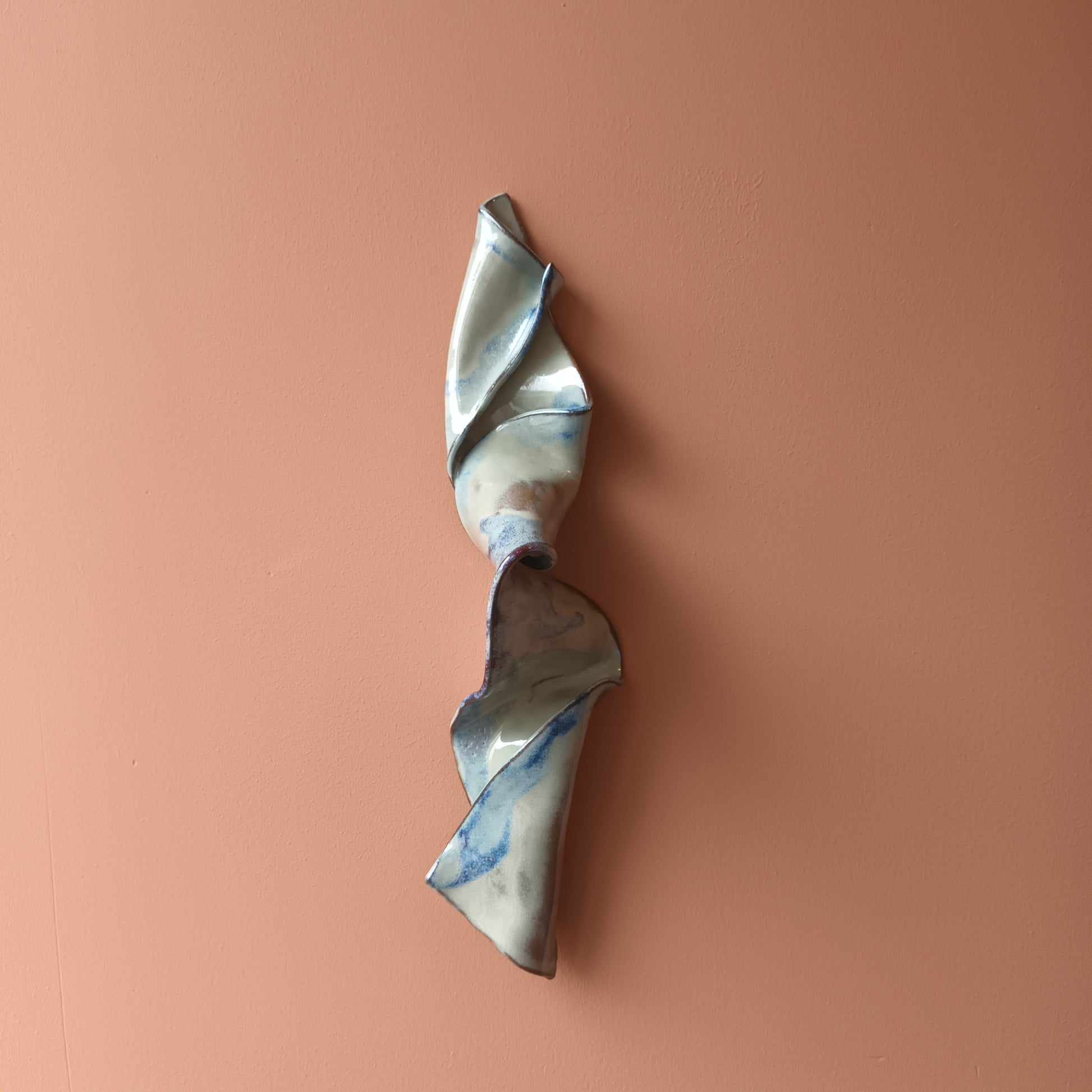 Blågrøn krummelure med røde nuancer. Unika keramikkunst modelleret og håndmalet af Martine Othilie. Hæng den på din væg og skab dybde og liv.