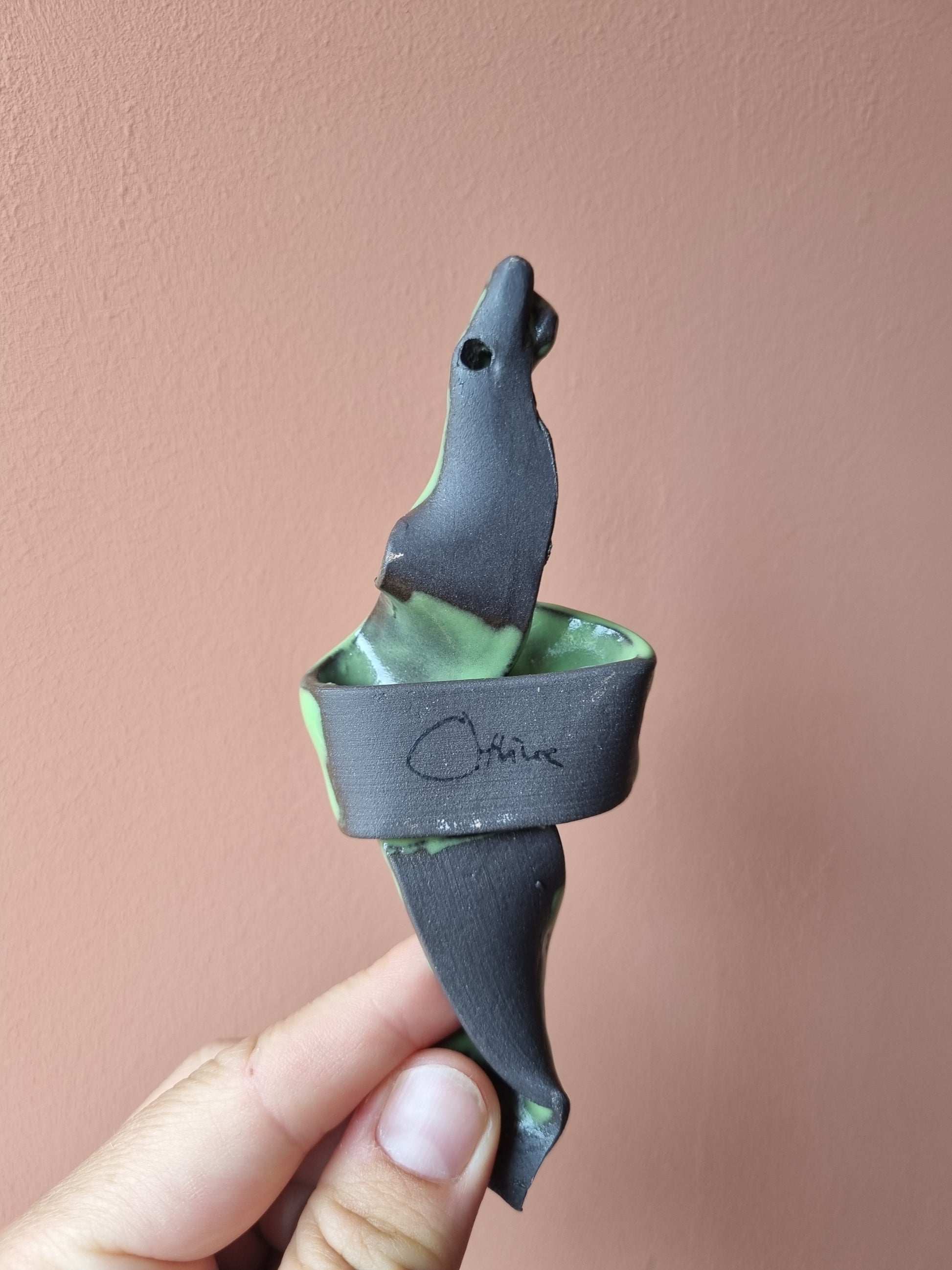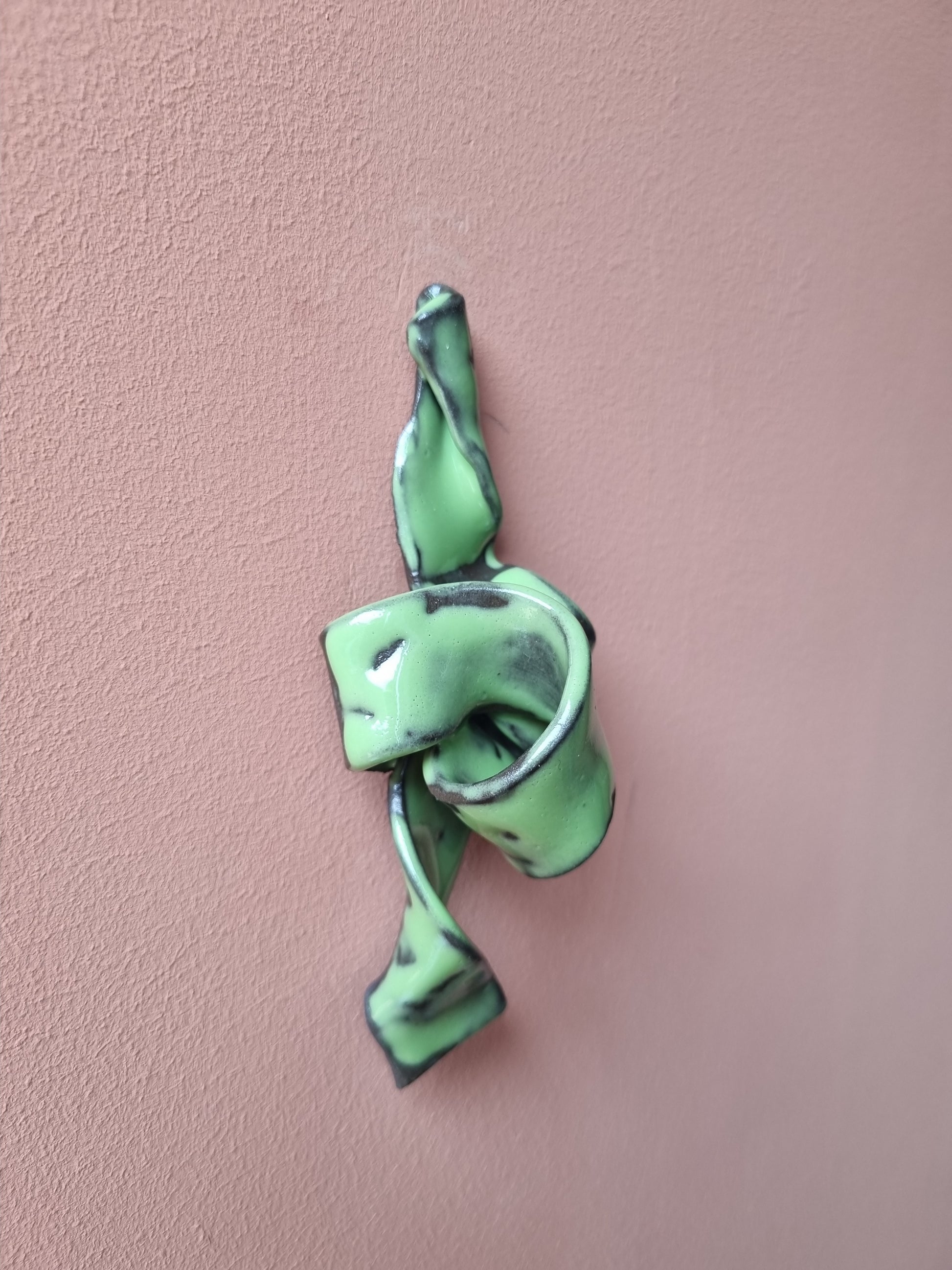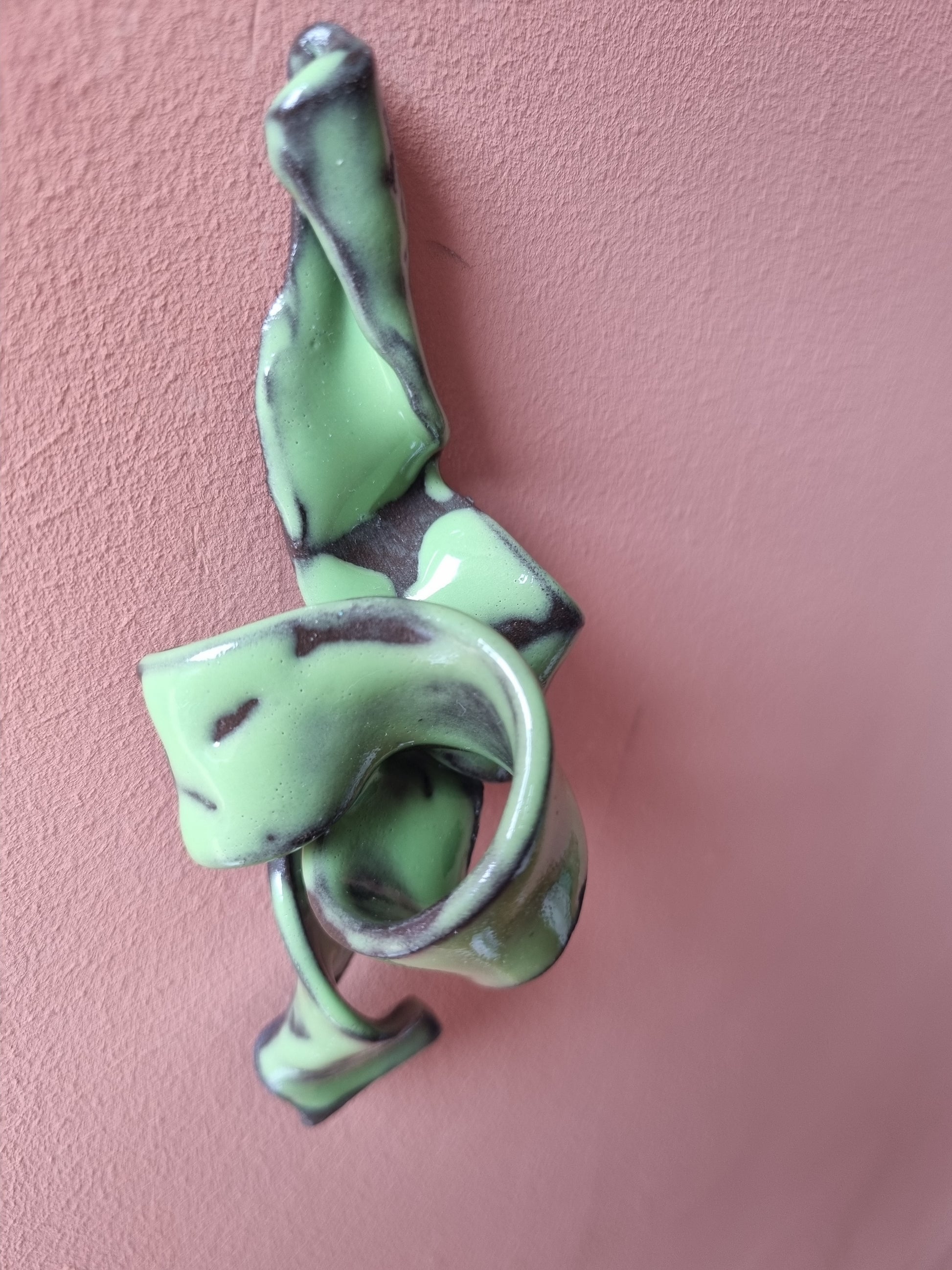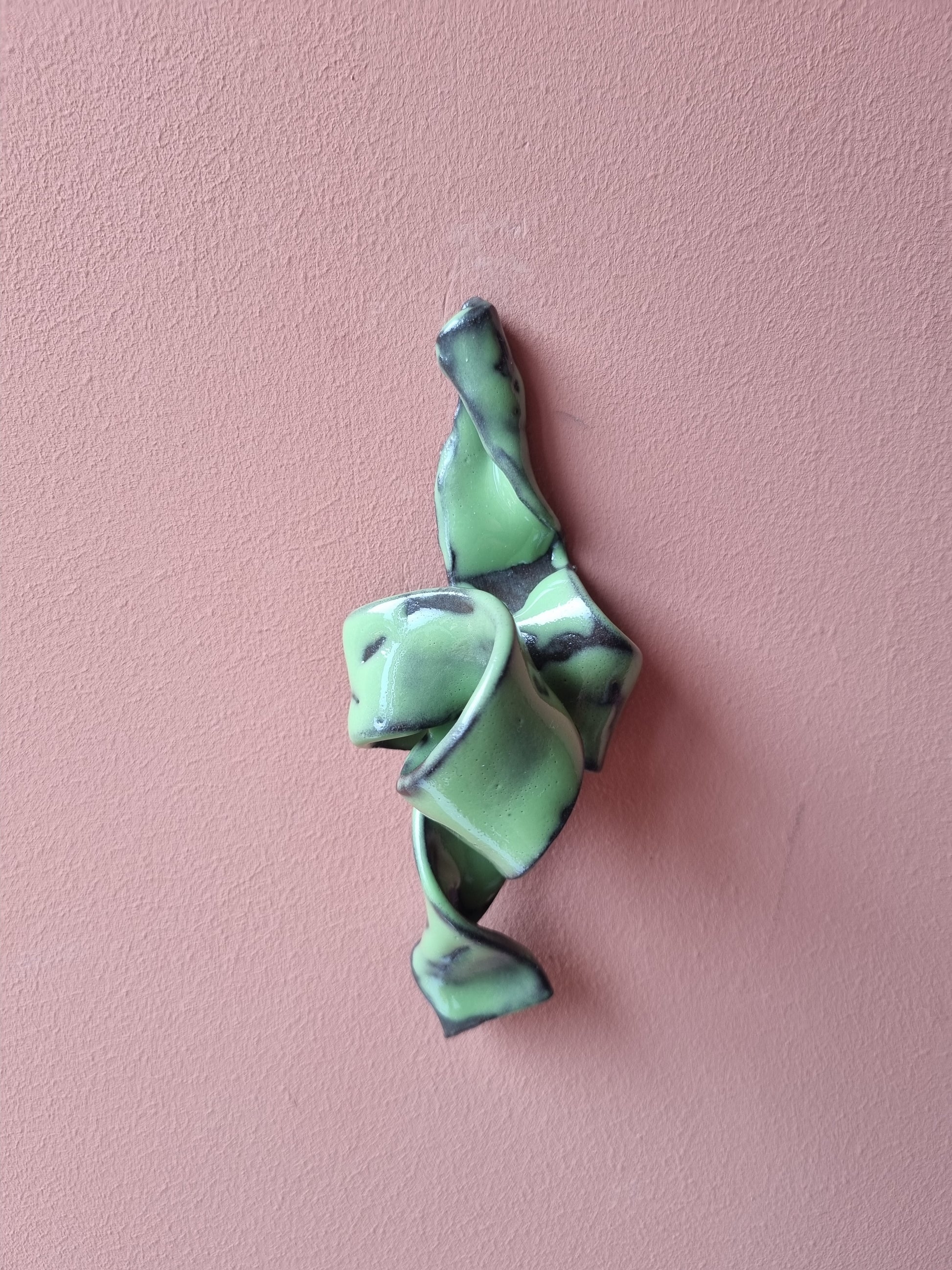 Lækker lille grøn krummelure , der vil skabe stemning og dybde på din væg. Håndlavet unika lavet af keramikkunstner Martine Othilie.