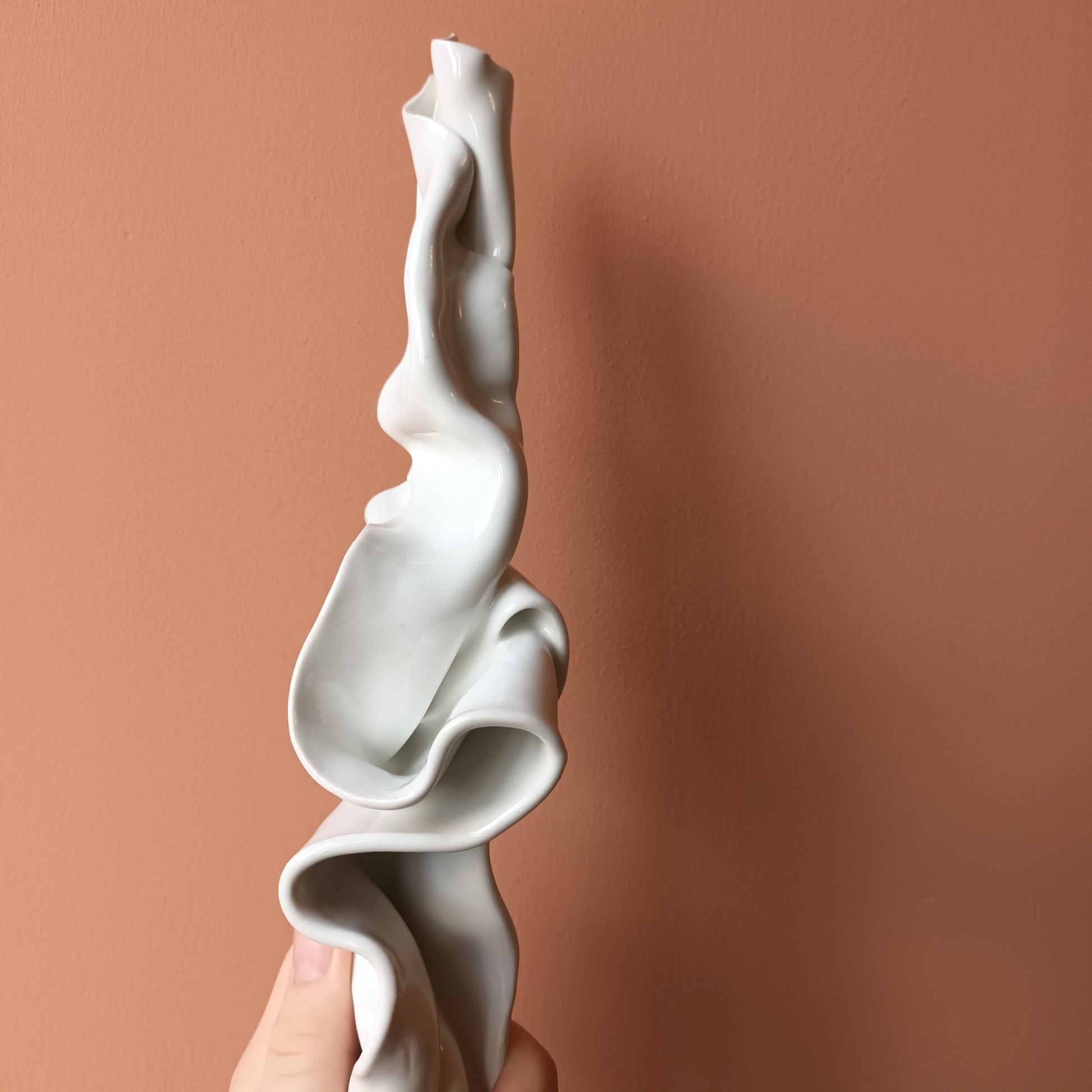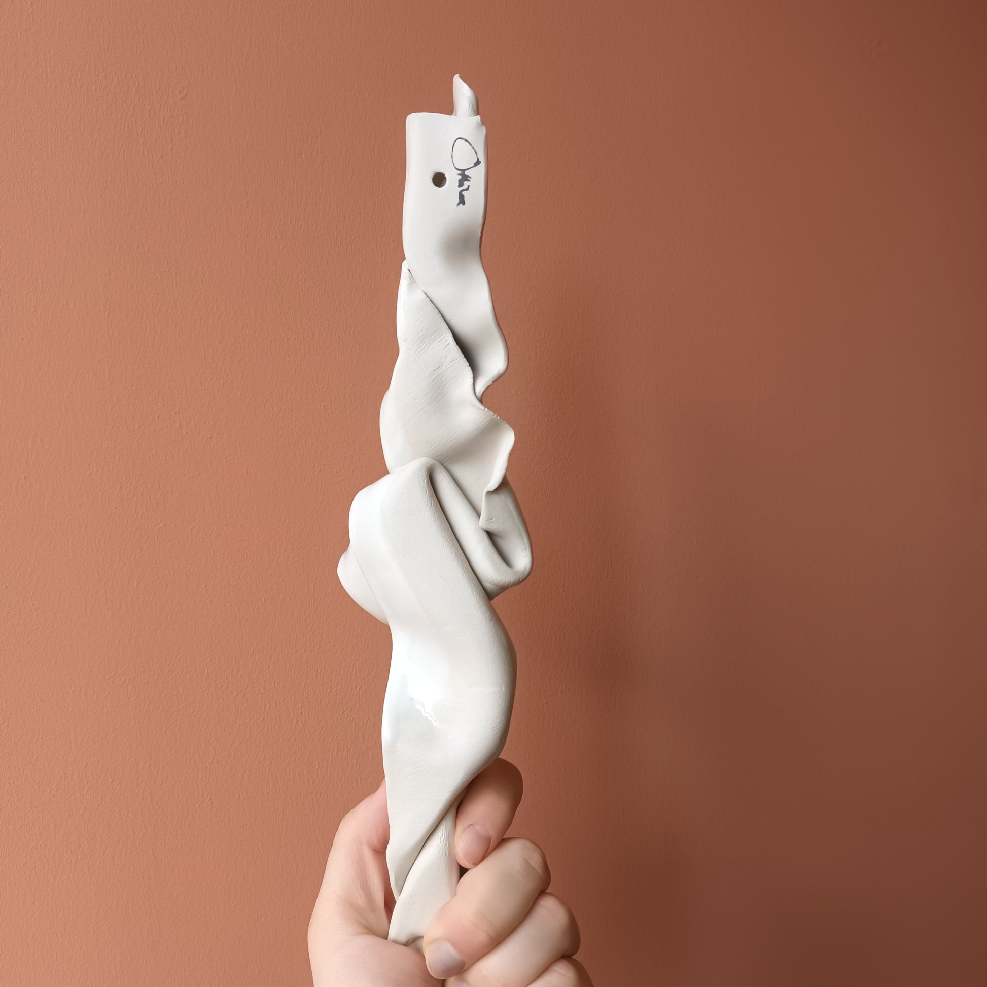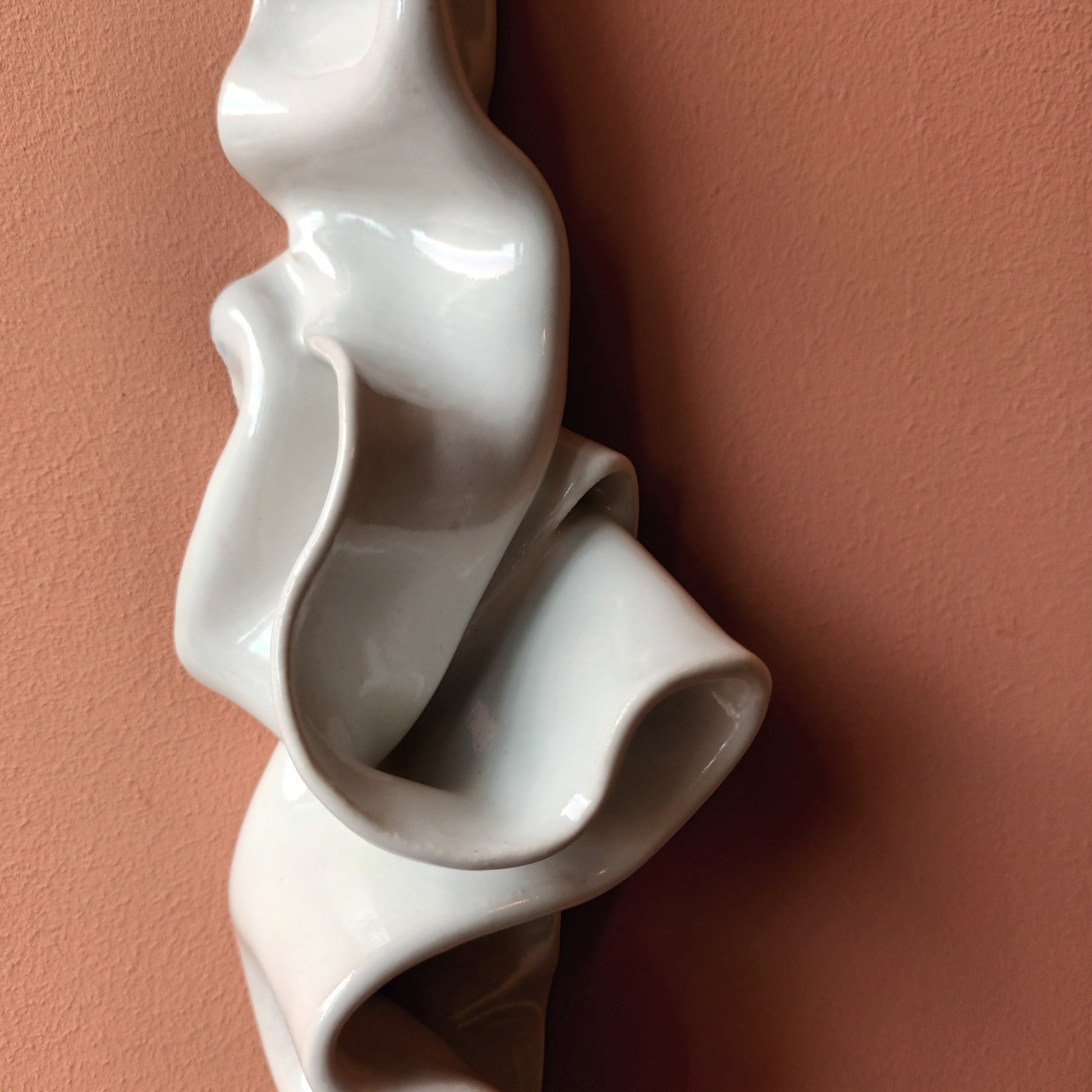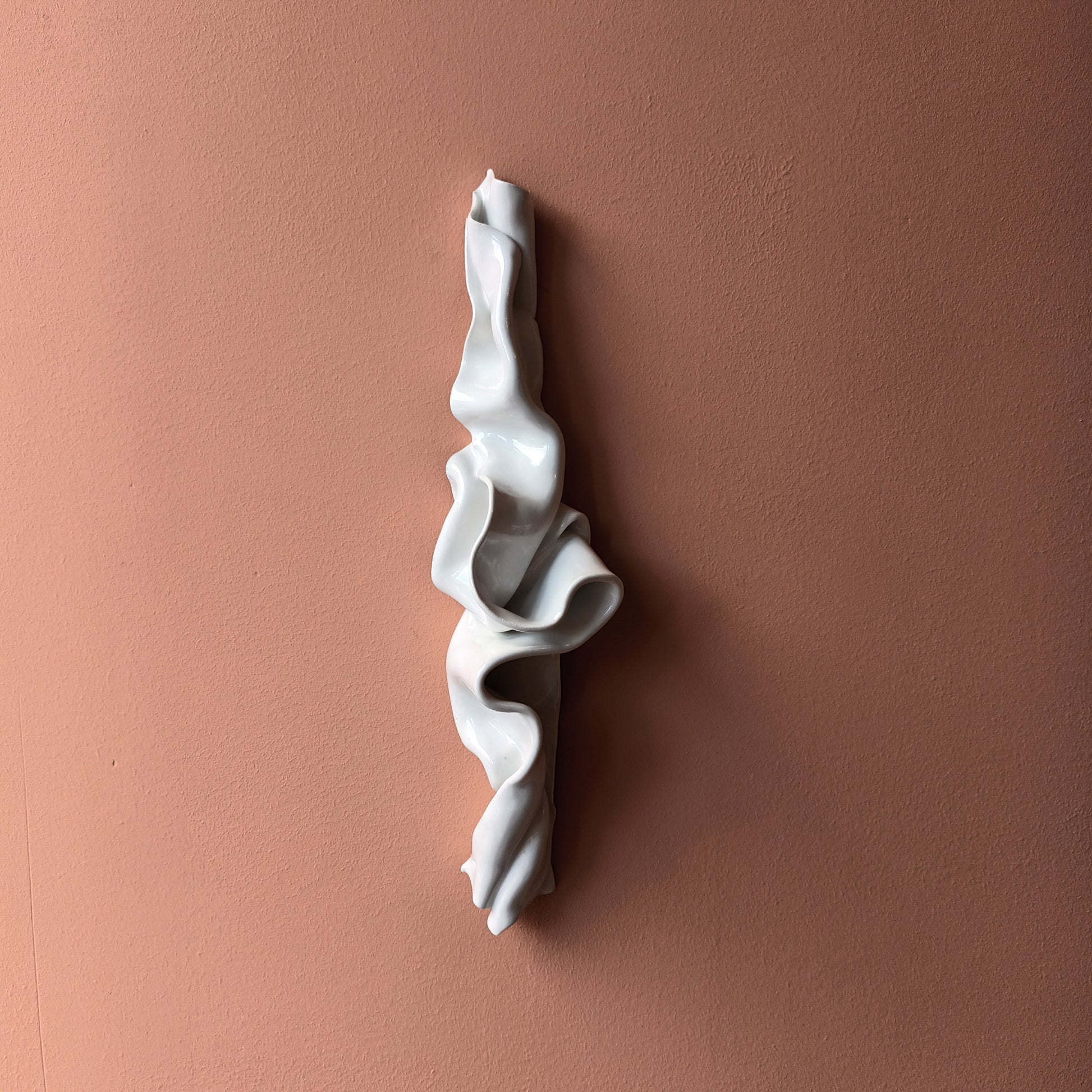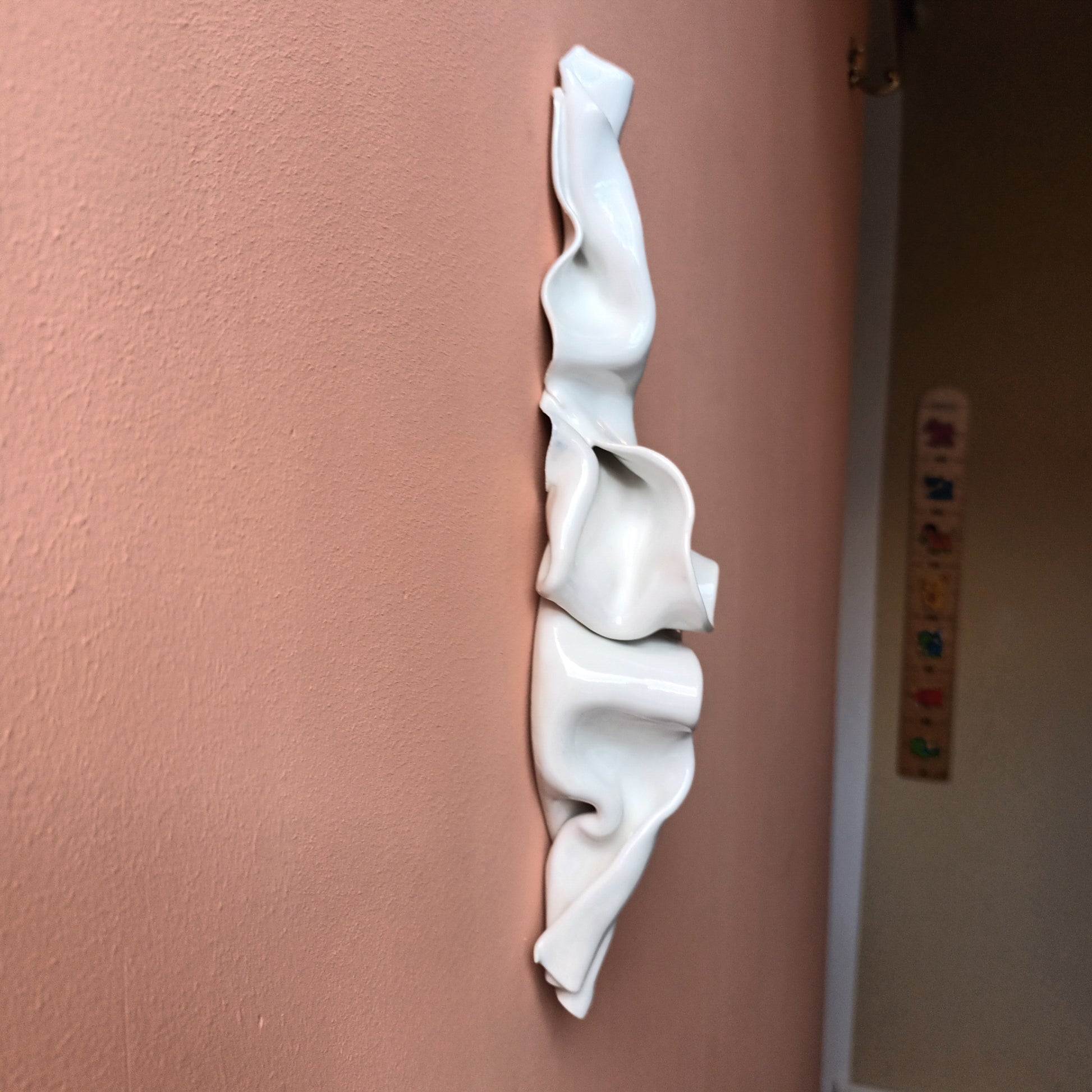 Hvid krummelure i porcelæn. Unika keramikkunst modelleret og håndmalet af Martine Othilie. Hæng den på din væg og skab dybde og liv.