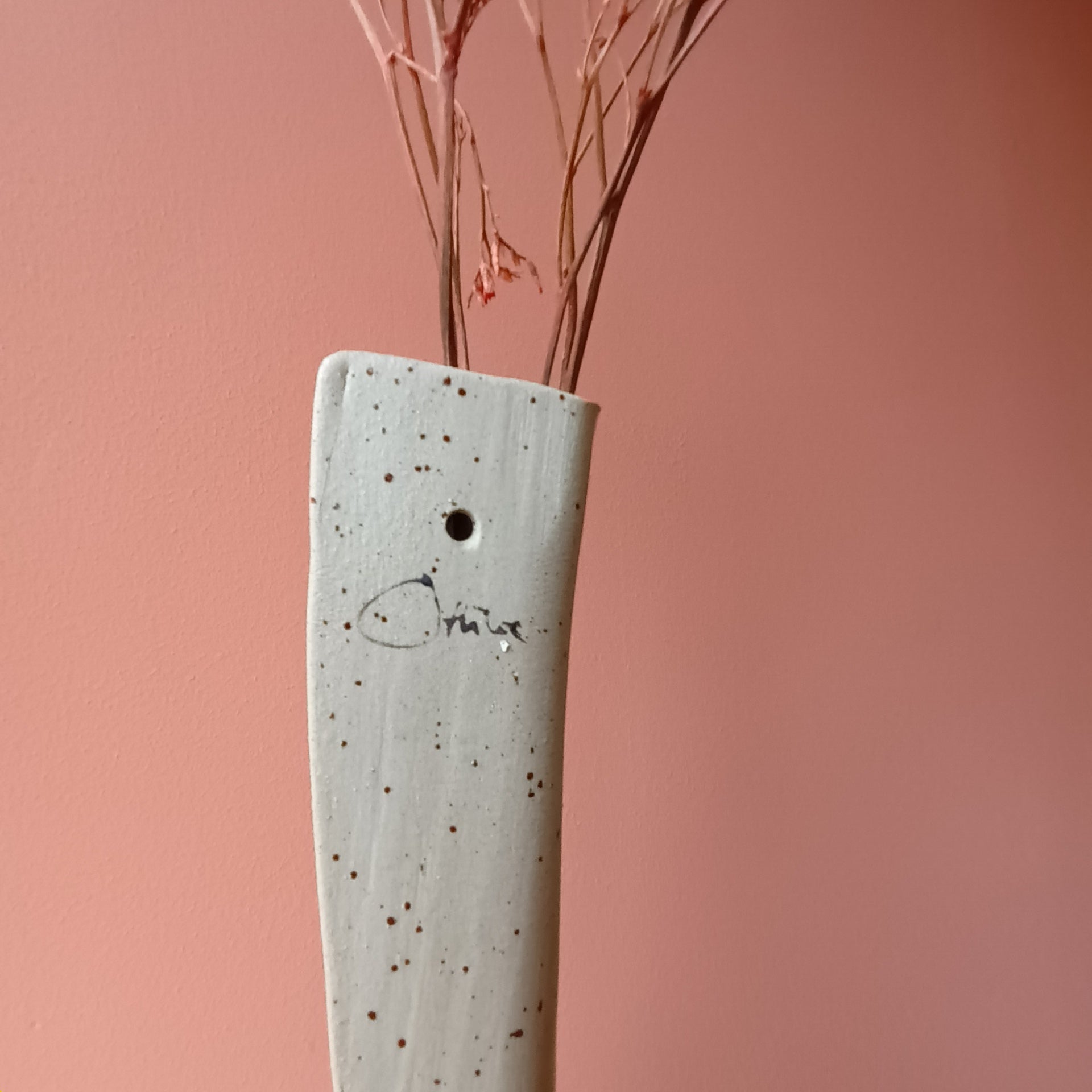 Håndlavet unika keramikvægvase til den lille blomst dit barn kommer hjem med, en mere permanent fin tørret blomst eller papirblomster.