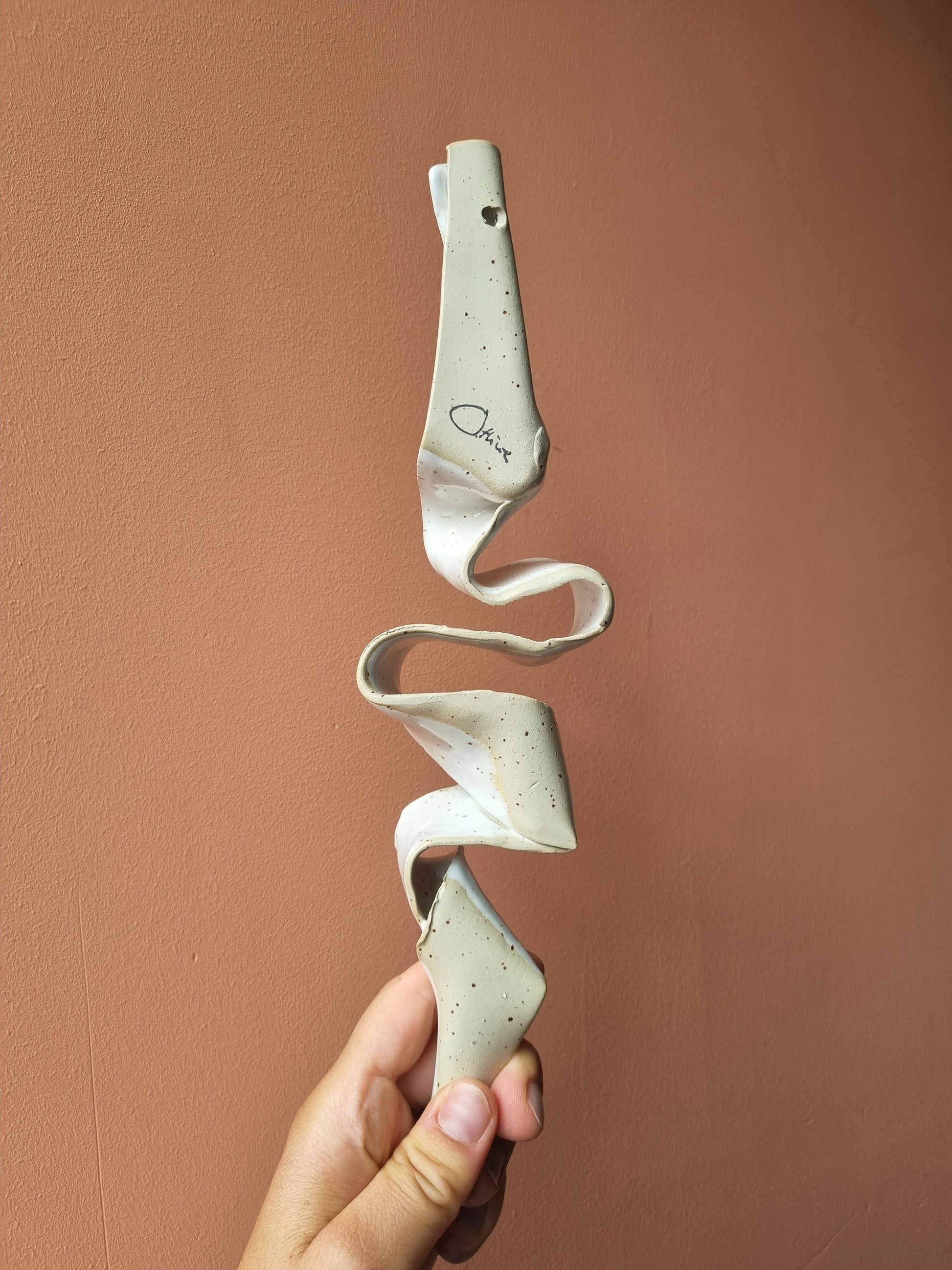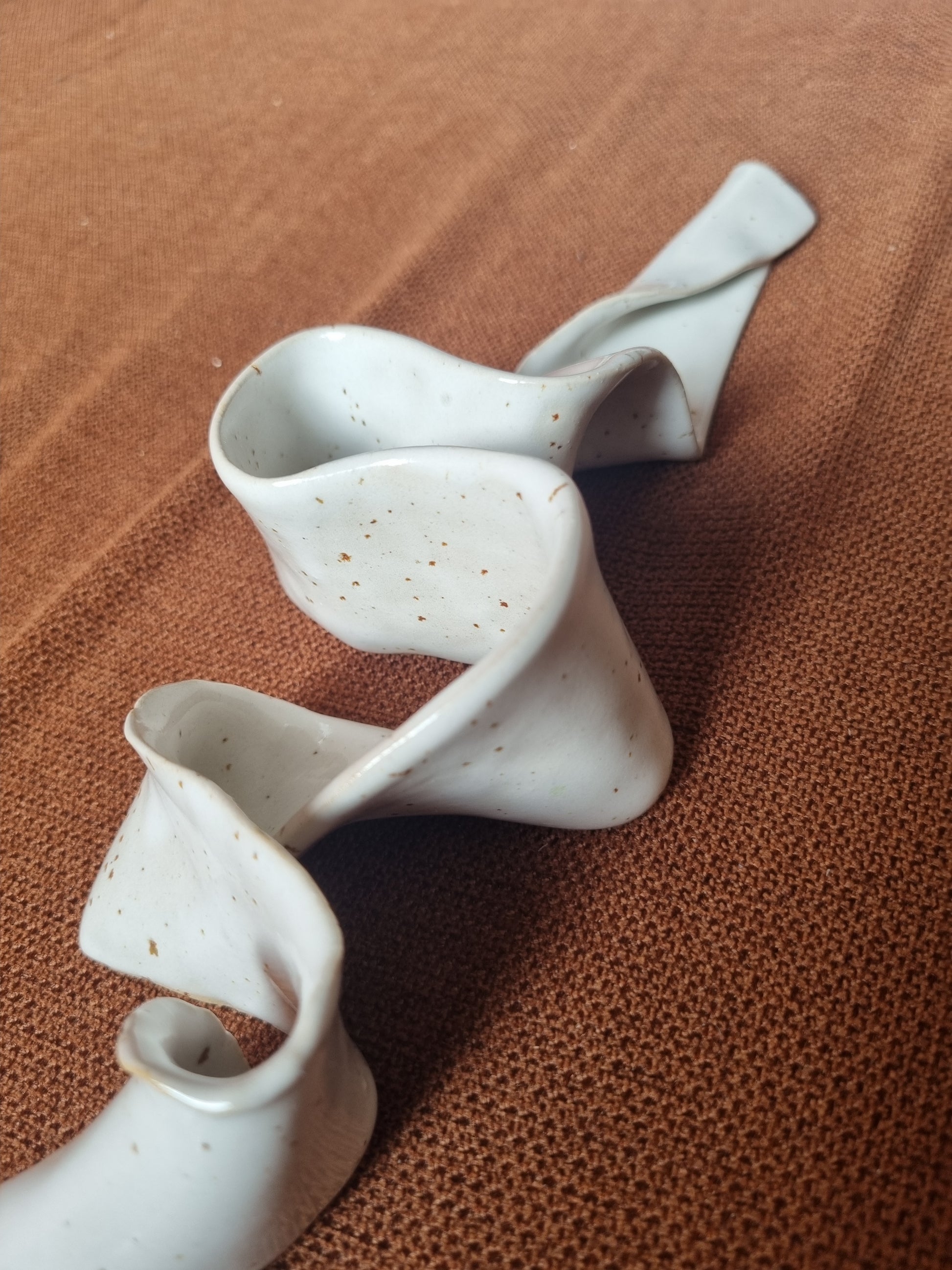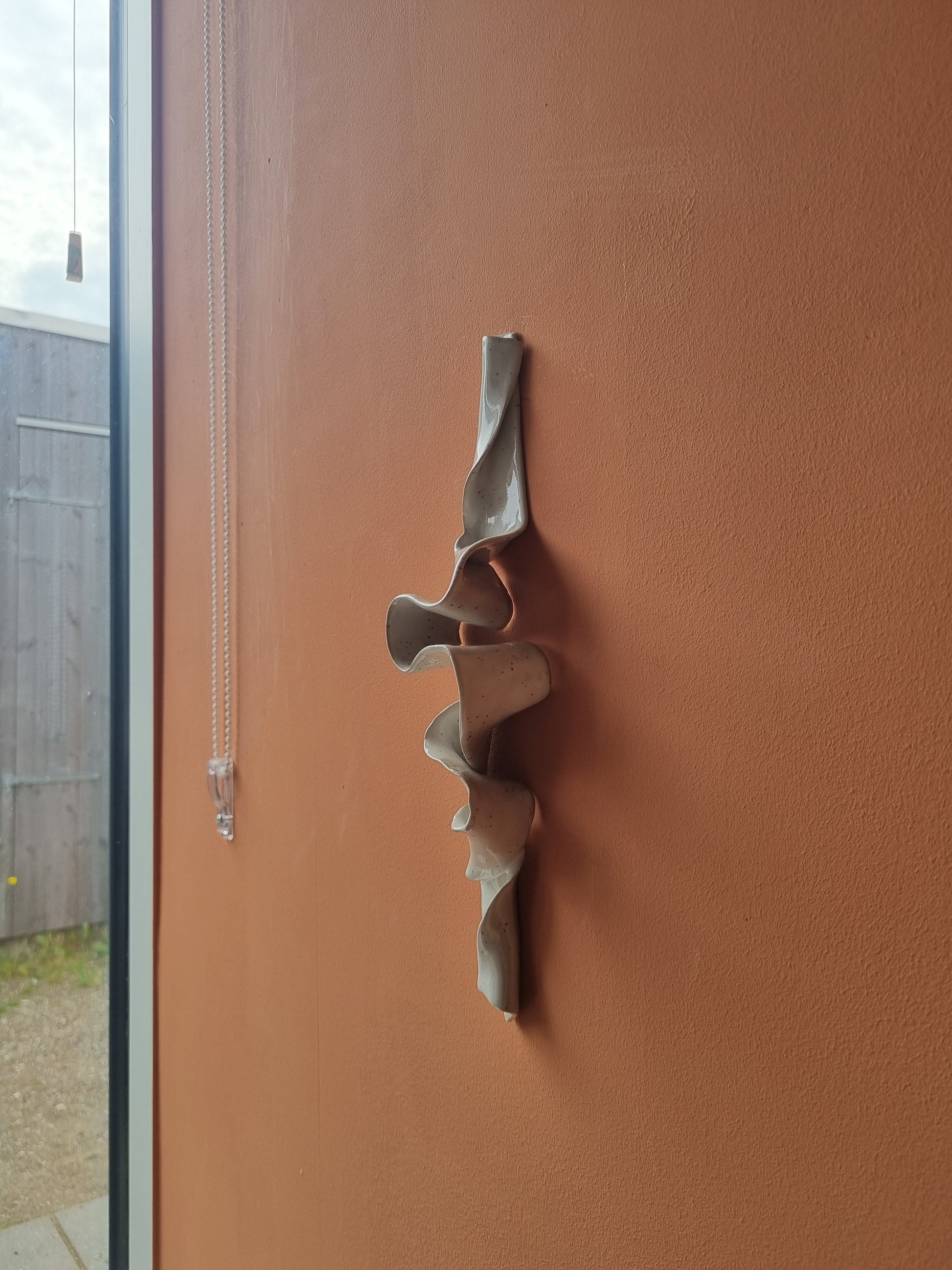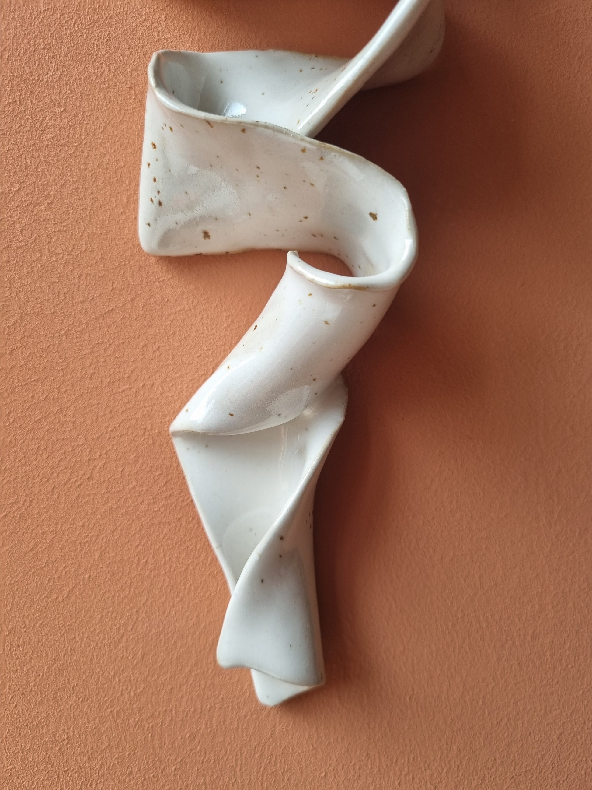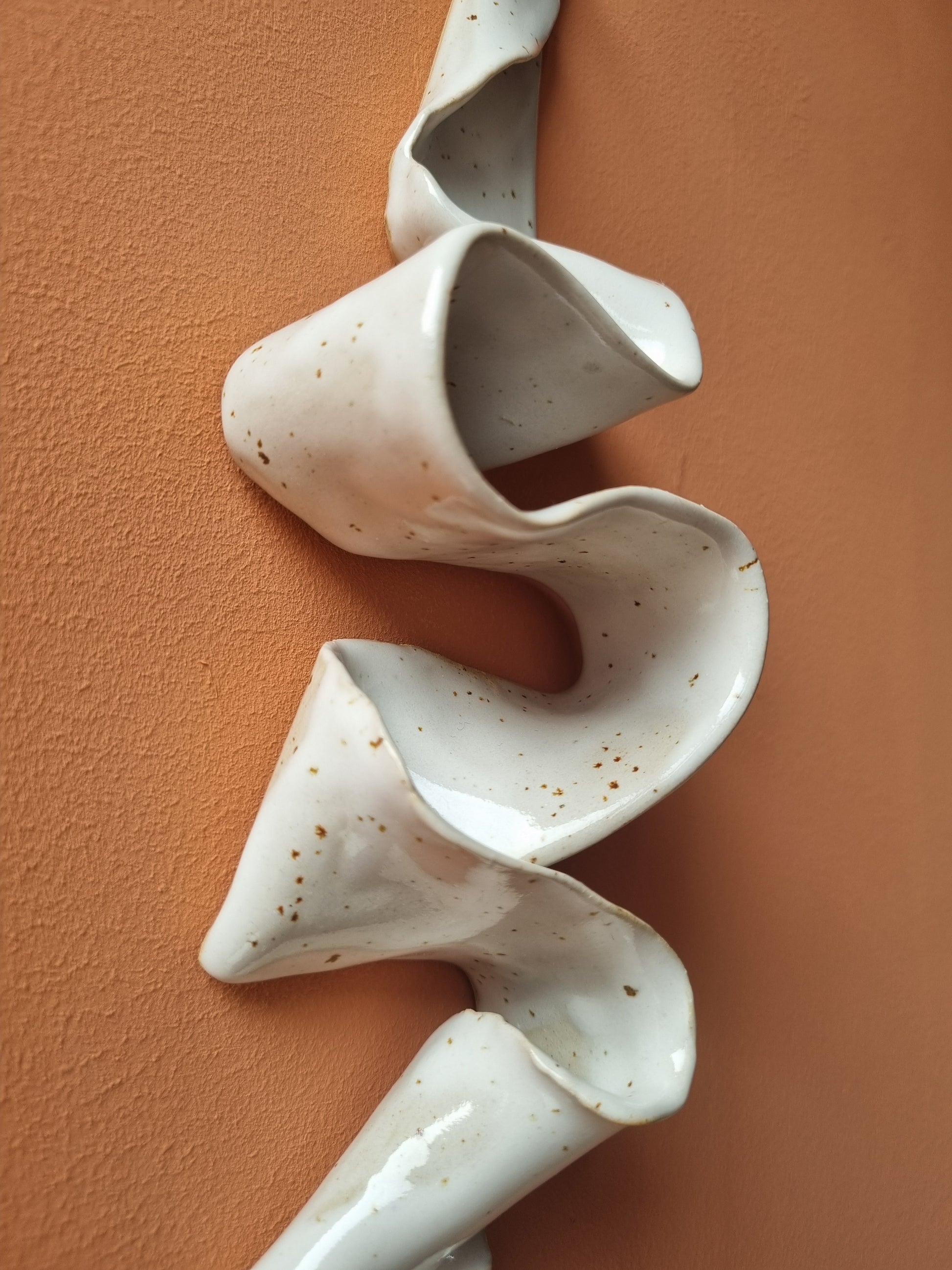 Lækker hvid krummelure med lavapletter, der vil skabe stemning og dybde på din væg. Håndlavet unika lavet af keramikkunstner Martine Othilie.