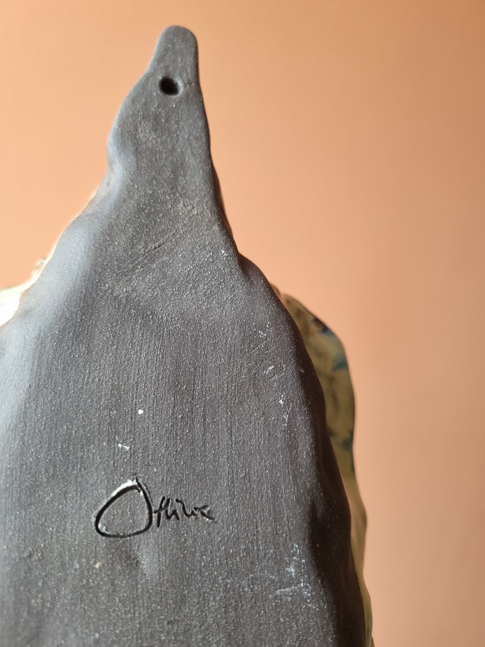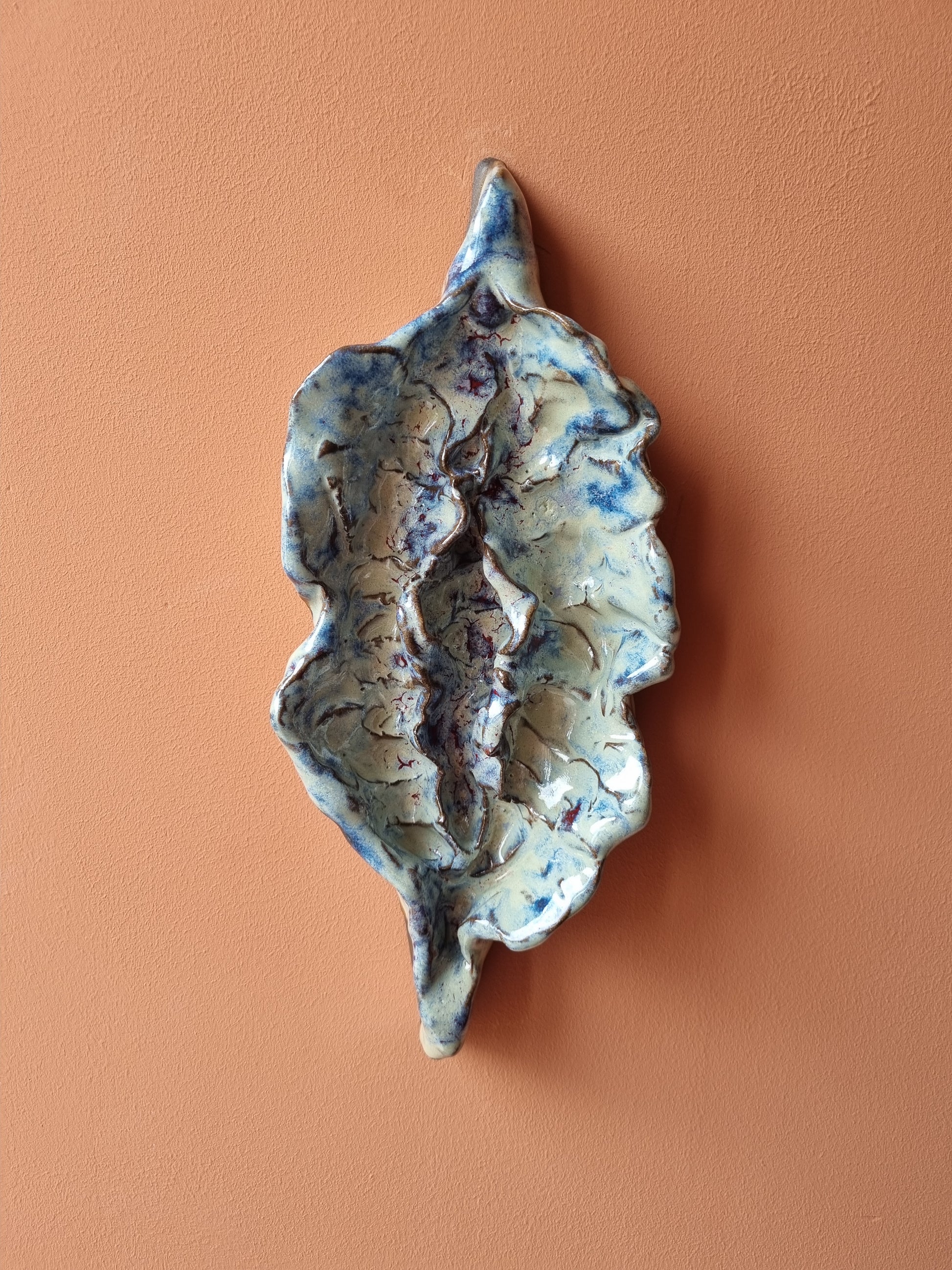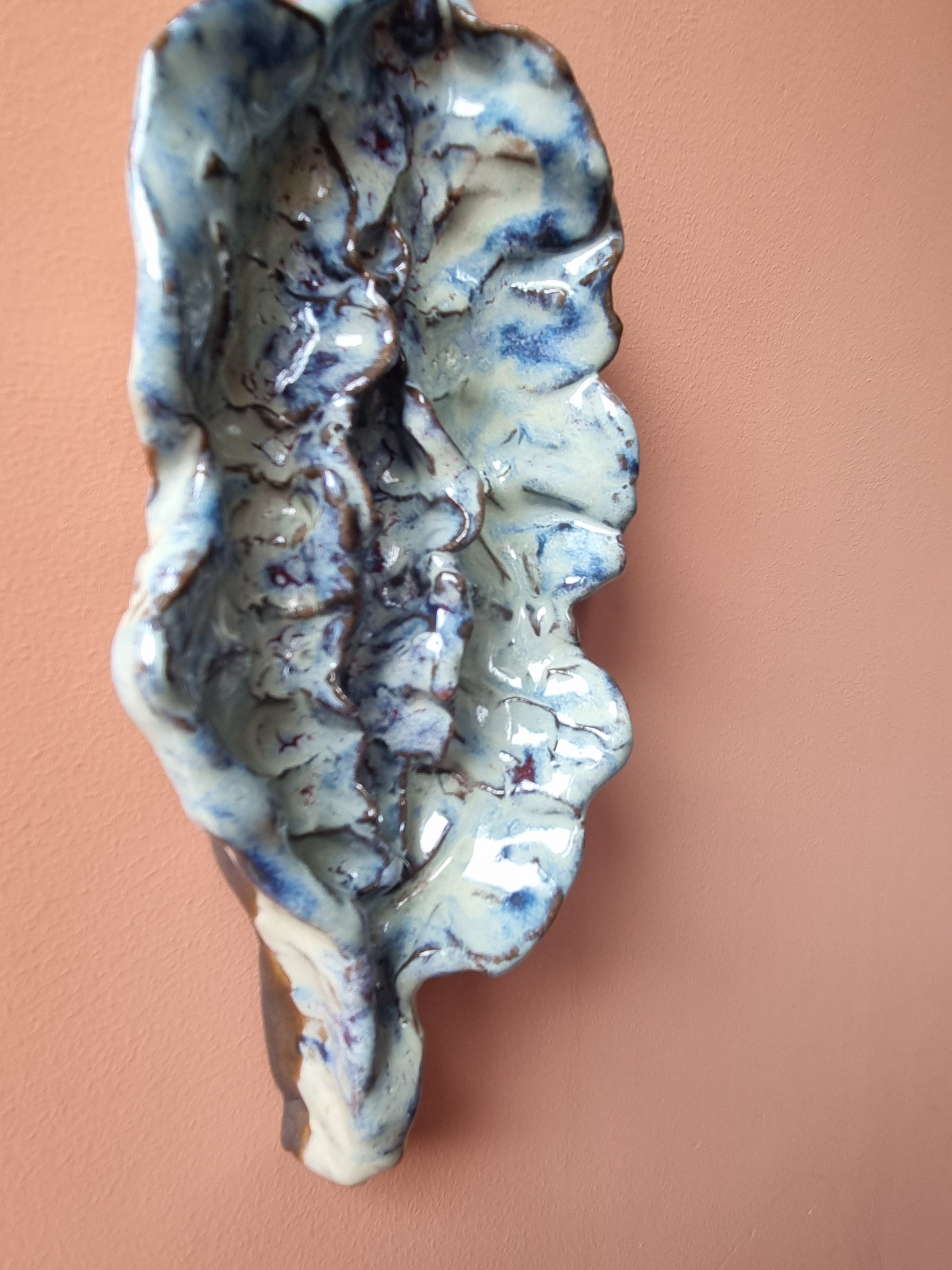 Sprød keramikkusse lavet af keramikkunstner Martine Othilie. Hæng den op og skab lidt feministisk power på din væg :)