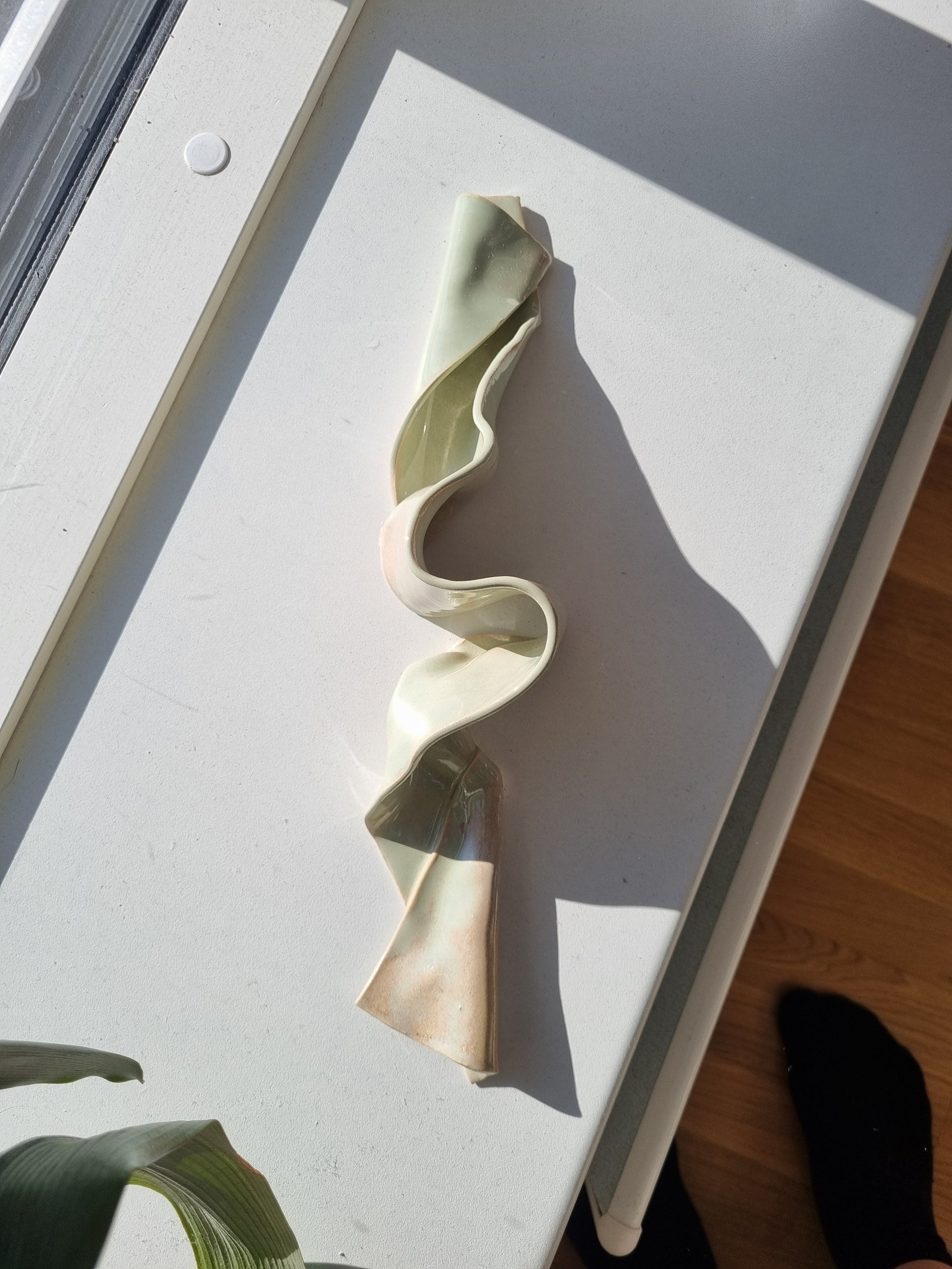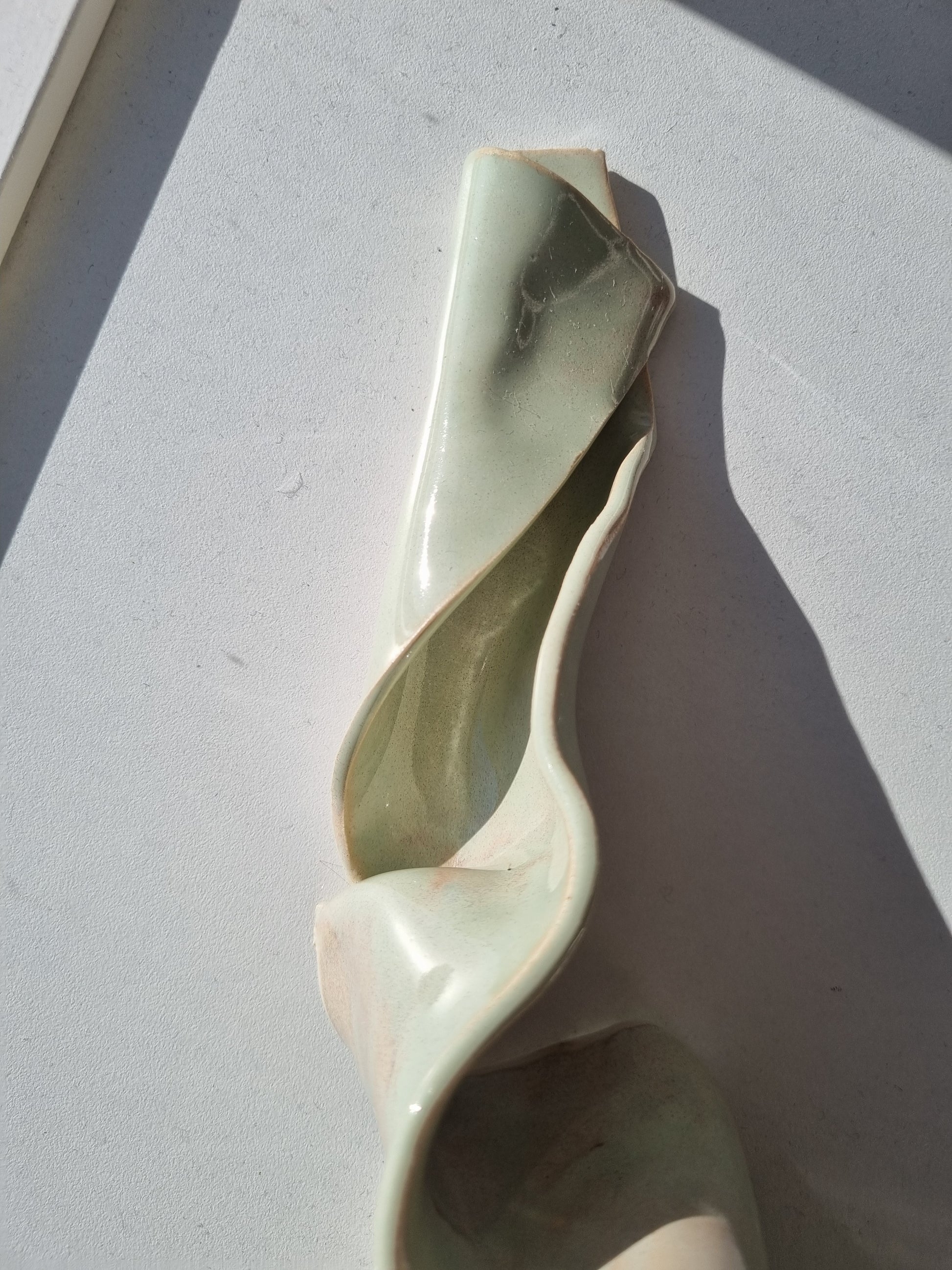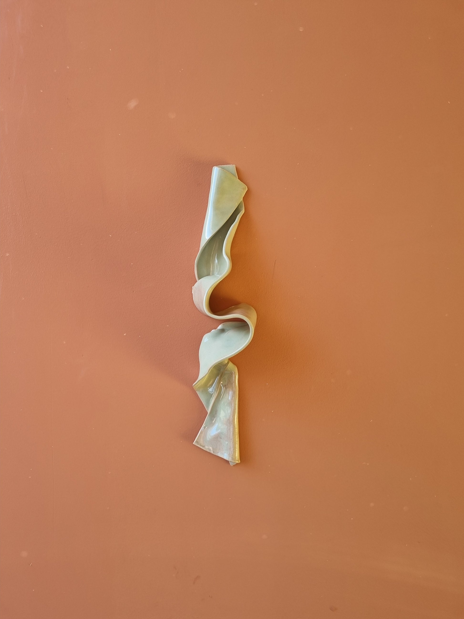 Lysegrøn/beige krummelure. Håndlavet unika formgivet og malet af Martine Othilie. Skab dybde op spræl på din væg med denne krummelure.