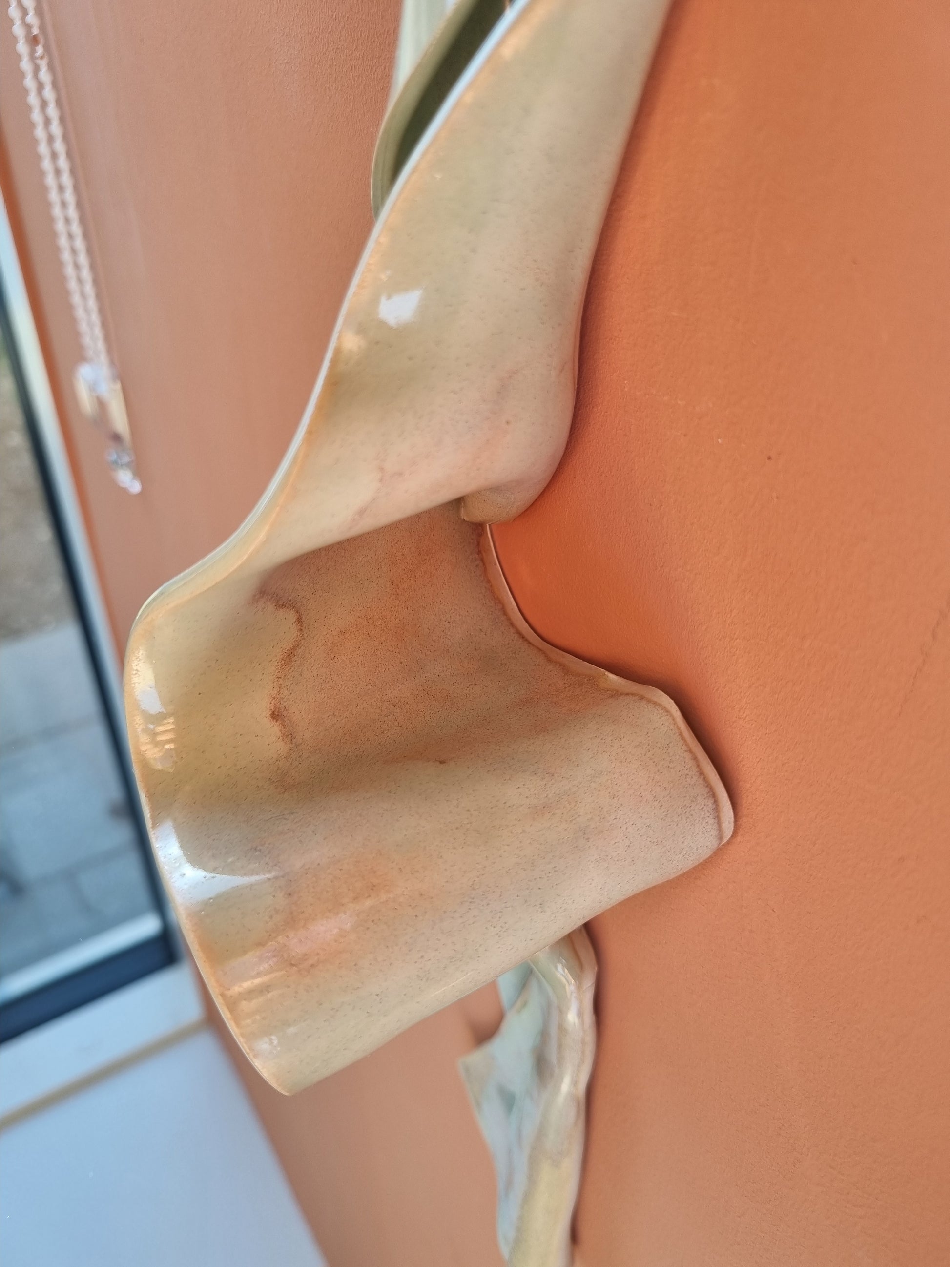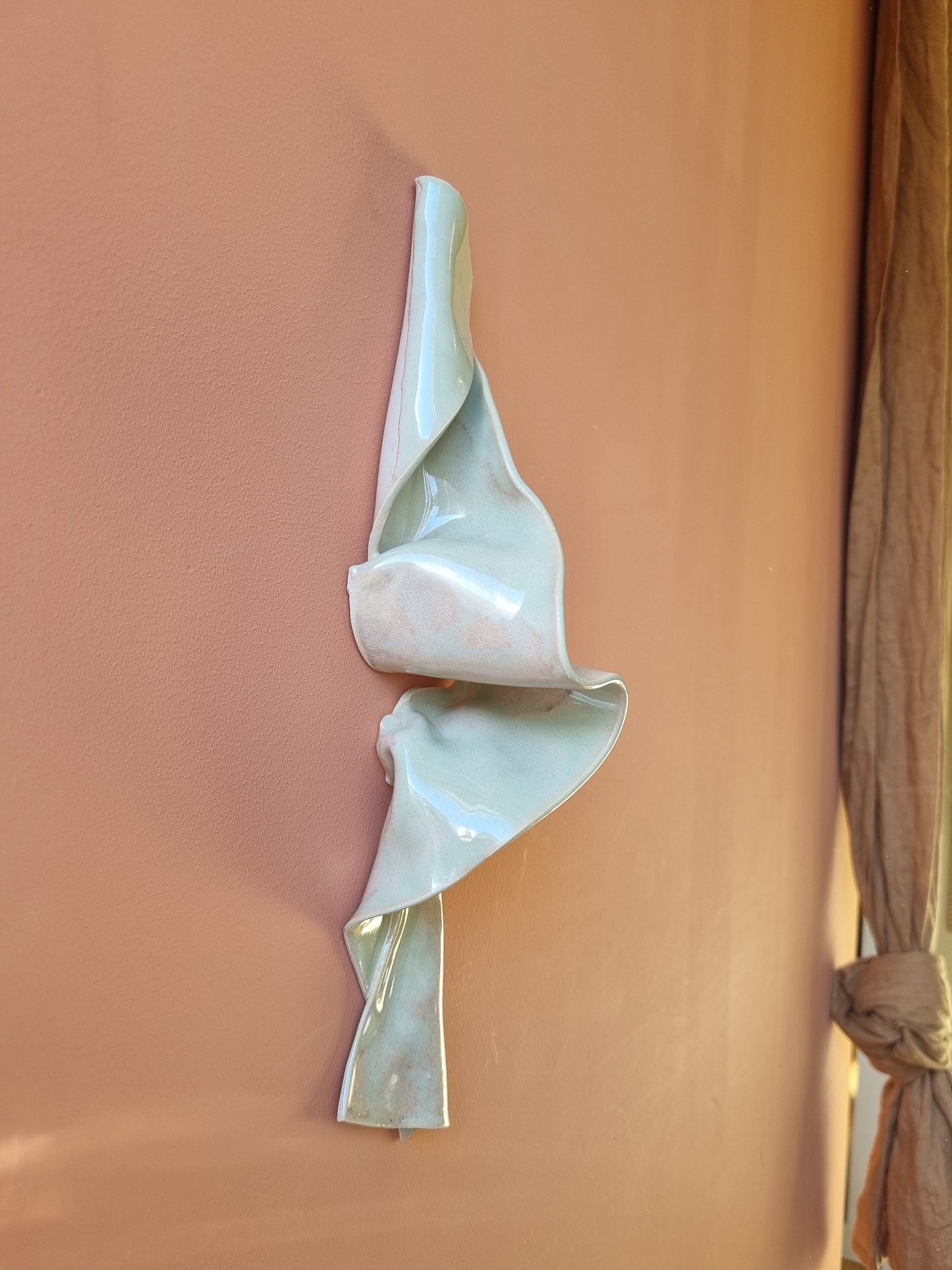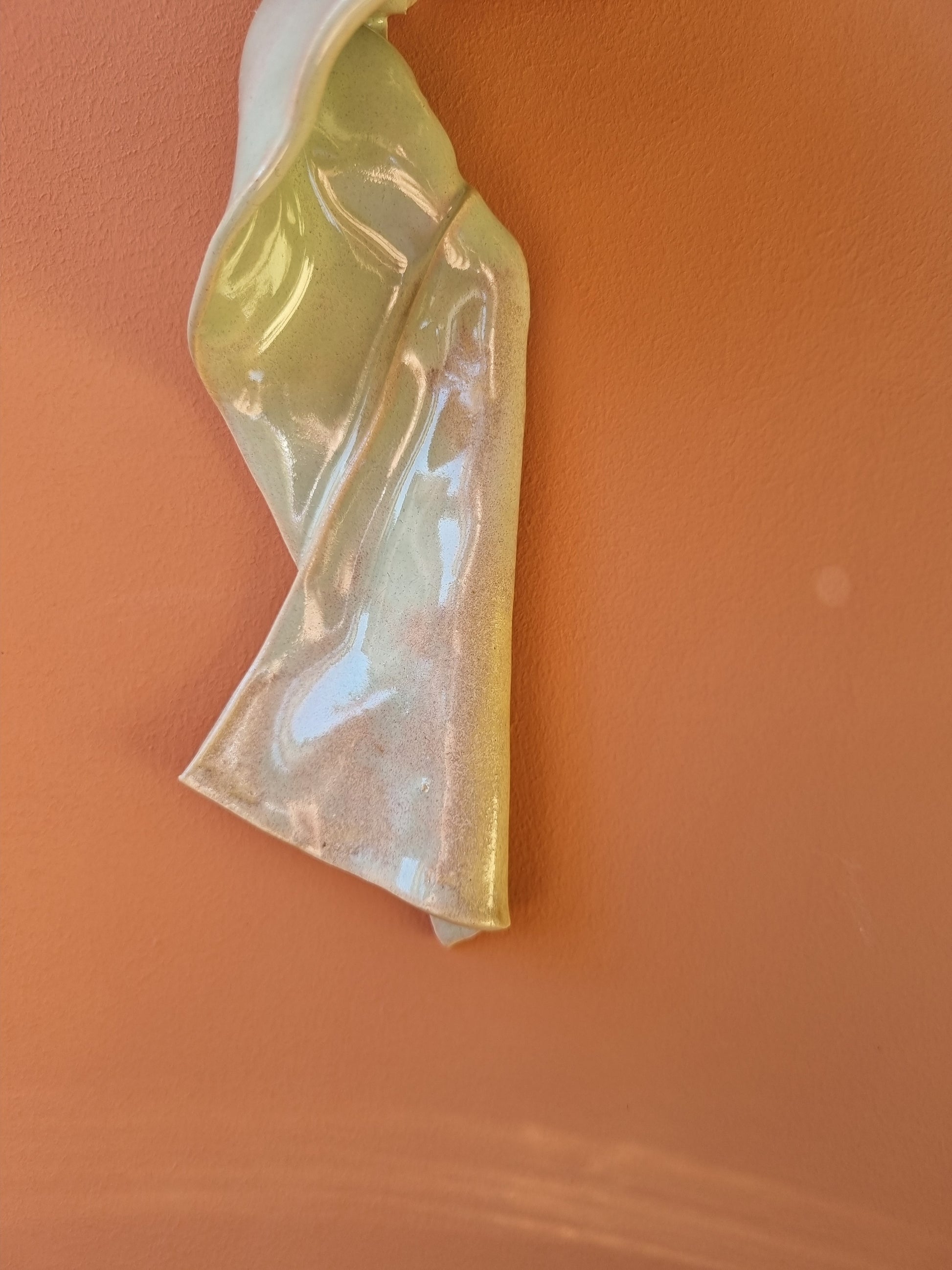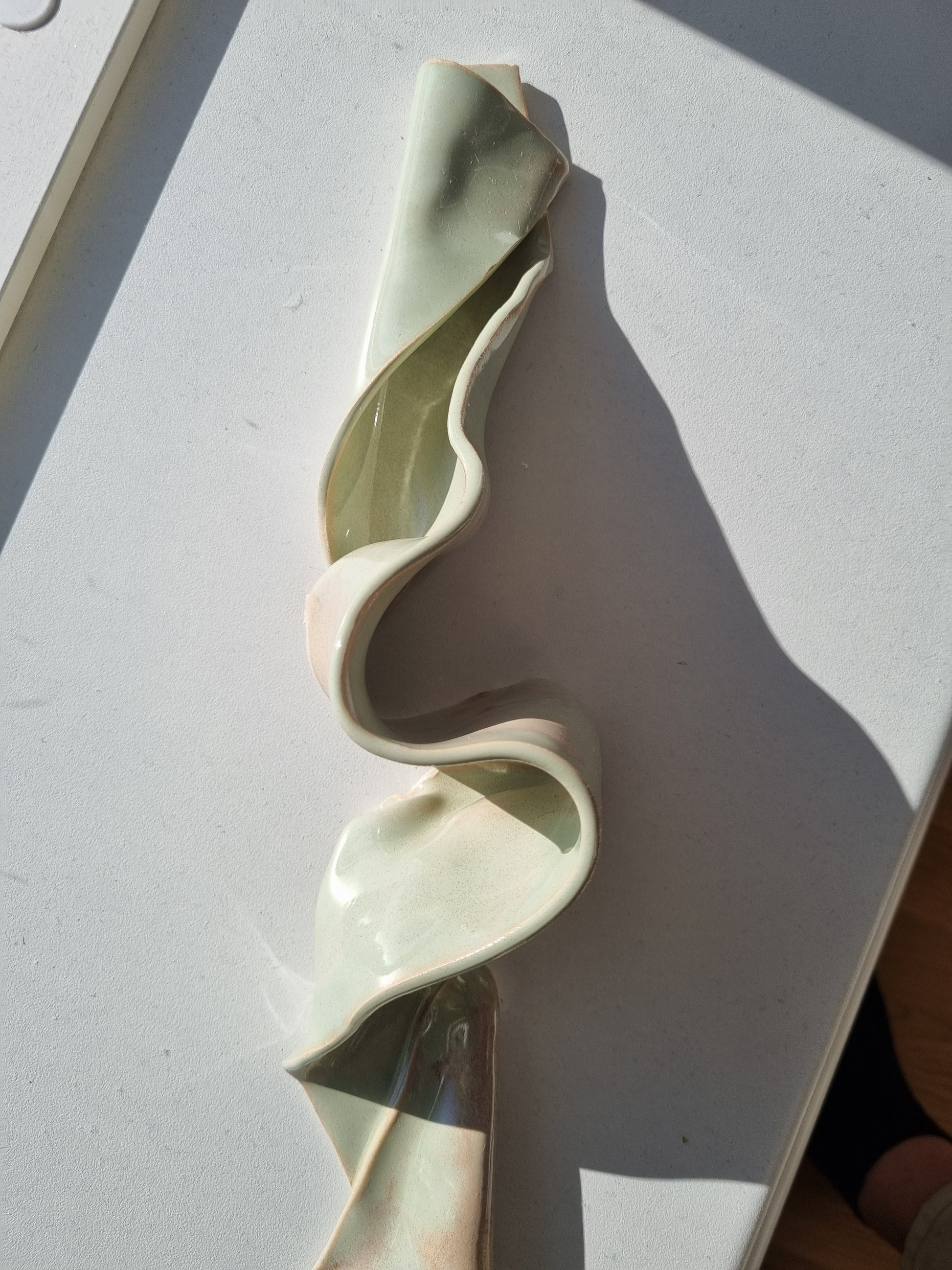 Lysegrøn/beige krummelure. Håndlavet unika formgivet og malet af Martine Othilie. Skab dybde op spræl på din væg med denne krummelure.