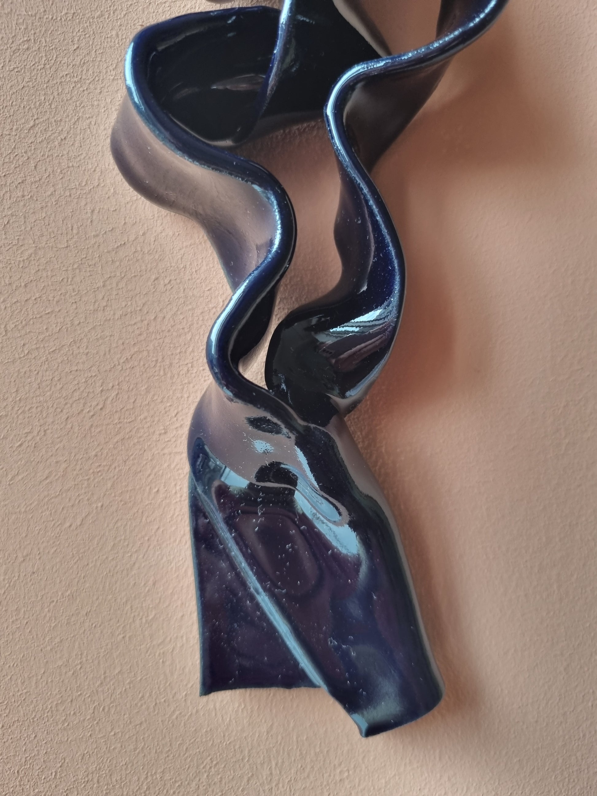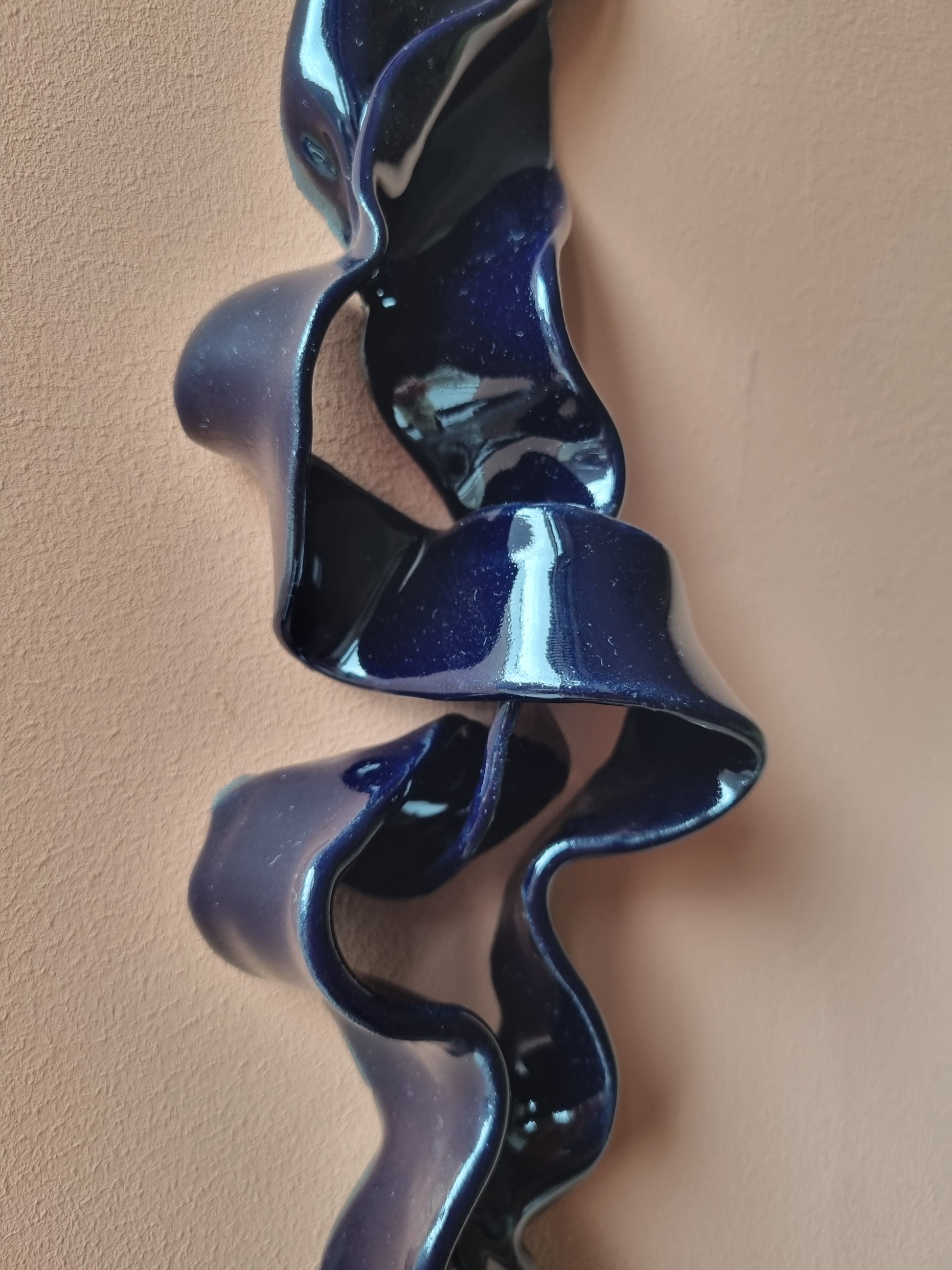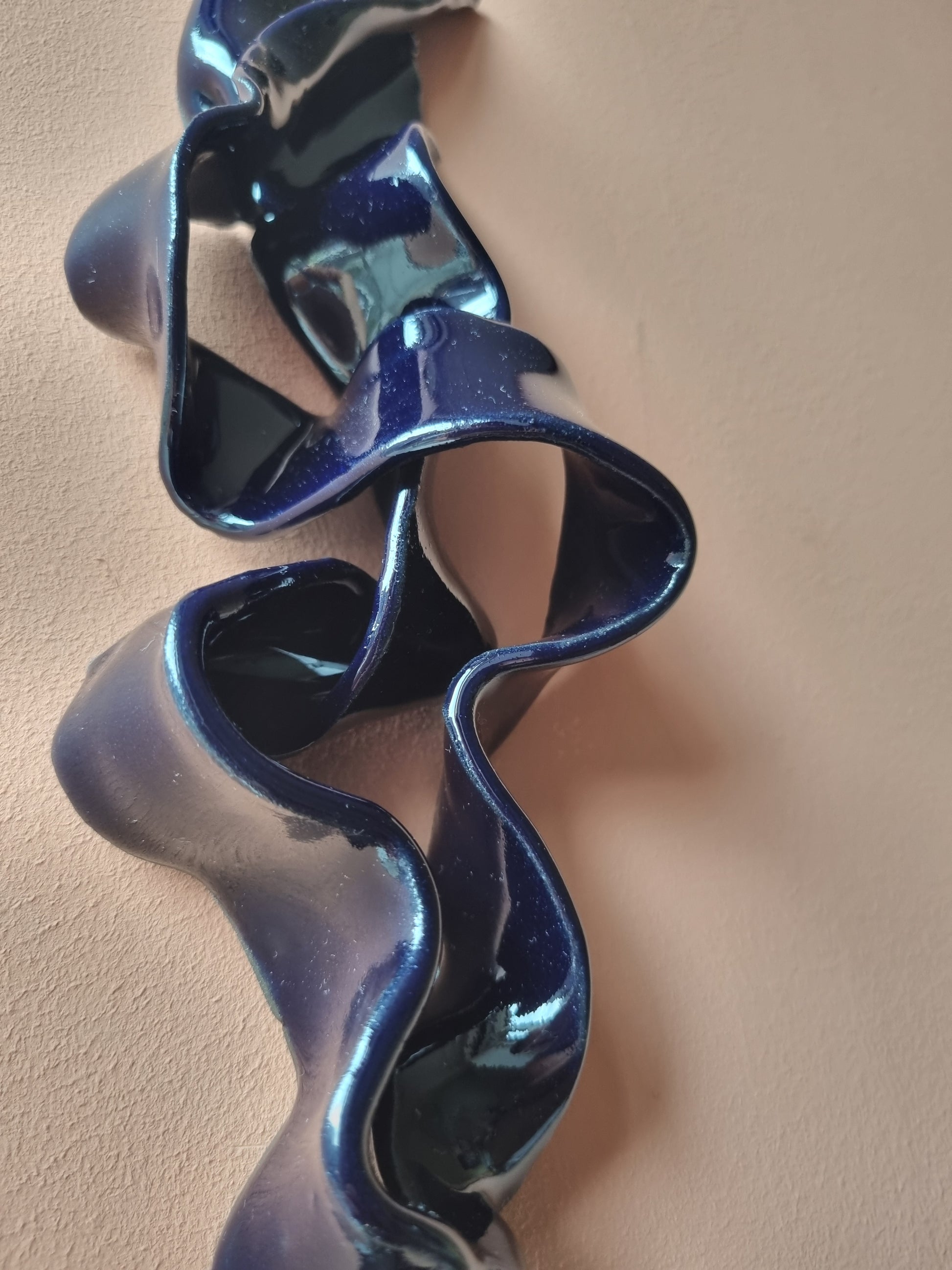 Blank dyb mørkeblå krummelure. Stilfuld og lækkert keramikværk, der vil give spræl og dybde på din væg <3