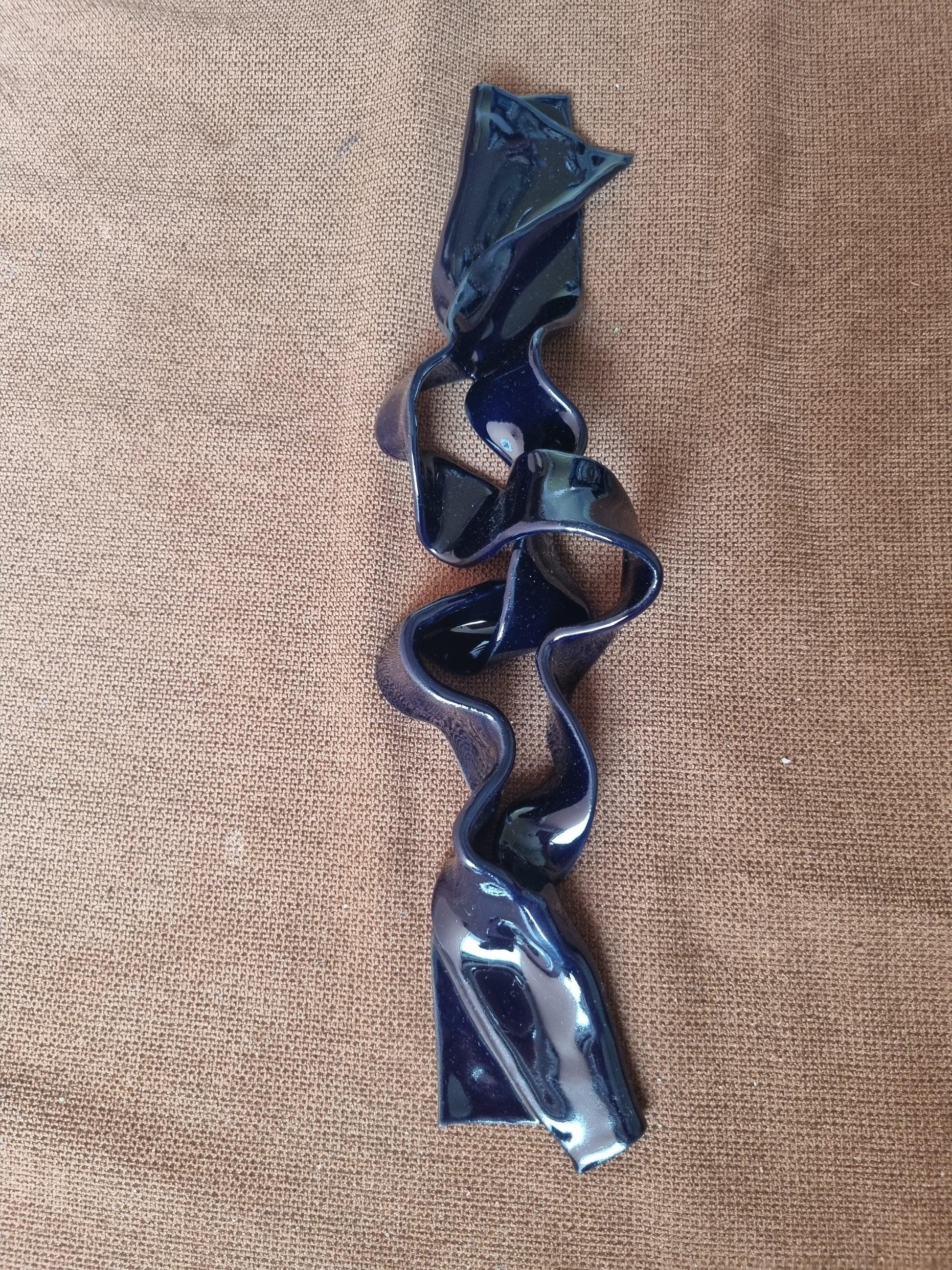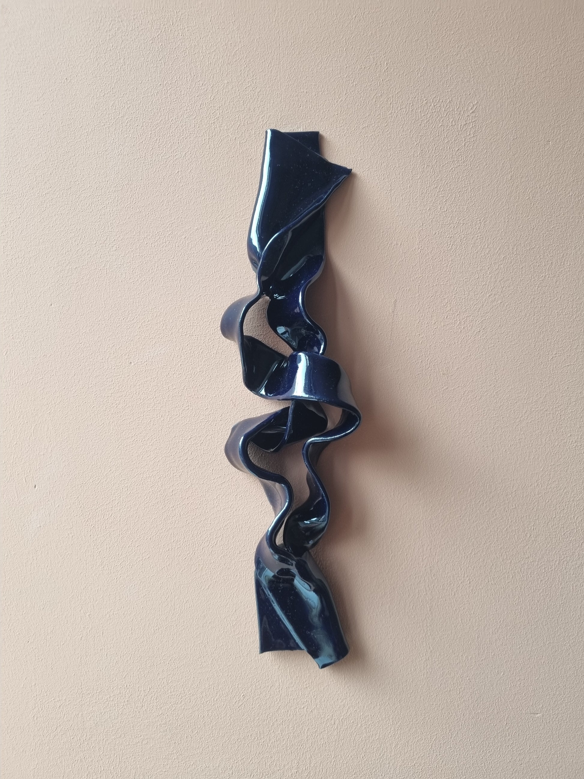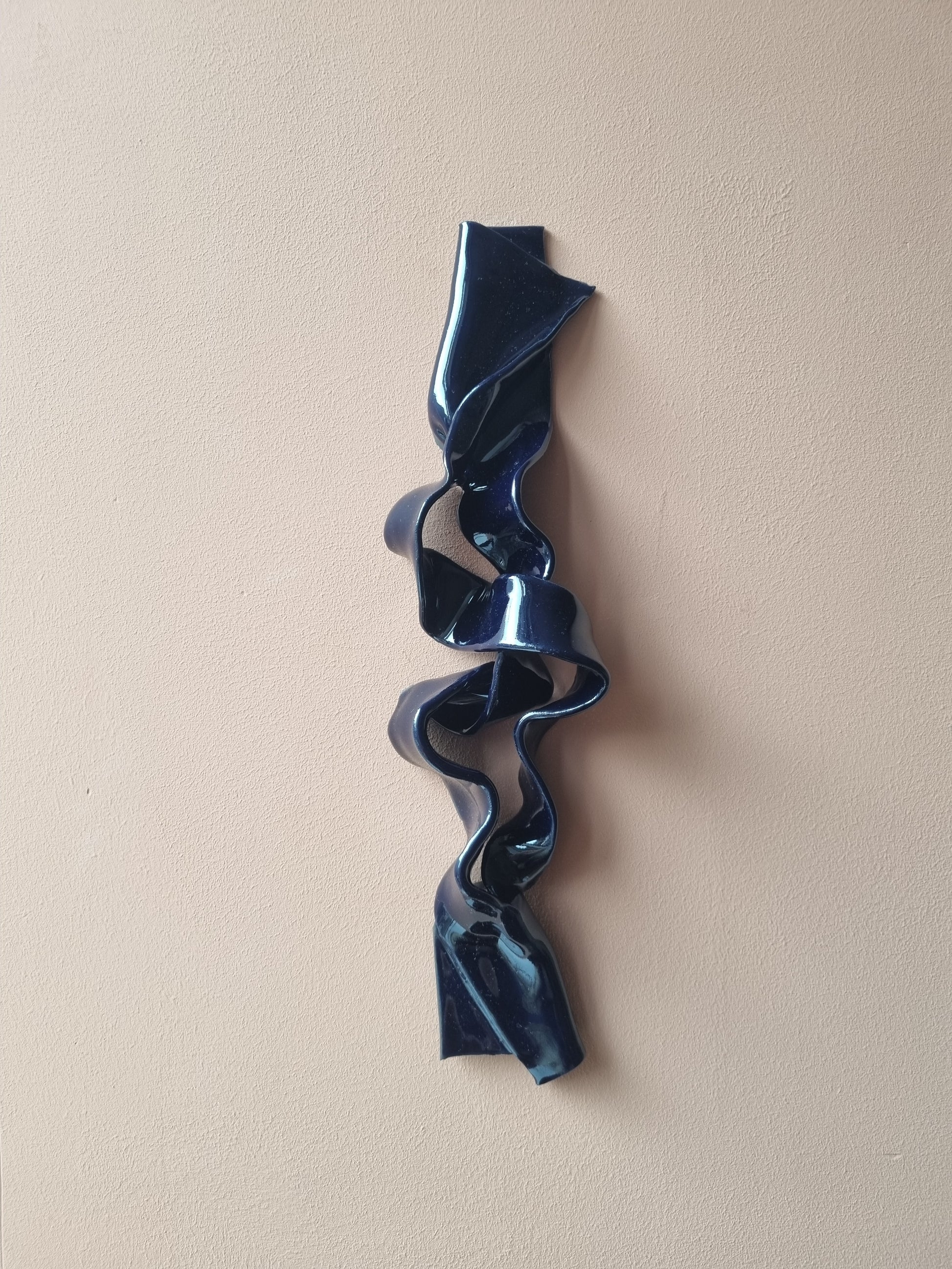 Blank dyb mørkeblå krummelure. Stilfuld og lækkert keramikværk, der vil give spræl og dybde på din væg <3