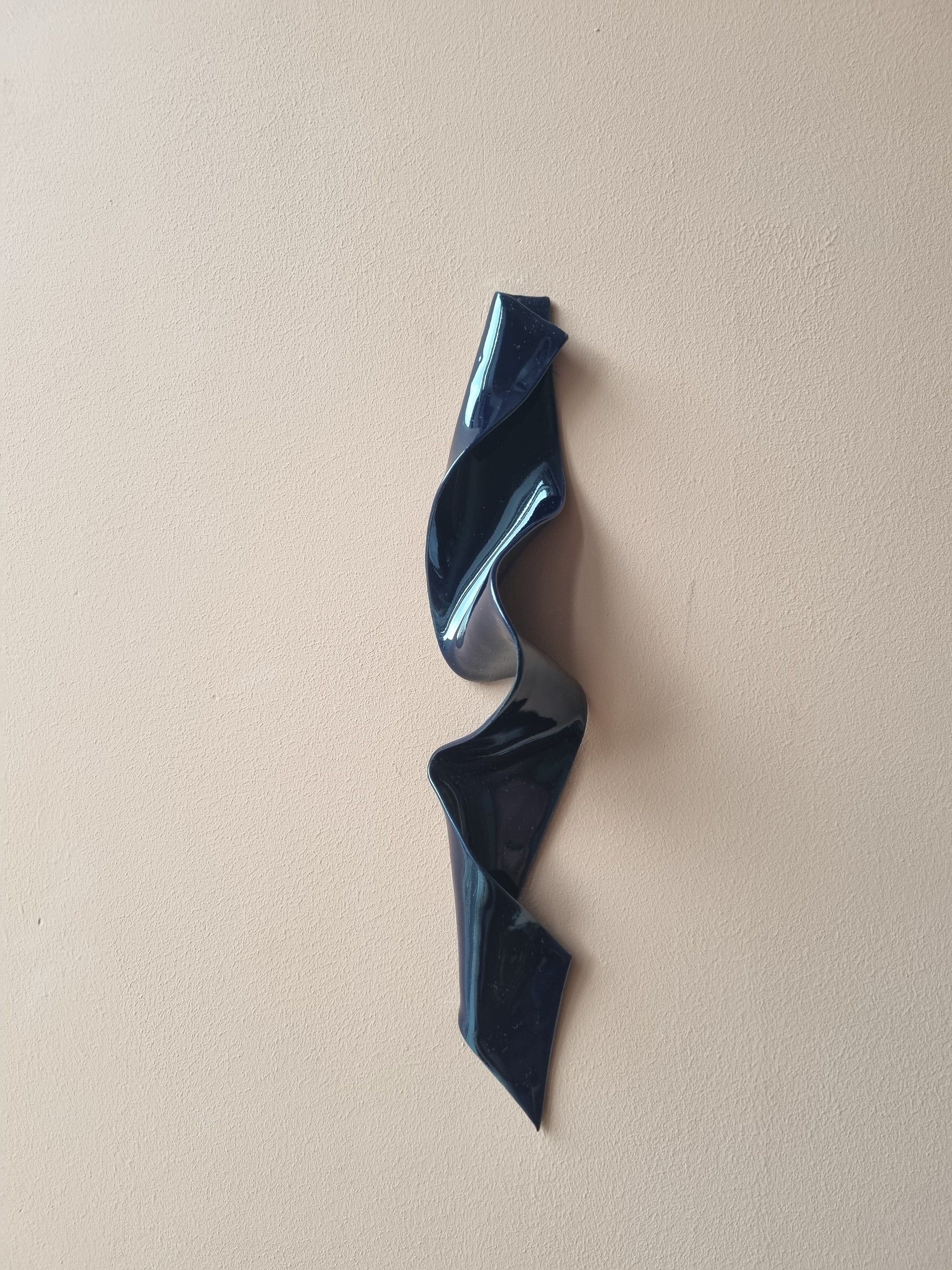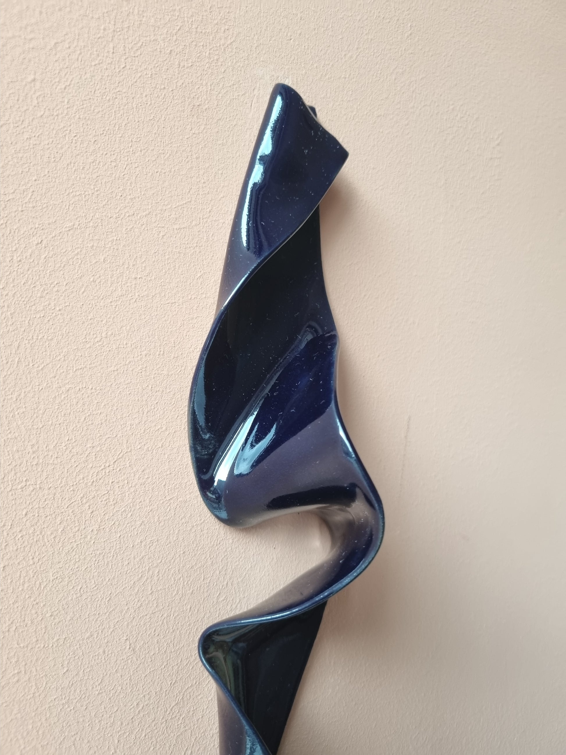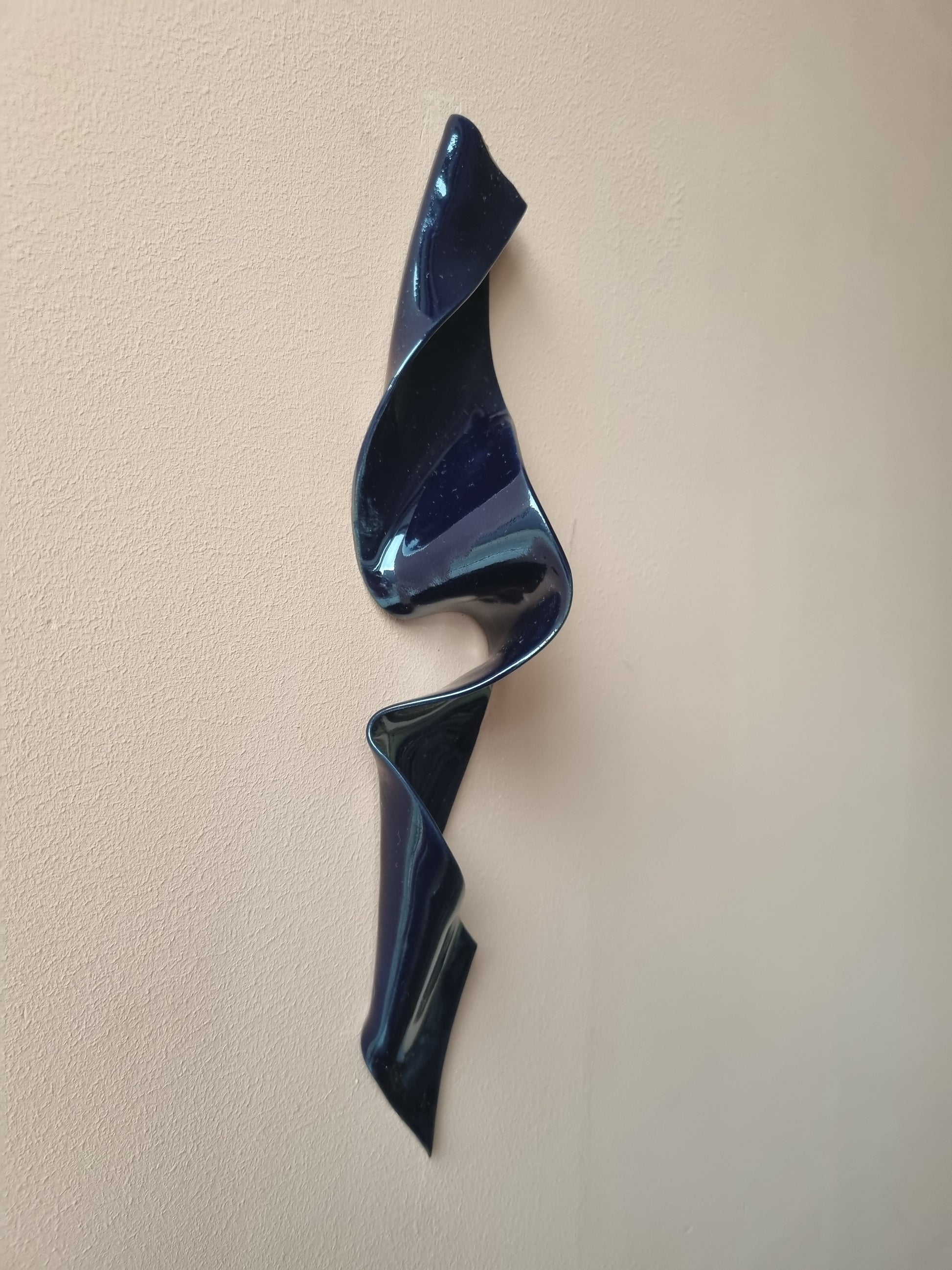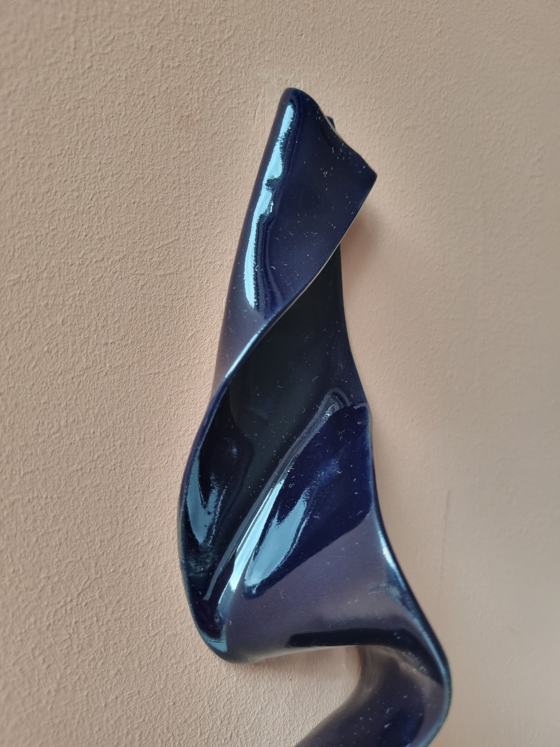 Blank dyb mørkeblå krummelure. Stilfuld og lækkert keramikværk, der vil give spræl og dybde på din væg <3