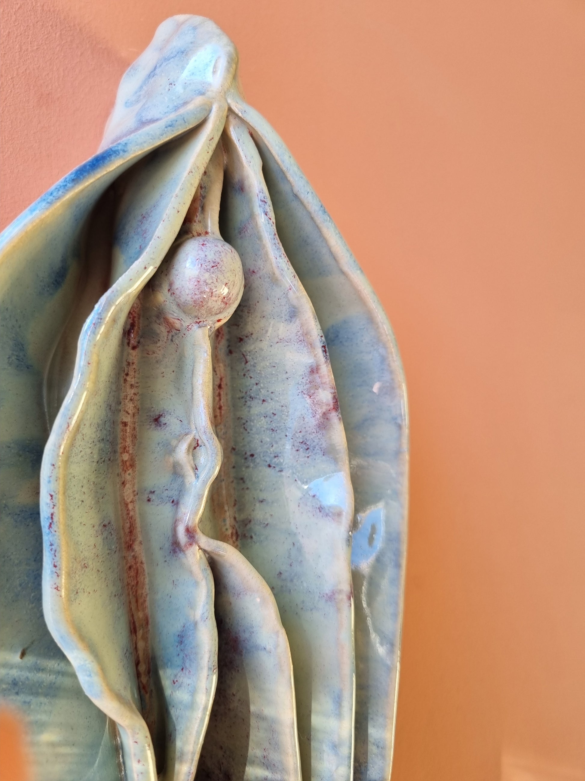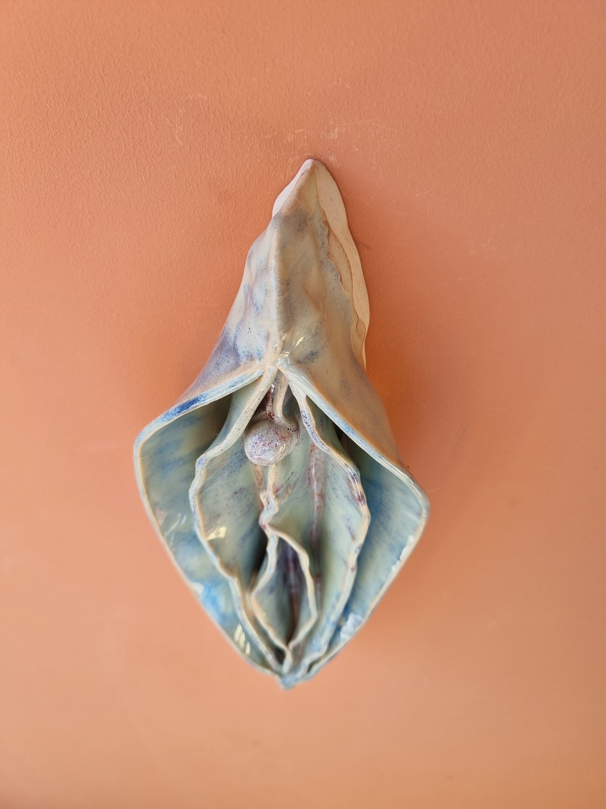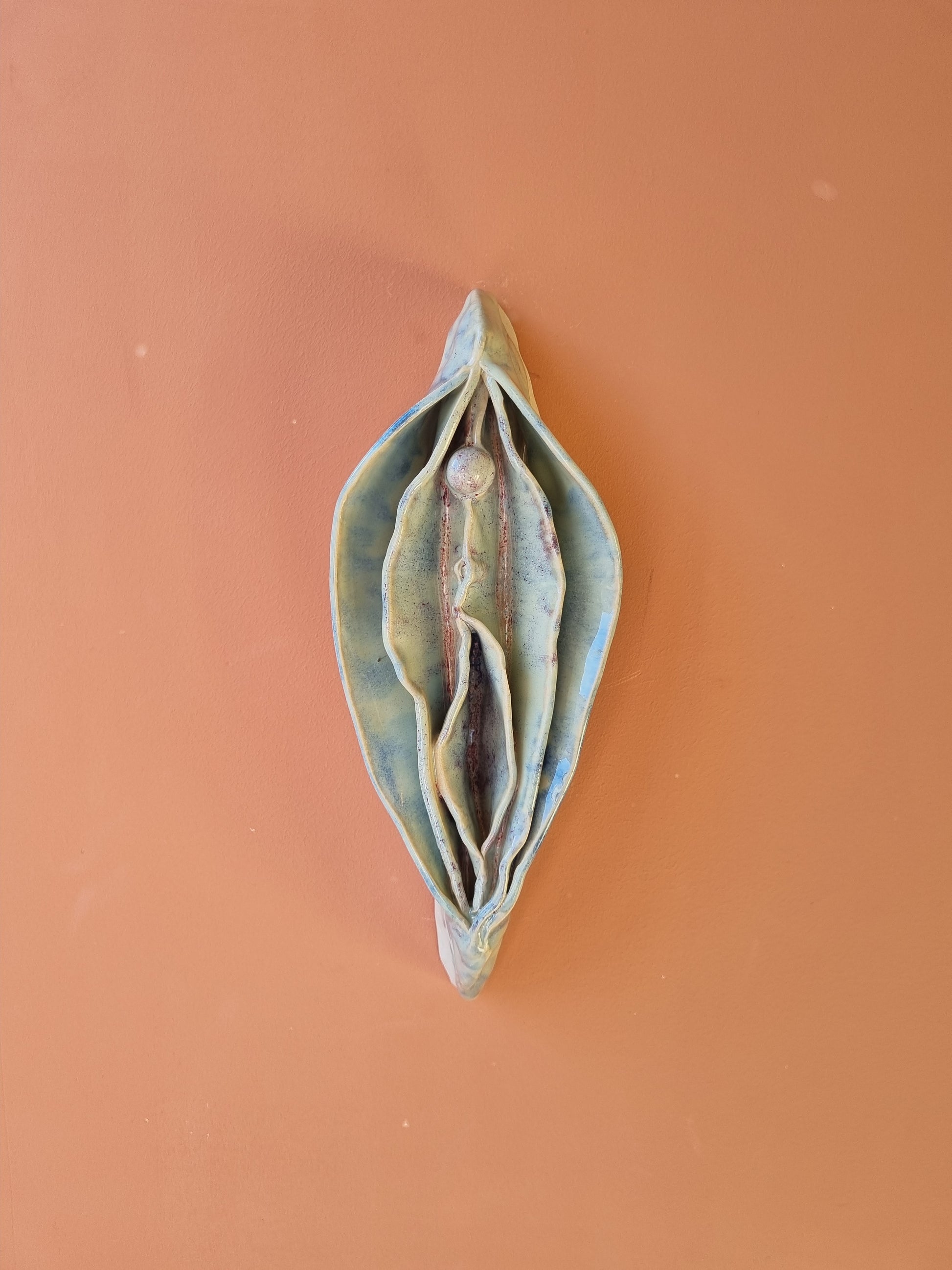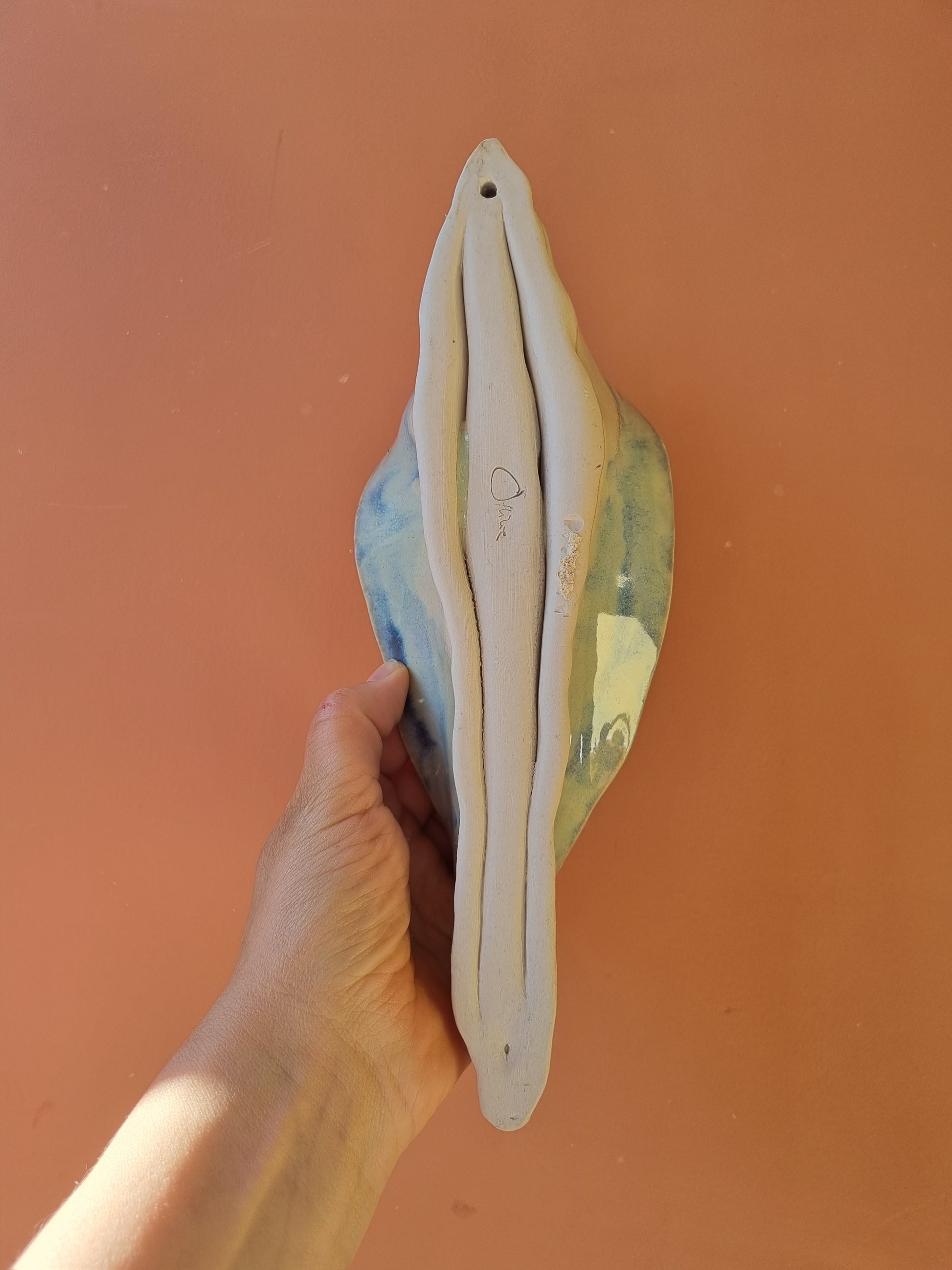 Stor væghængt keramikkusse til at skabe power på din væg.