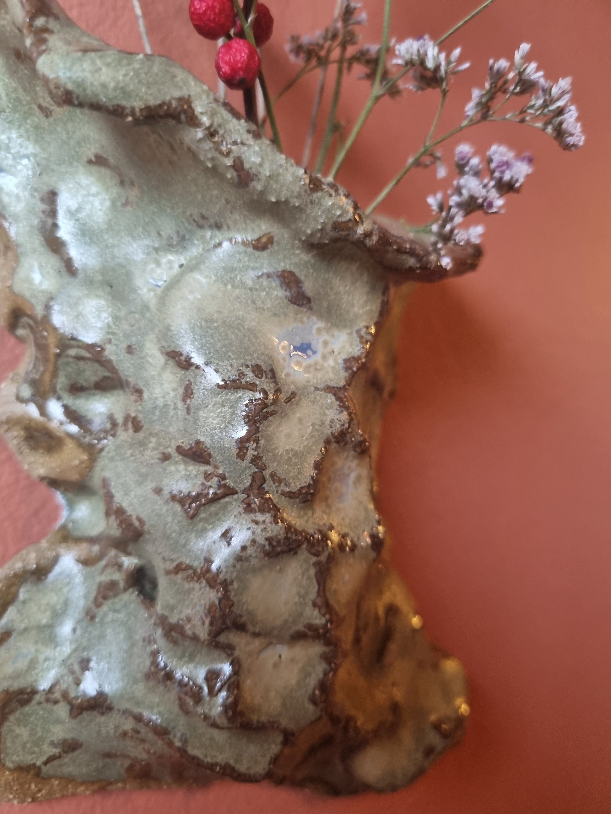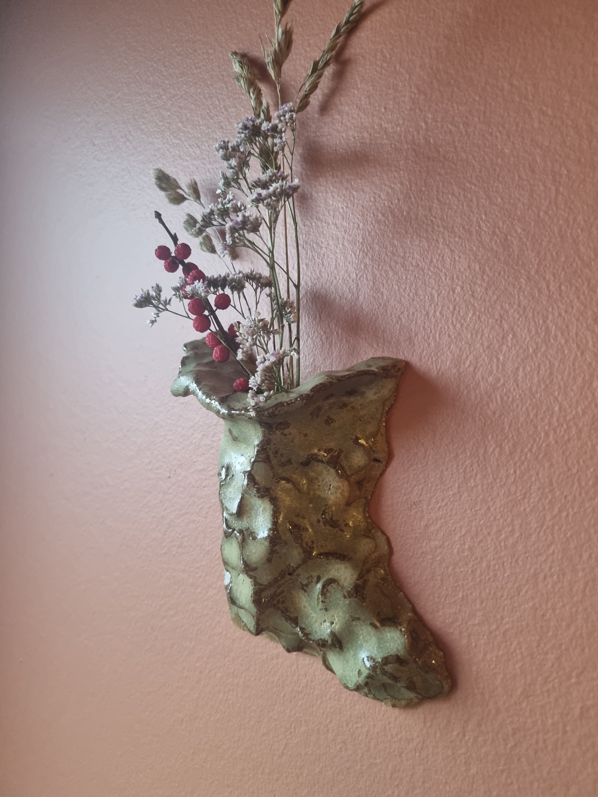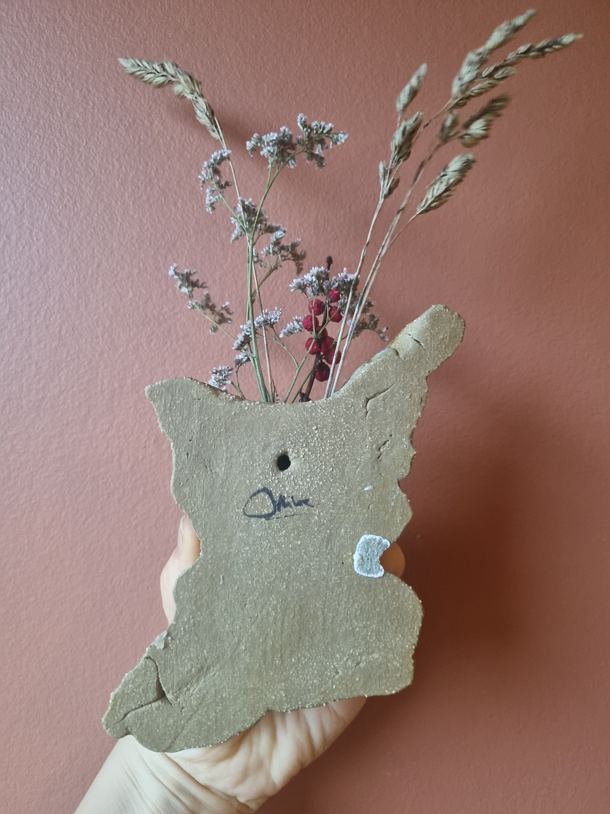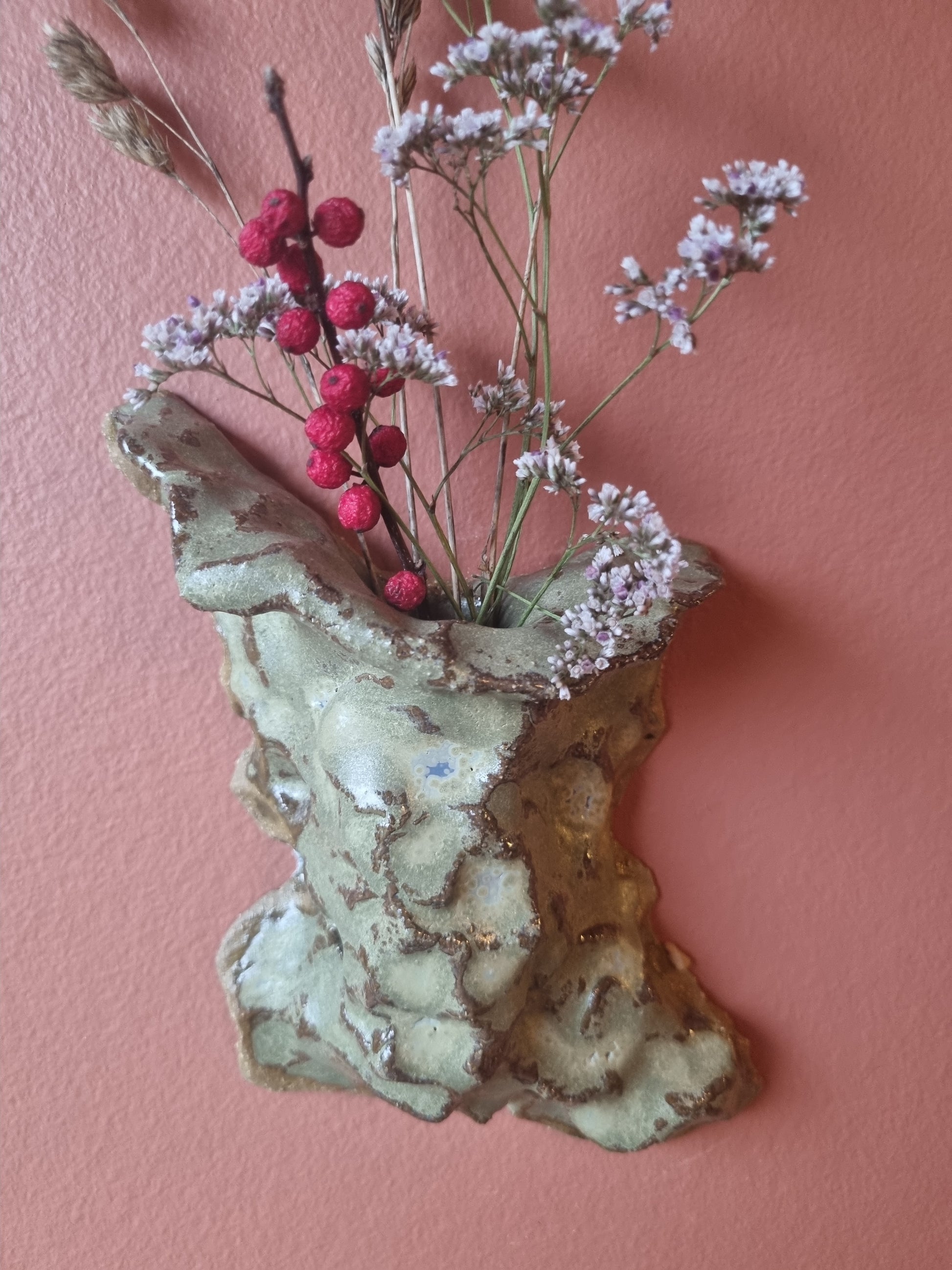 Få din blomster op på væggen med denne væghængte keramikvase lavet af keramikkunstner Martine Othilie. Håndlavet unika.
