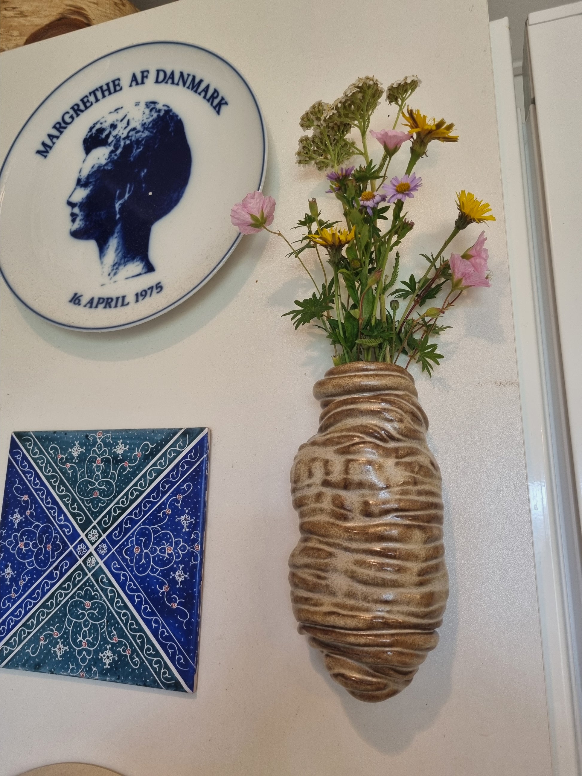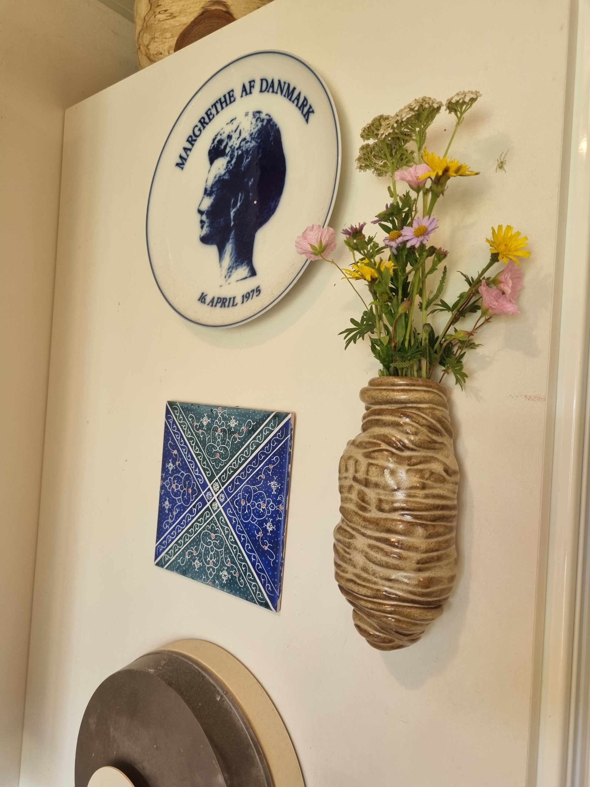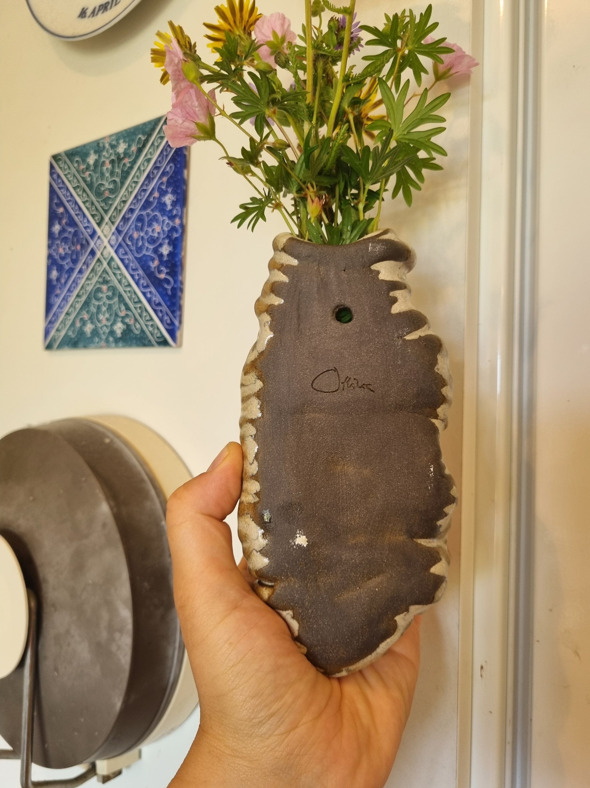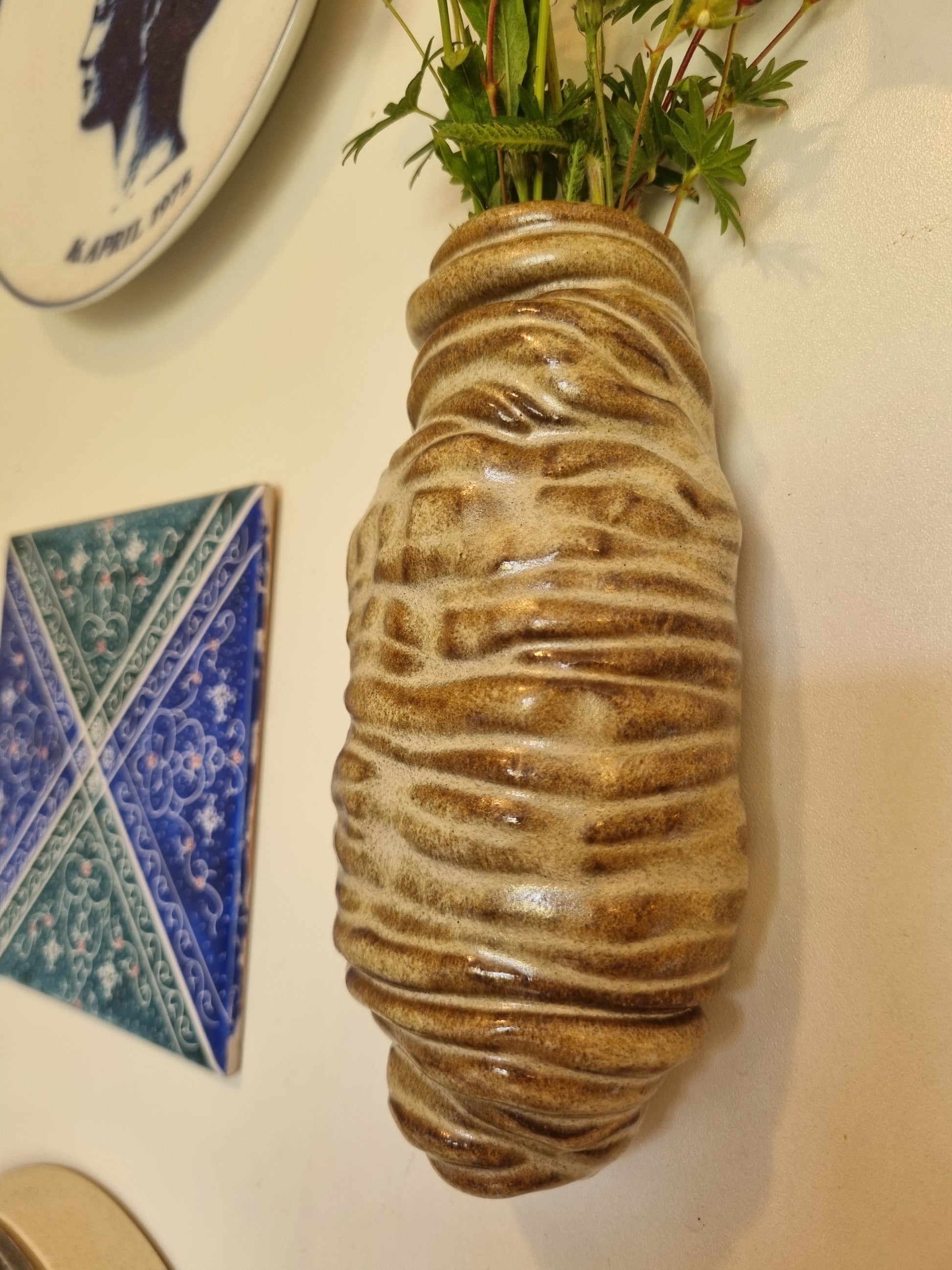 Sandfarvet vægvase i større model. Hæng dine fine blomster op på væggen med denne vægvase.