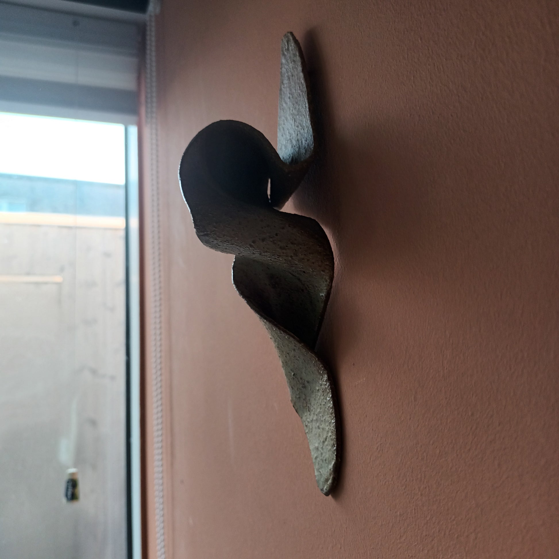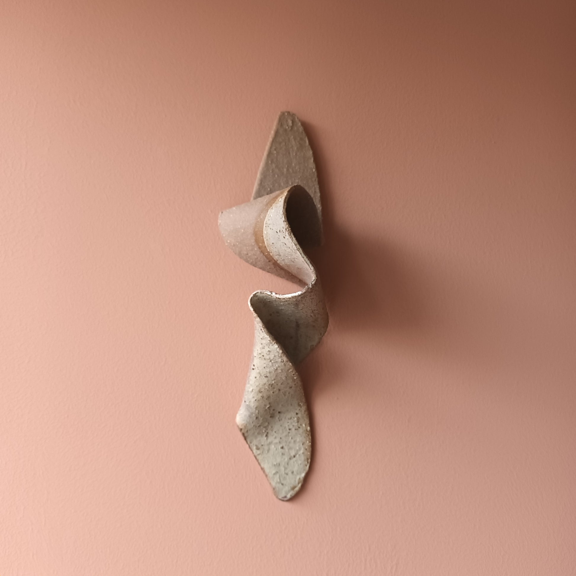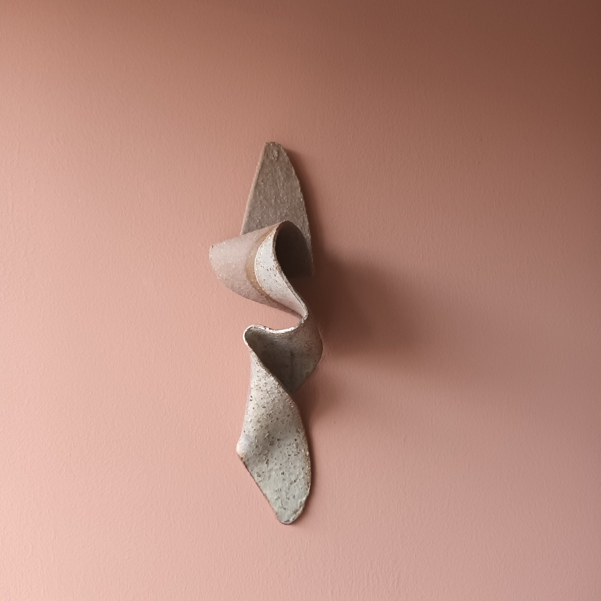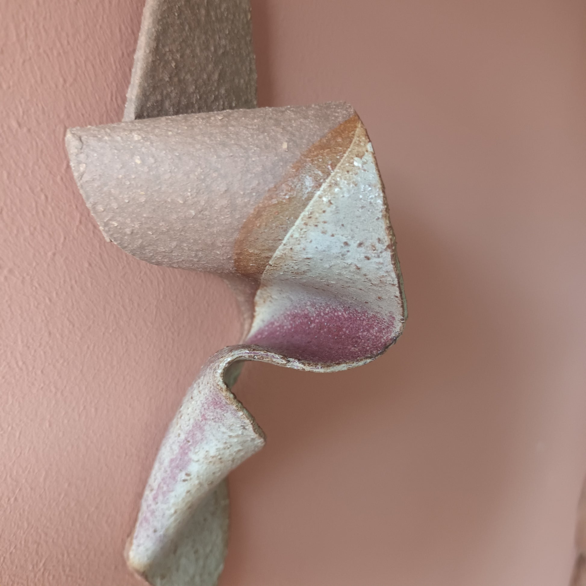 Væghængt krummelure. Den er halvt uglaseret og halvt beige/rosa. Hæng den for sig selv eller som et indspark på din billedvæg :)