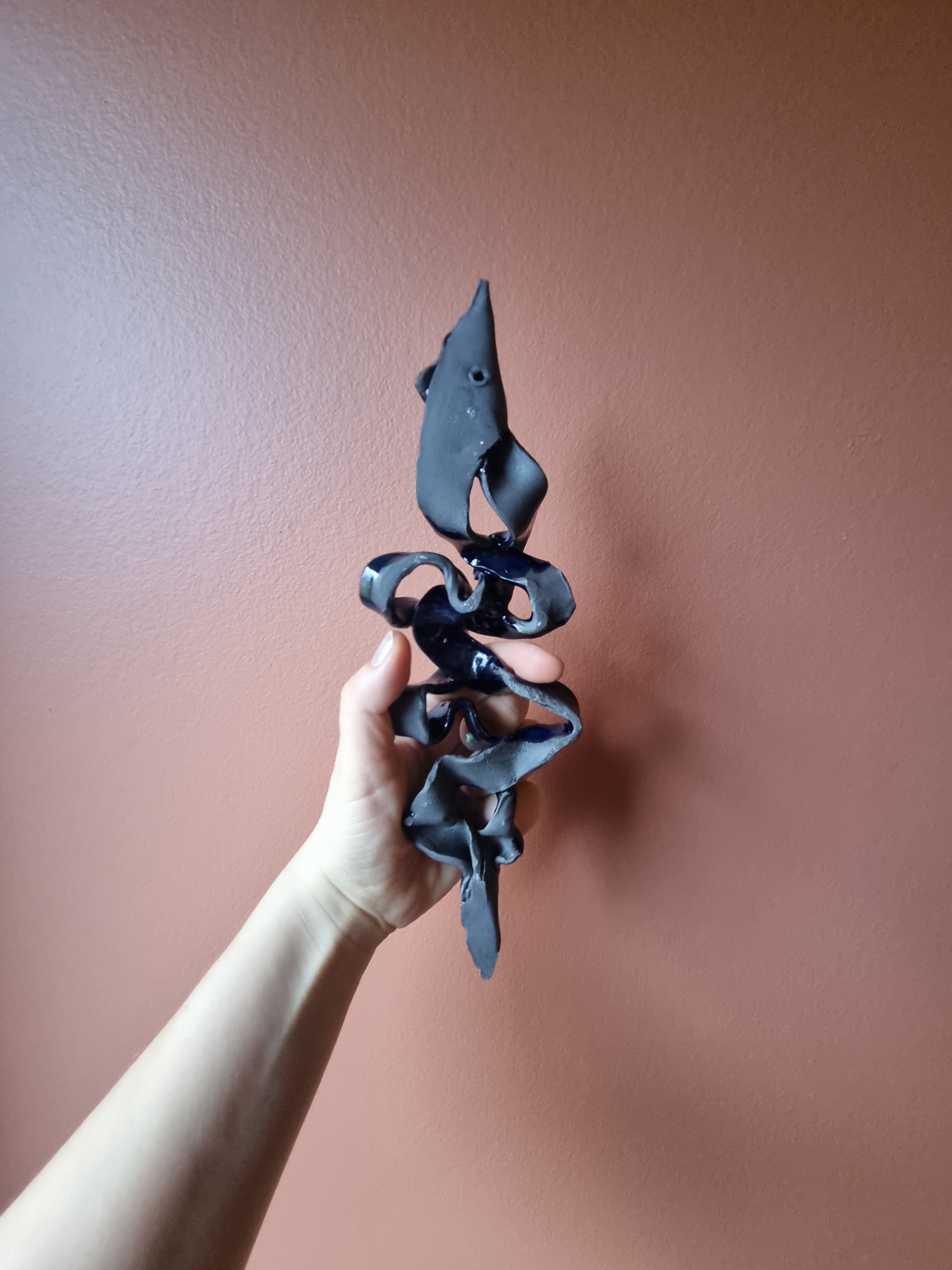 Væghængt keramikkrummelure lavet af keramikkunstner Martine Othilie. Håndlavet unika.