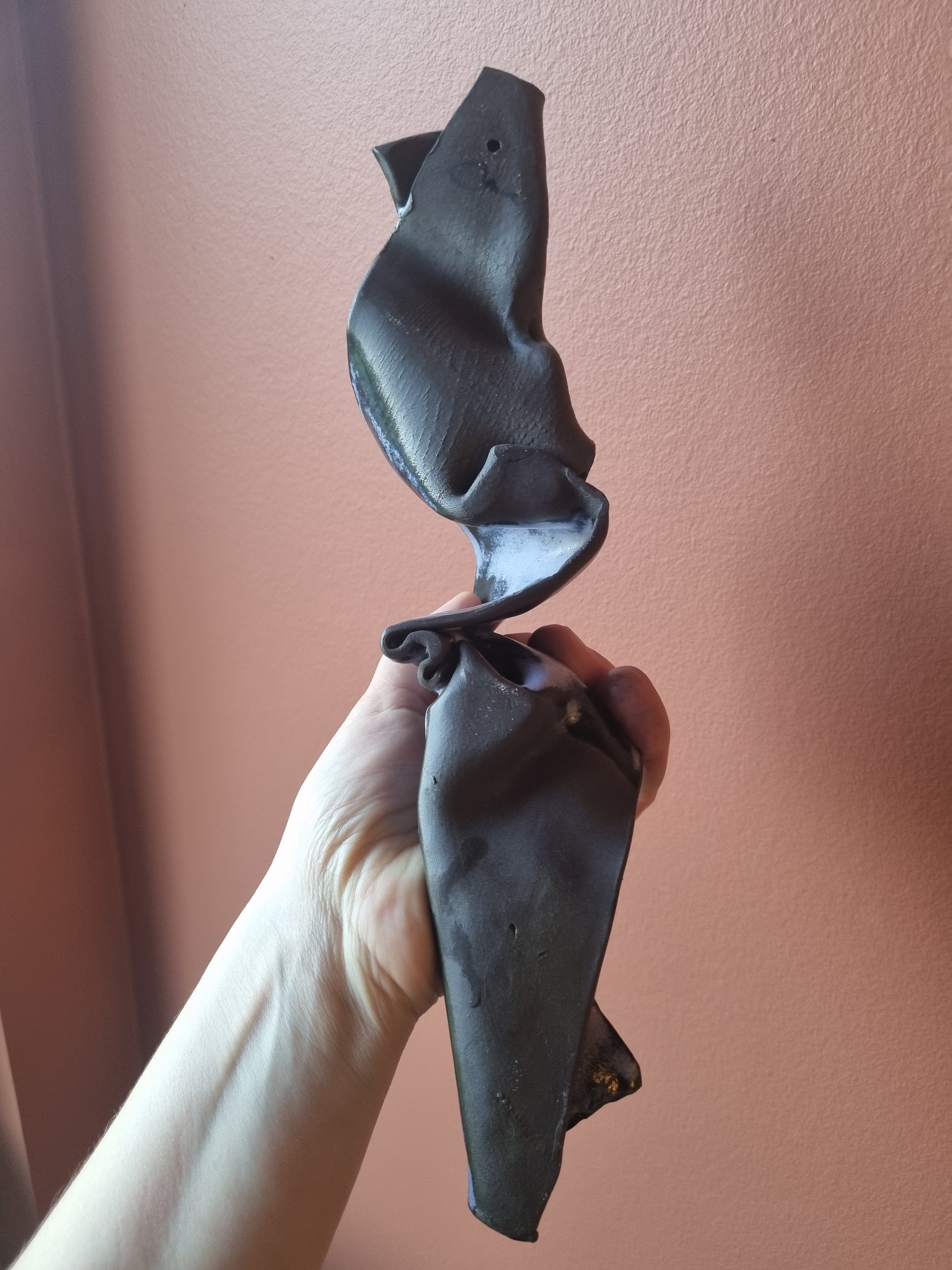 Væghængt keramikkrummelure lavet af keramikkunstner Martine Othilie. Håndlavet unika.
