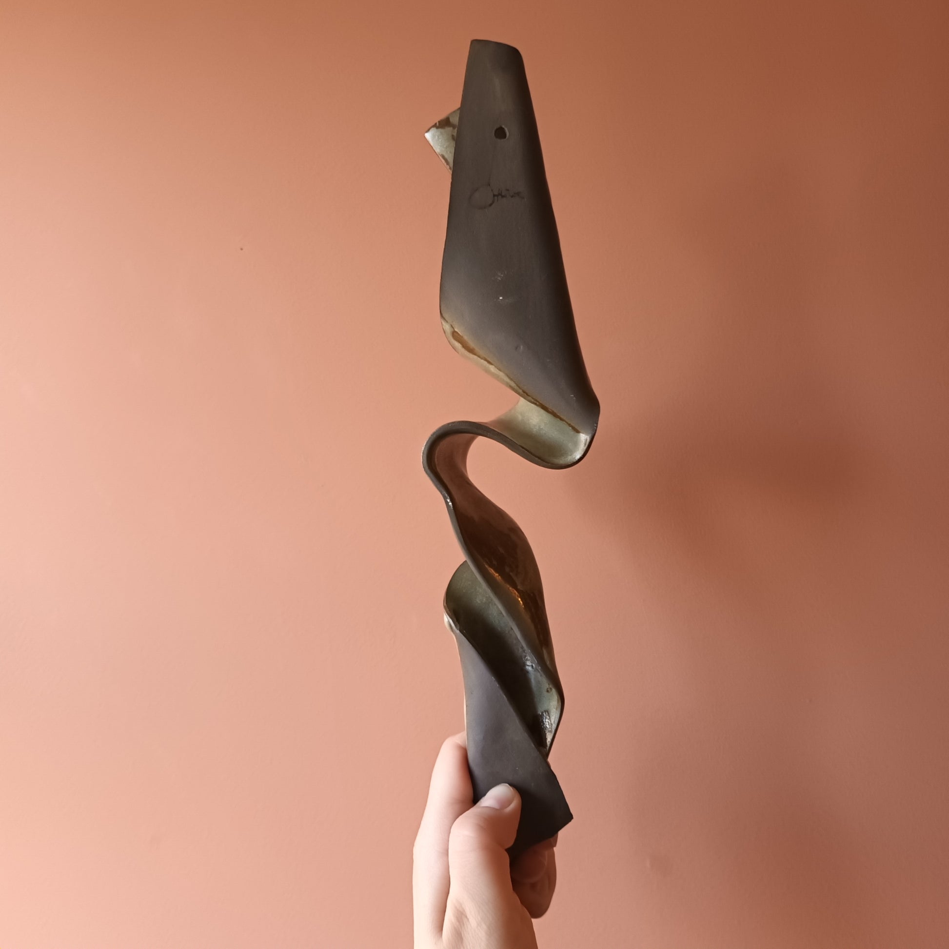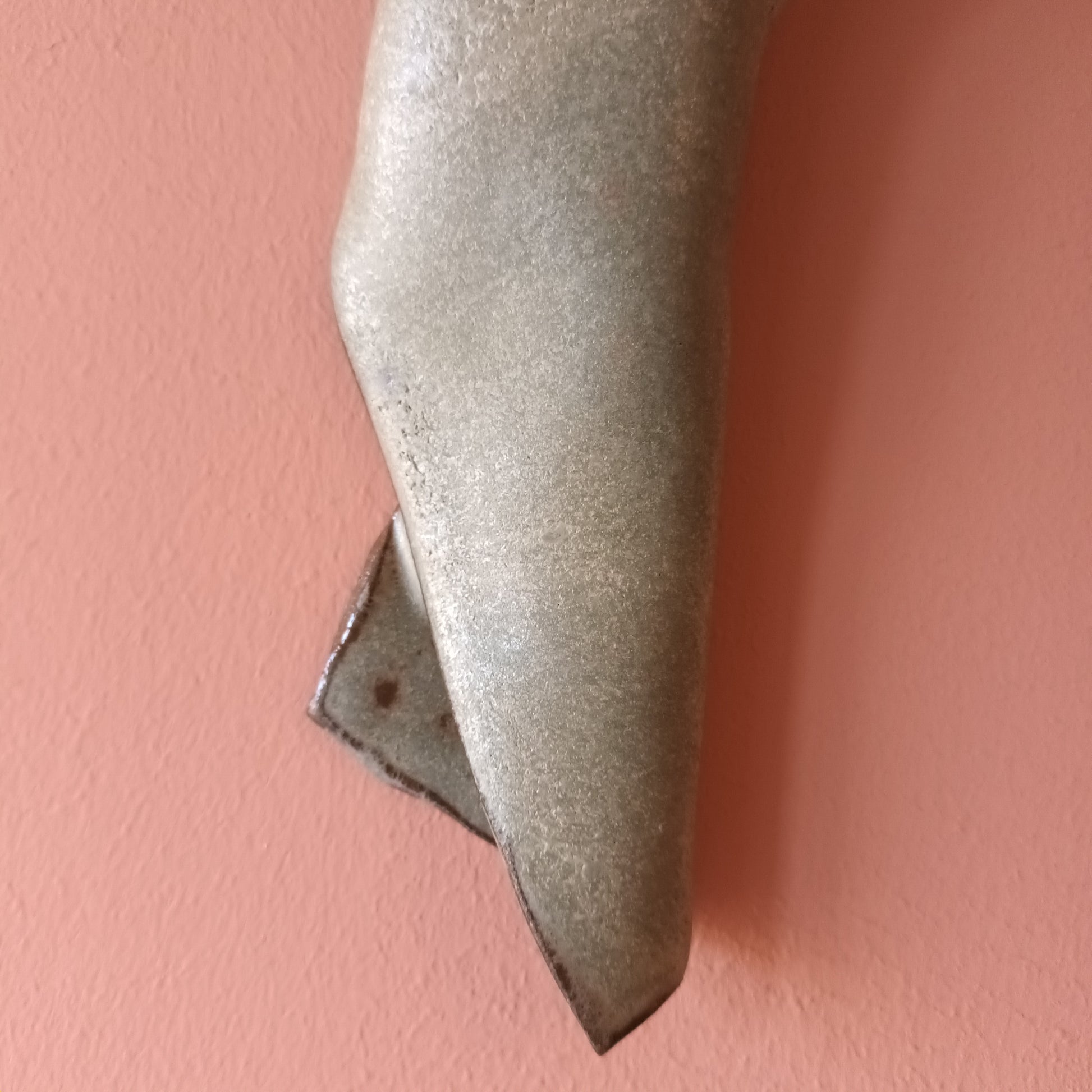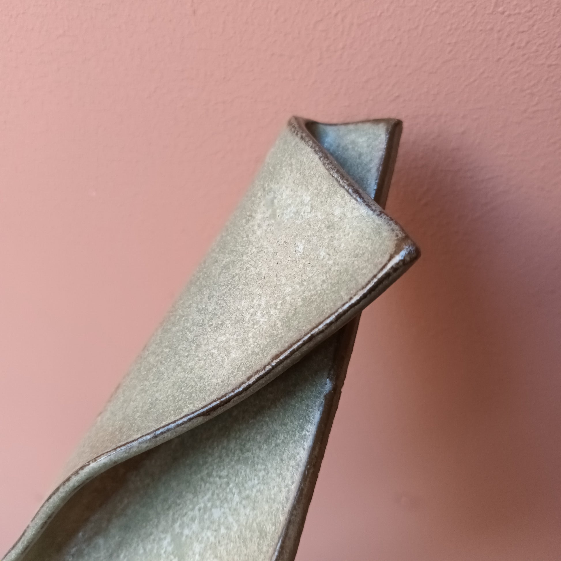 Grøn keramikkrummelure i sort ler. Giver dybde og sjæl til væggen :)