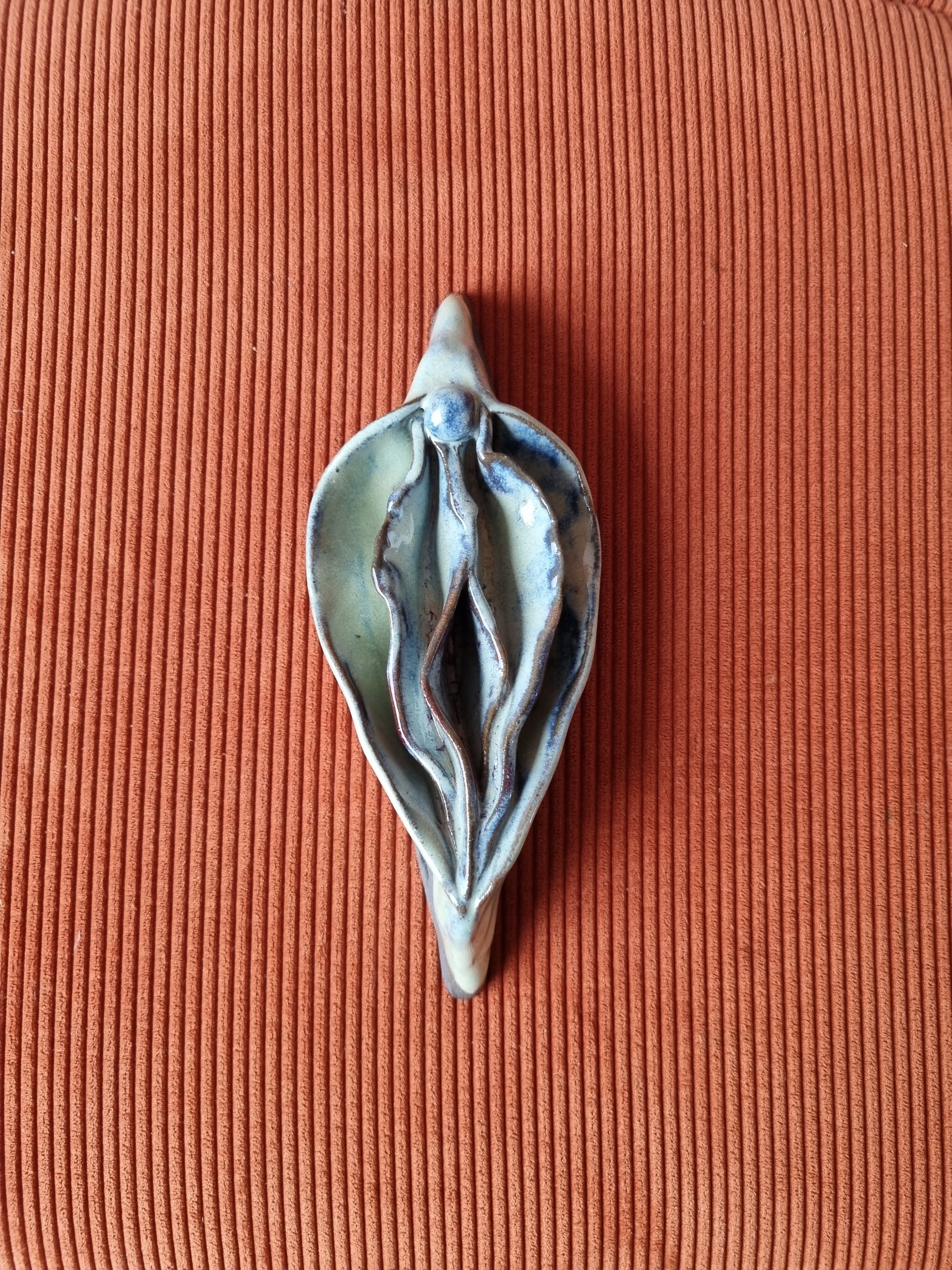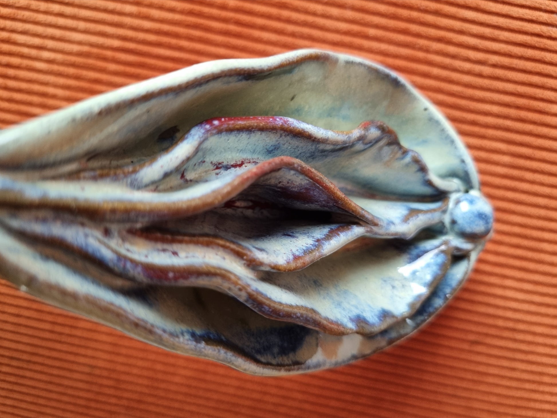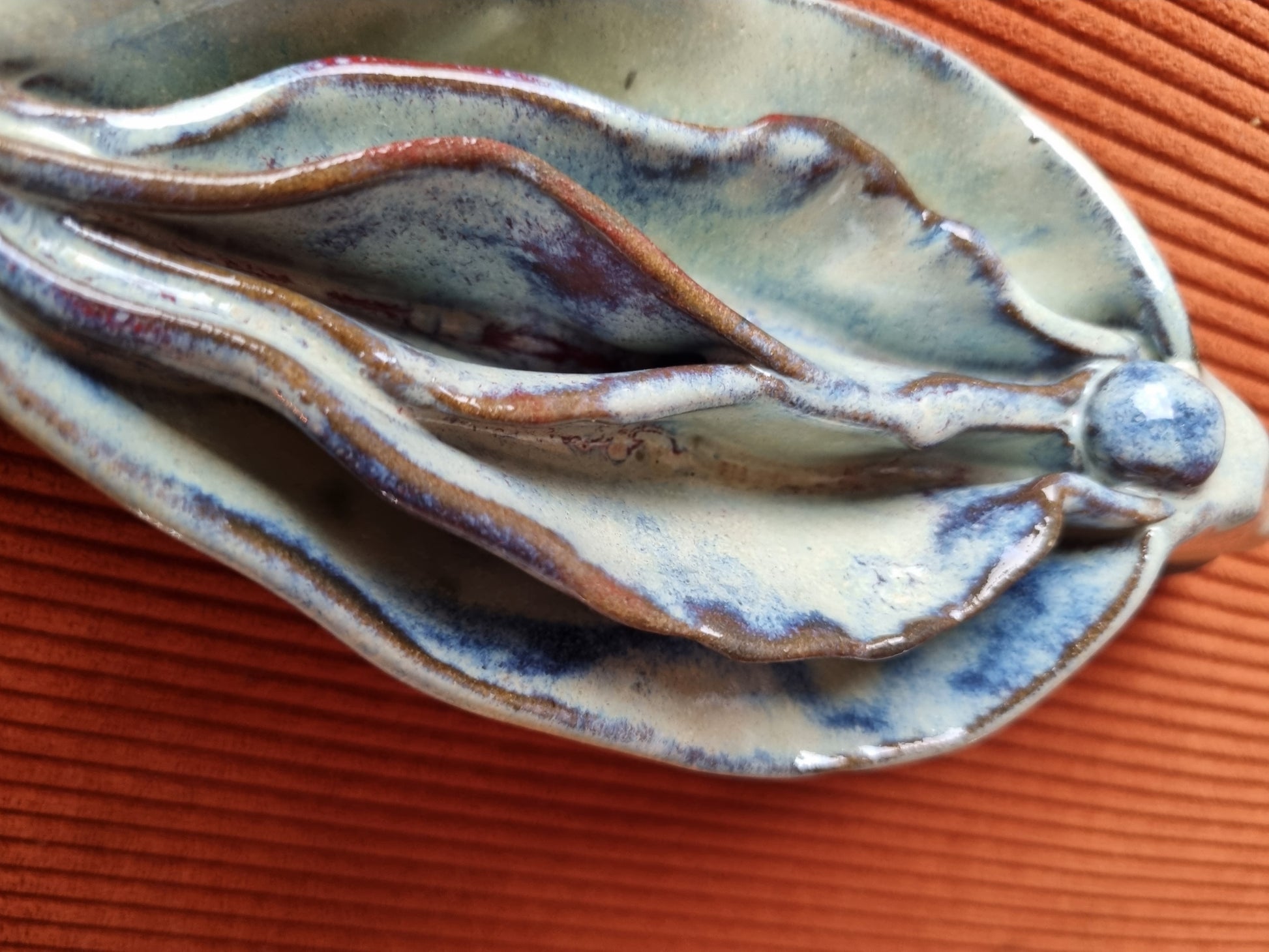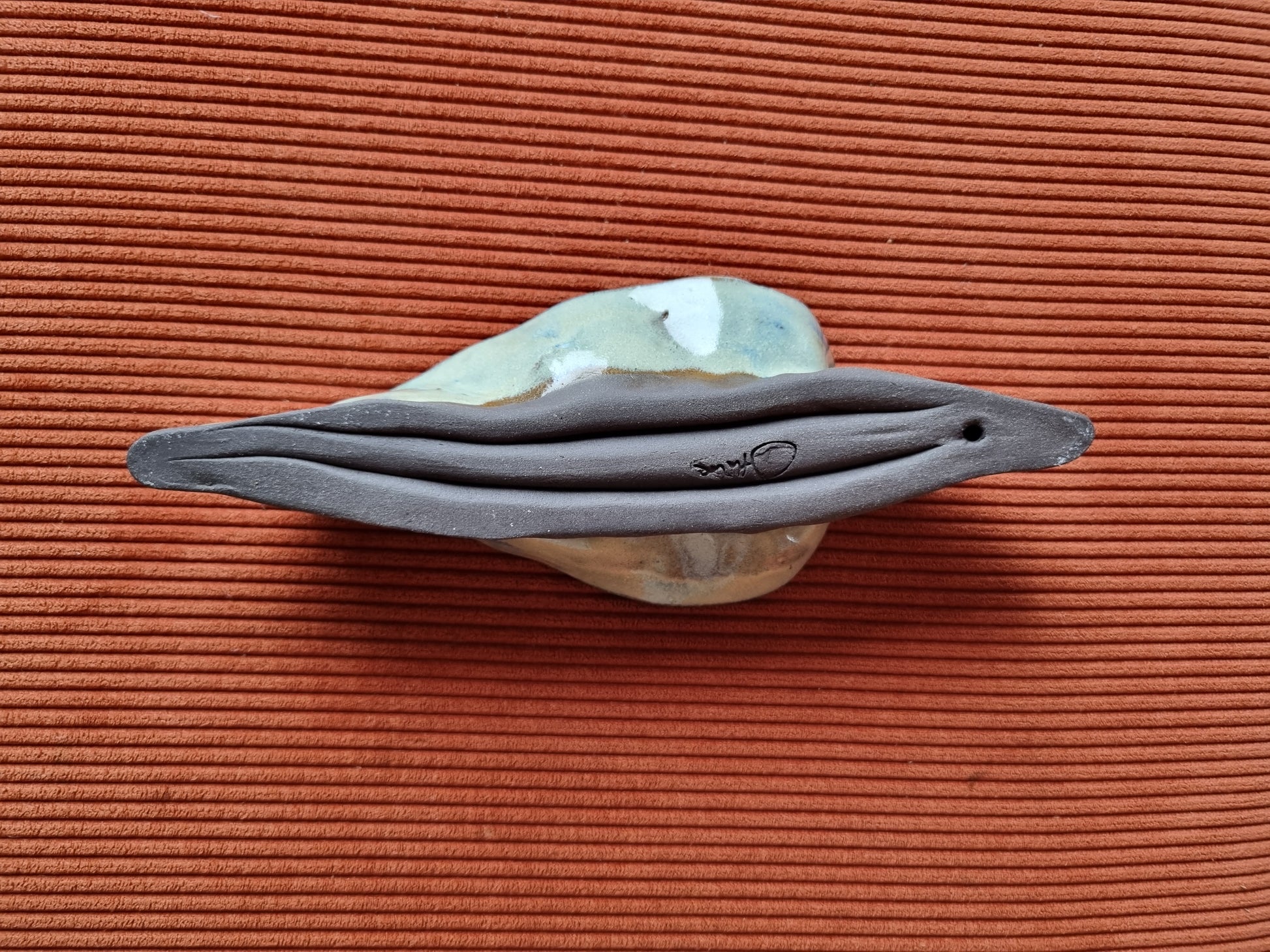 Væghængt keramikkusse lavet af keramikkunstner Martine Othilie. Håndlavet unika.