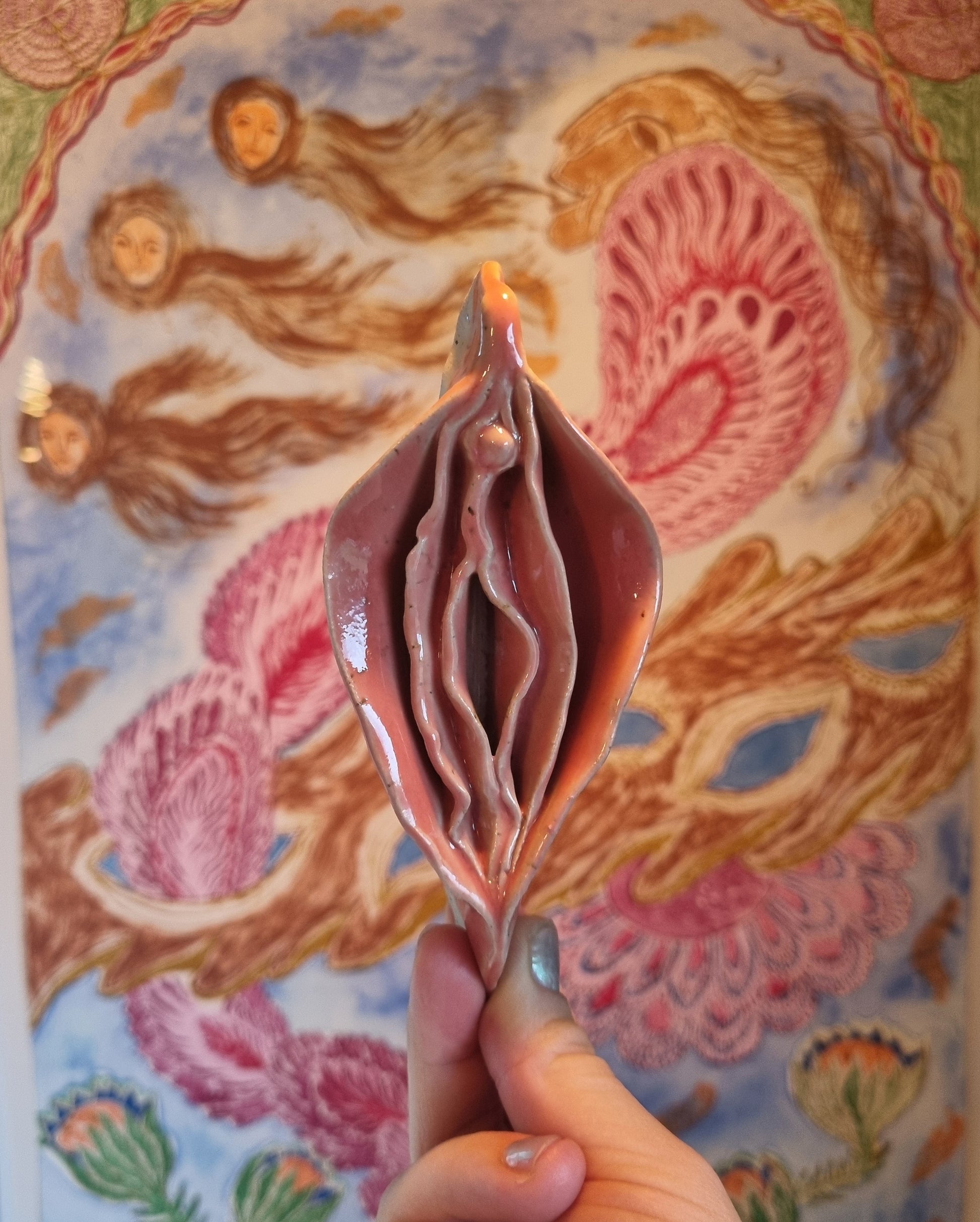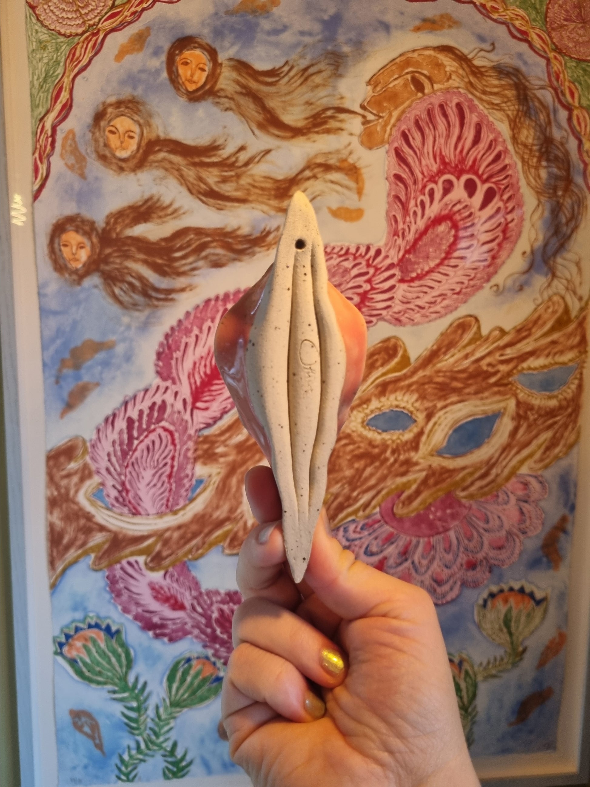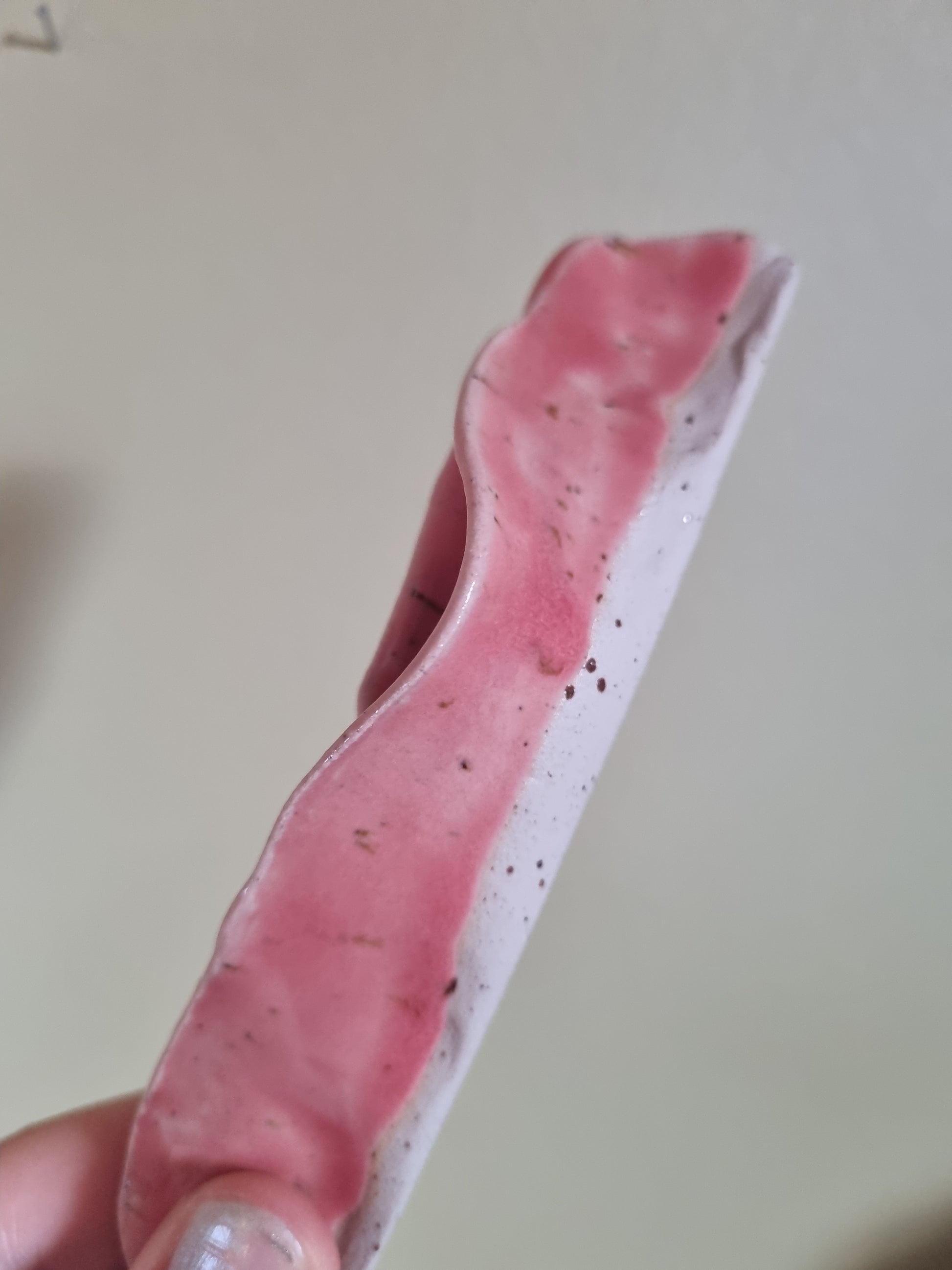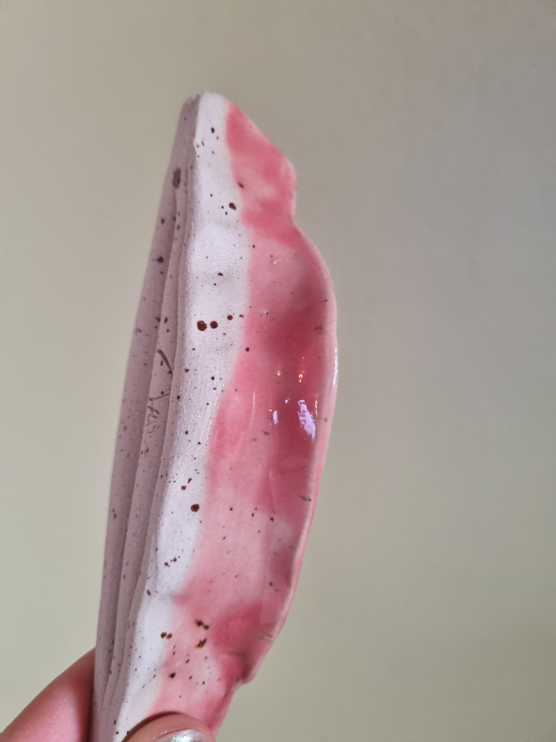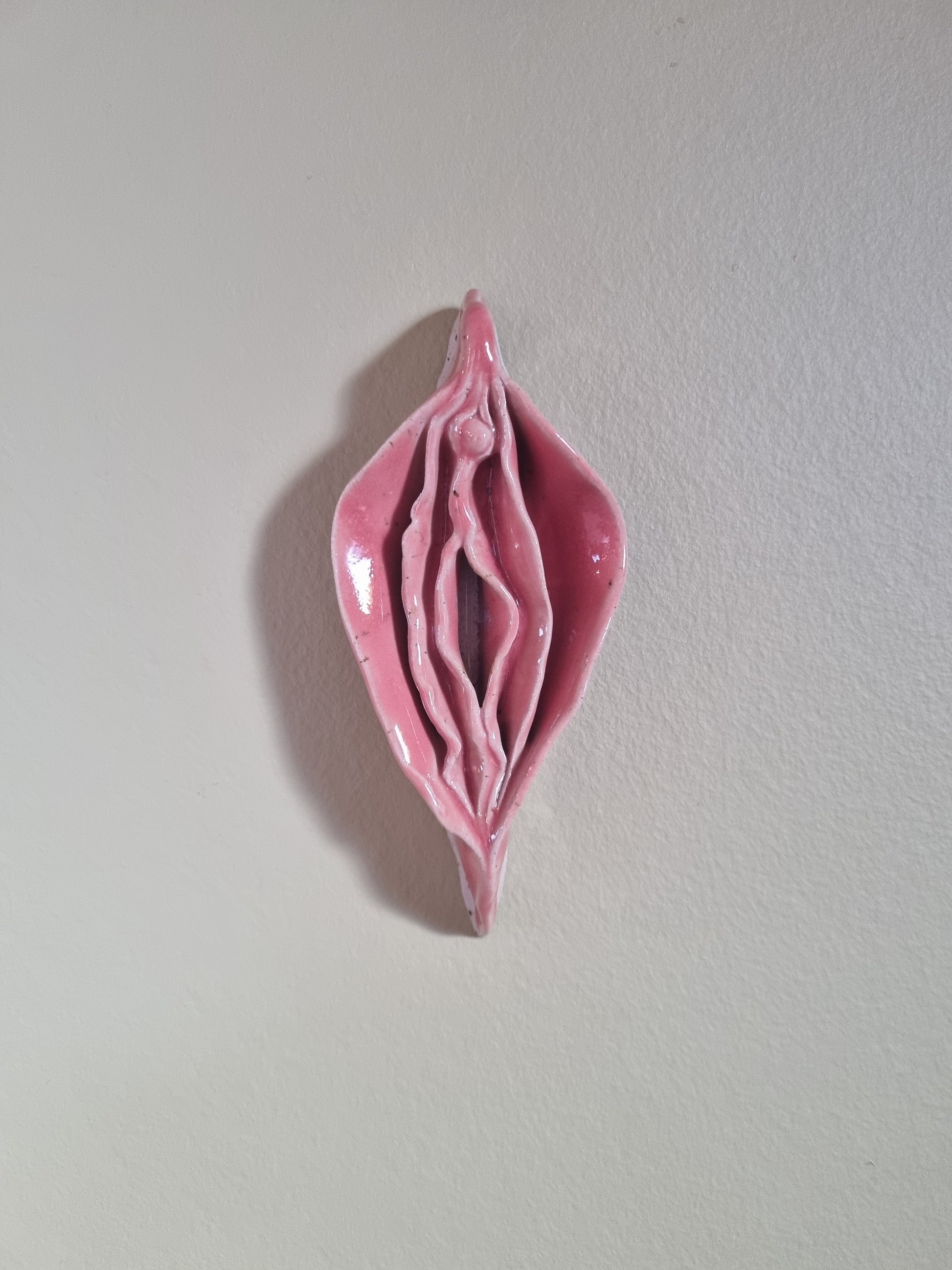 Væghængt keramikkusse lavet af keramikkunstner Martine Othilie. Håndlavet unika.