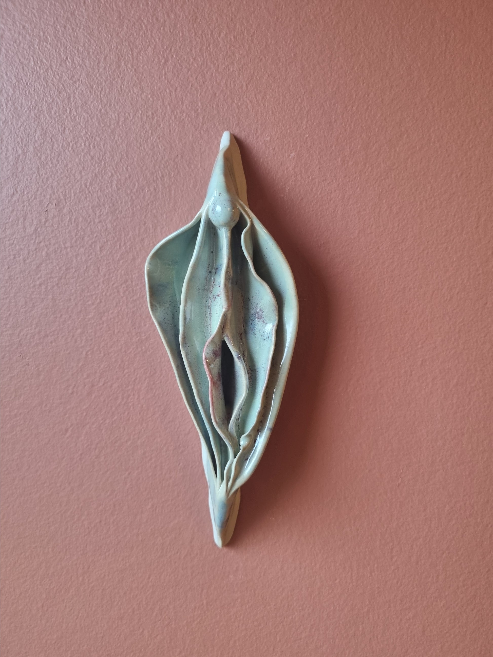 Skab power på din væg med denne væghængte keramikkusse lavet af keramikkunstner Martine Othilie. Håndlavet unika.