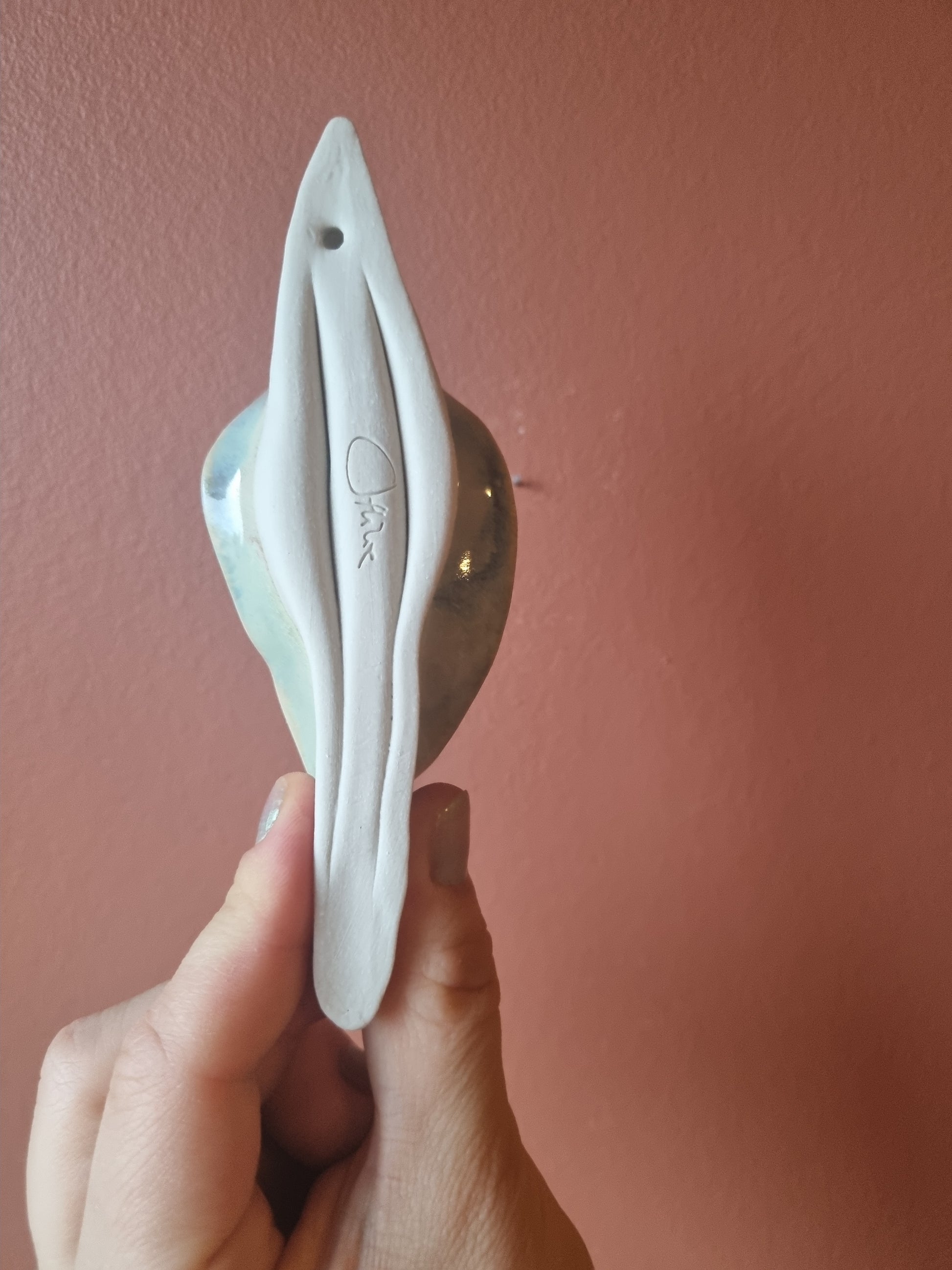 Skab power på din væg med denne væghængte keramikkusse lavet af keramikkunstner Martine Othilie. Håndlavet unika.