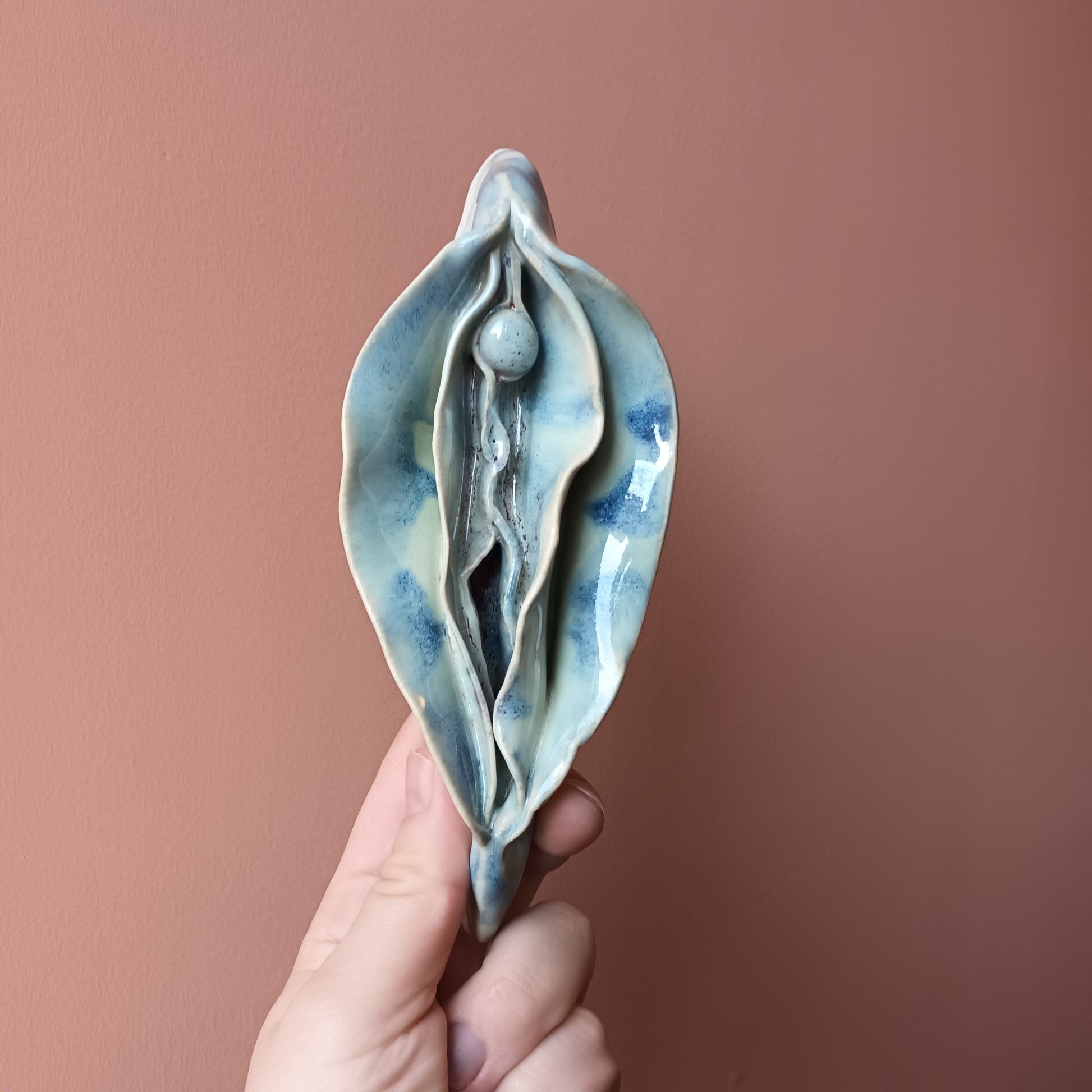 Væghængt kussepower. Hæng den på din billedvæg, eller på en væg der keder sig :) Håndmodelleret og malet af Martine Othilie.