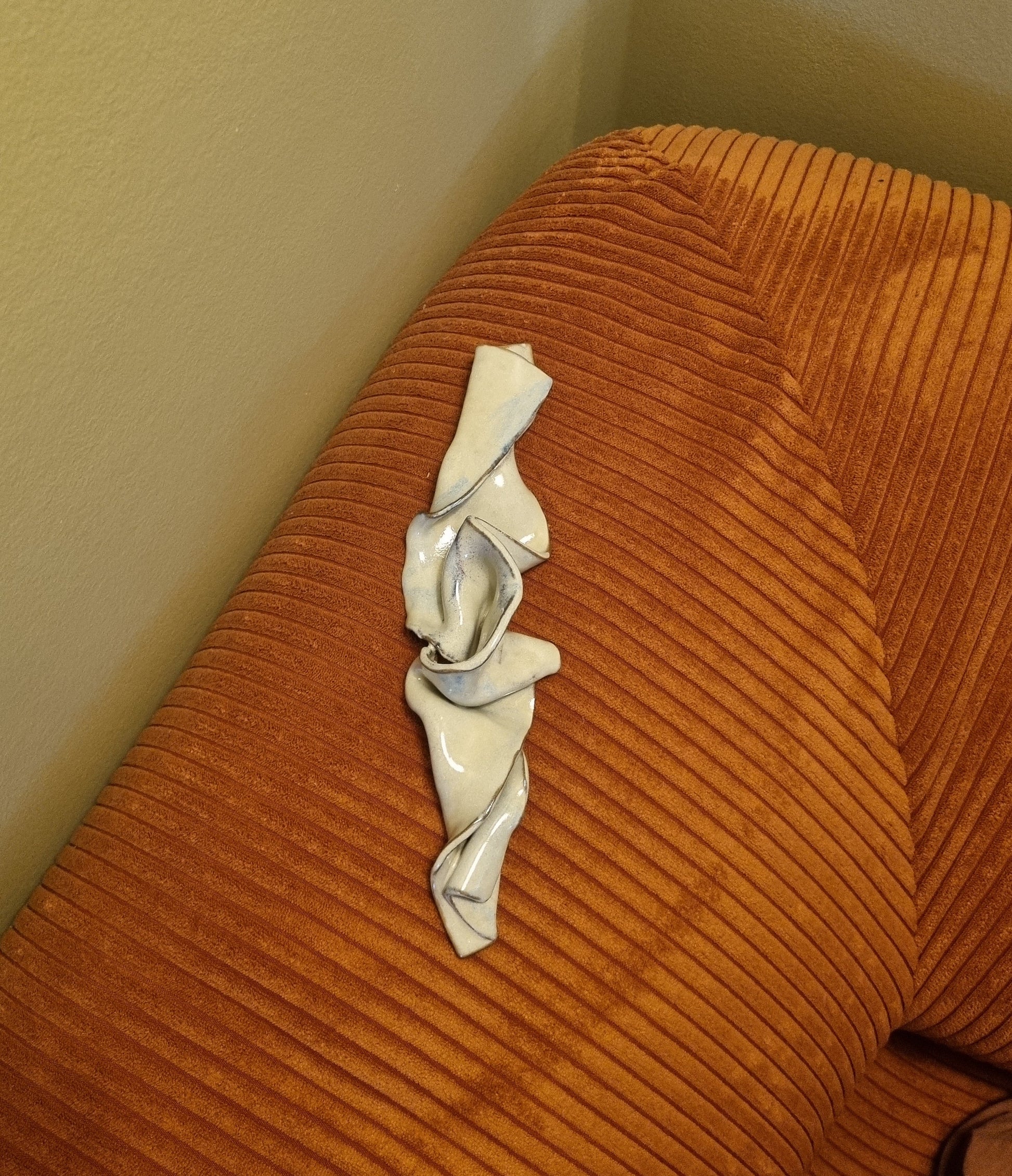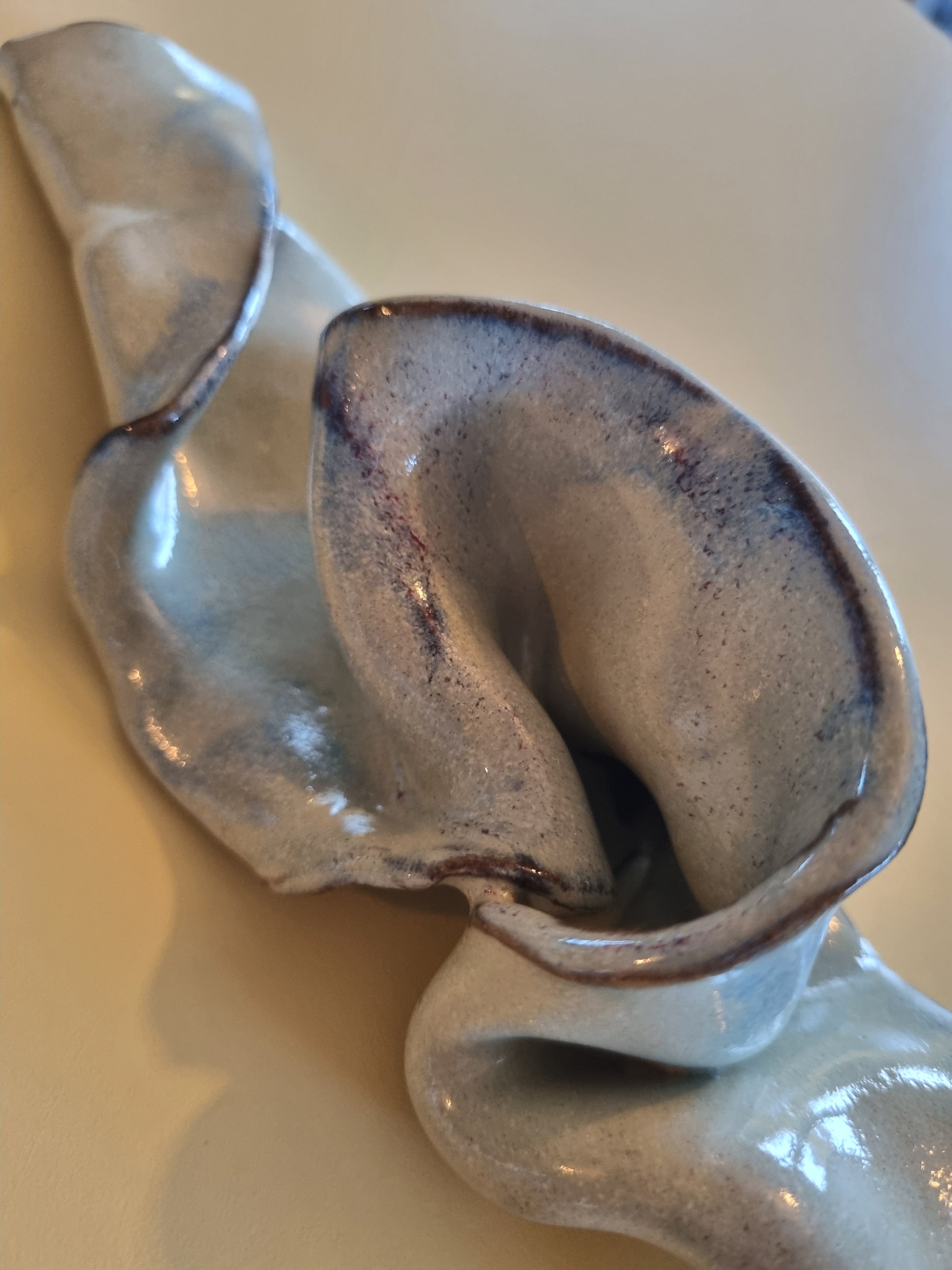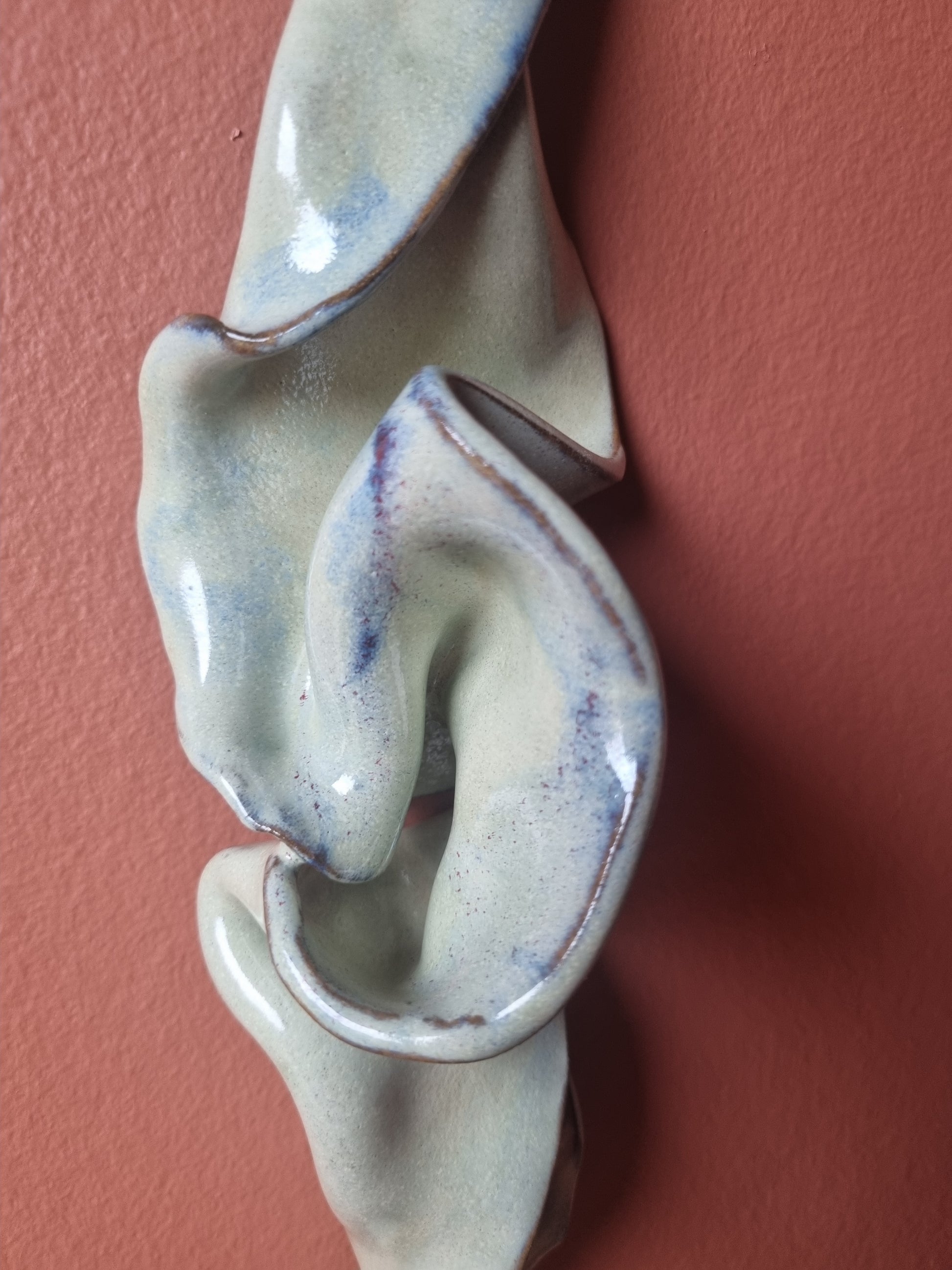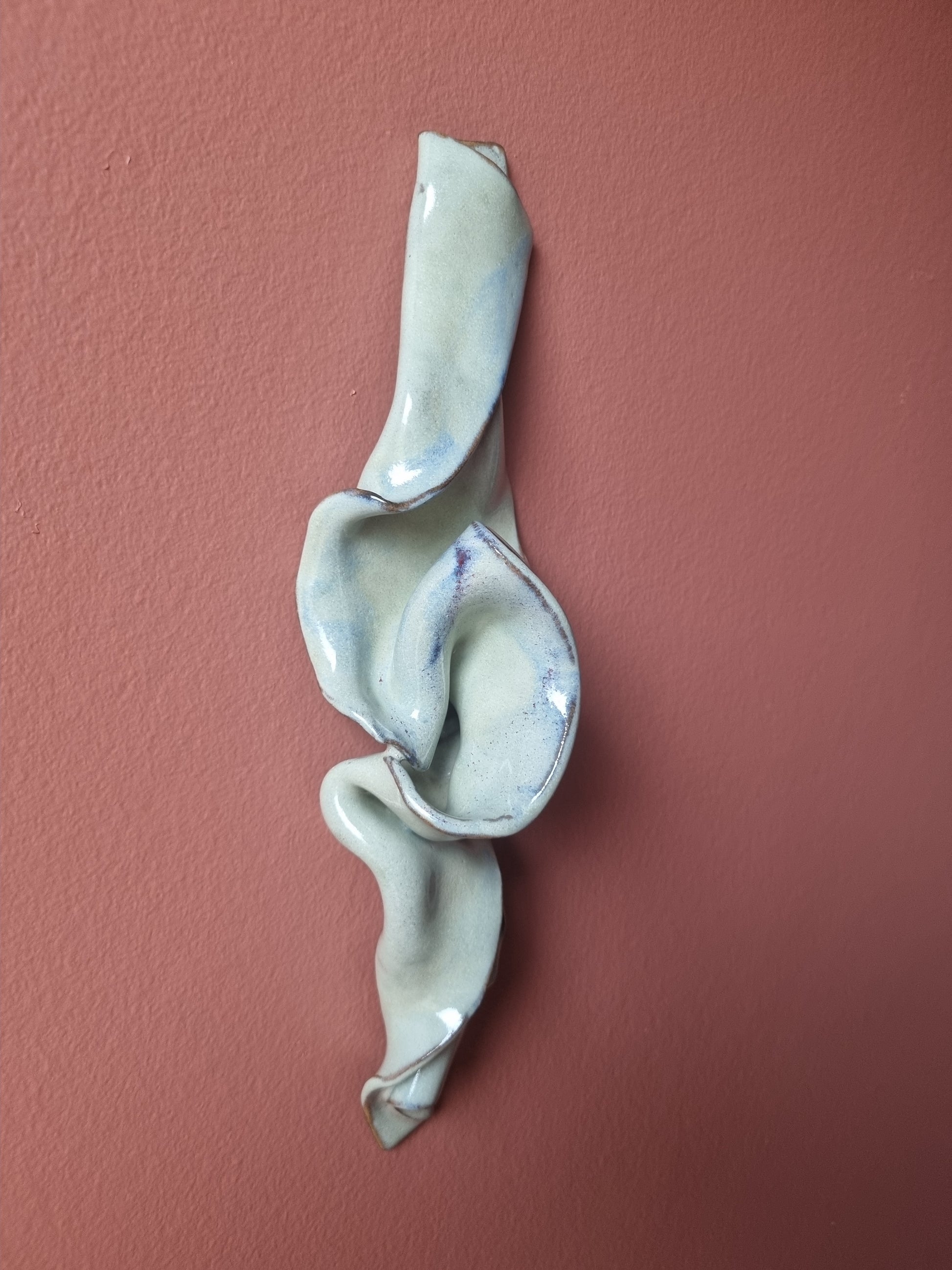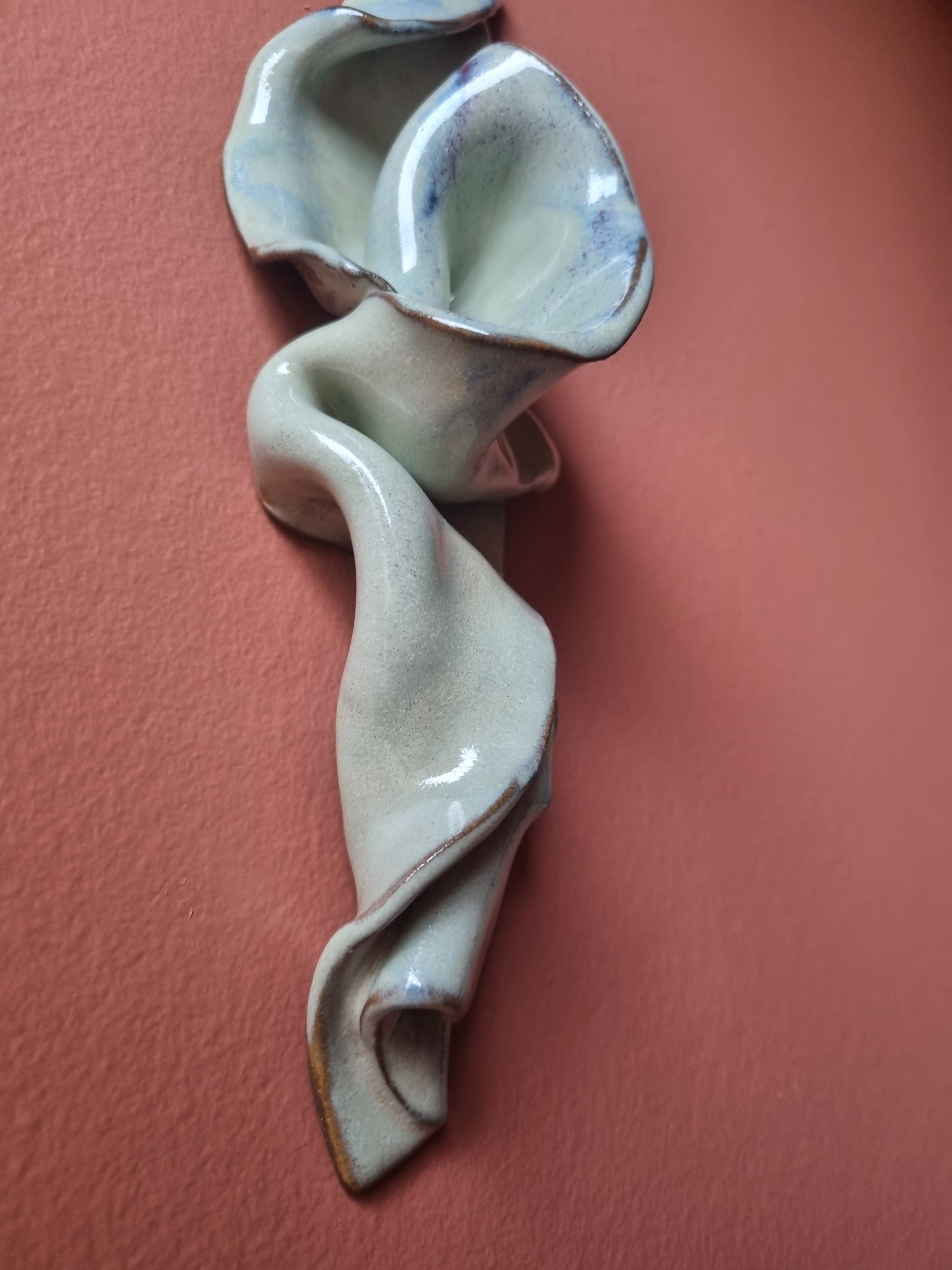 Væghængt keramikkrummelure lavet af keramikkunstner Martine Othilie. Håndlavet unika.