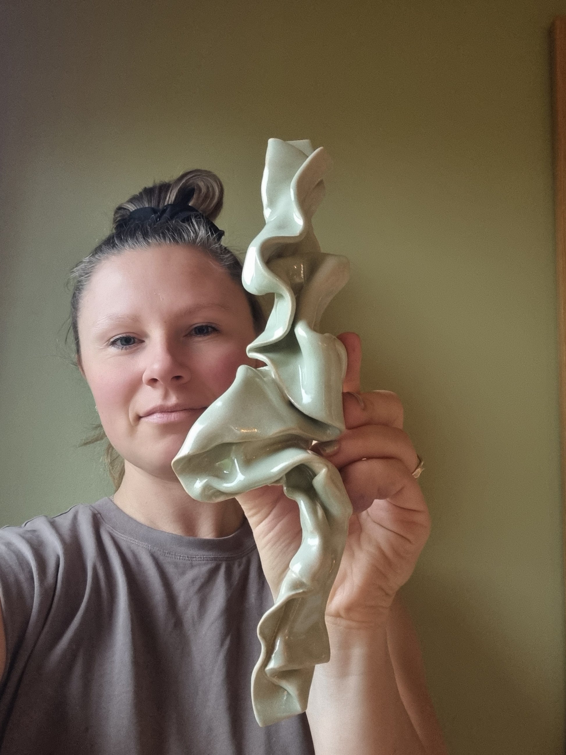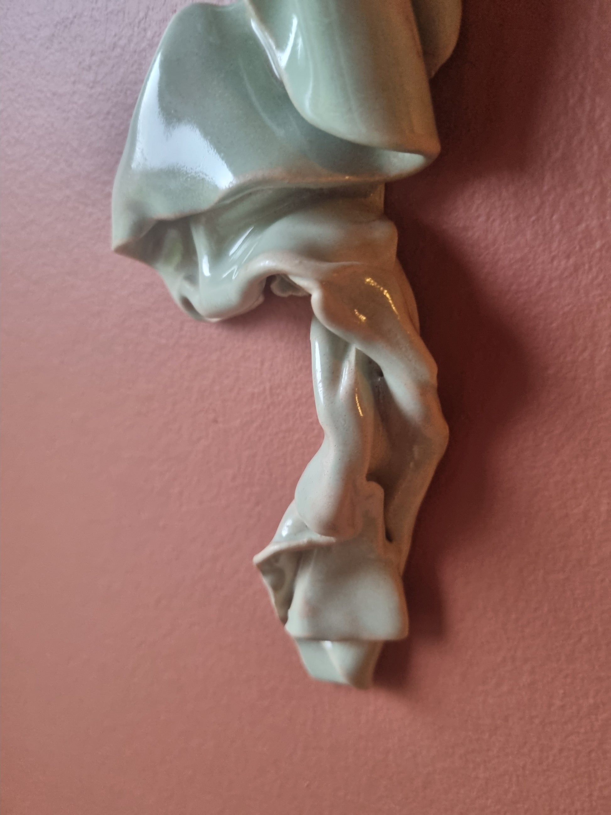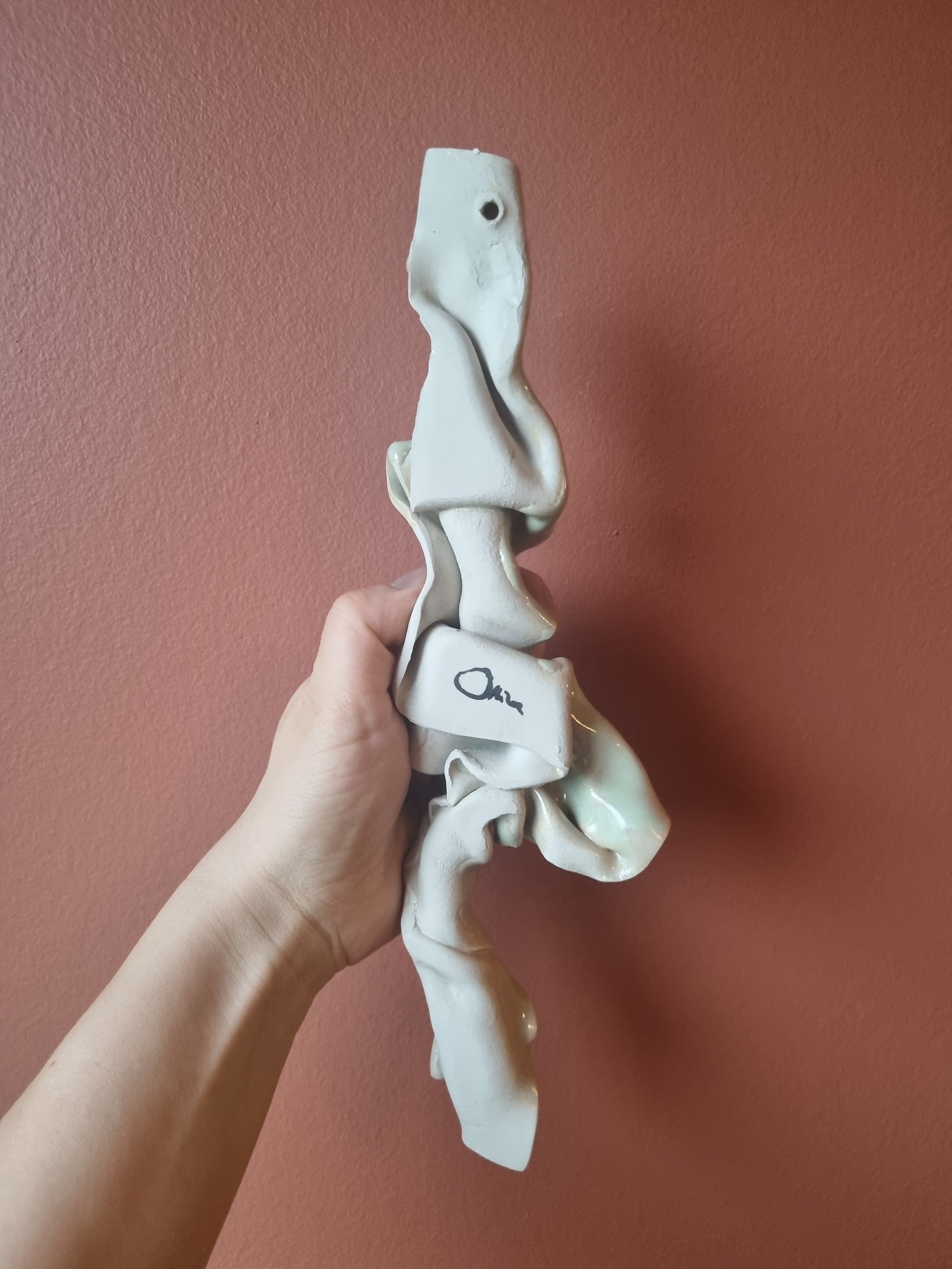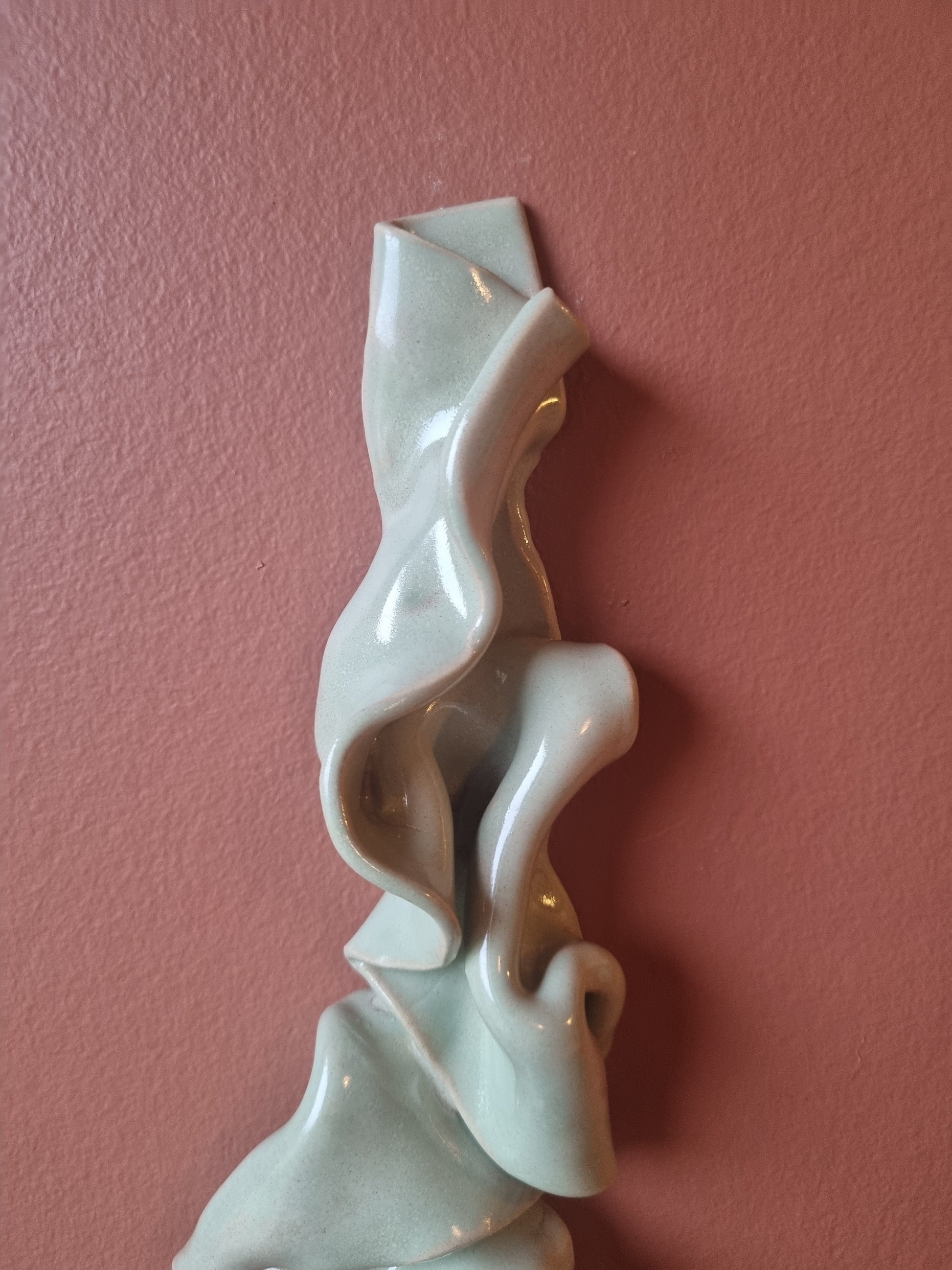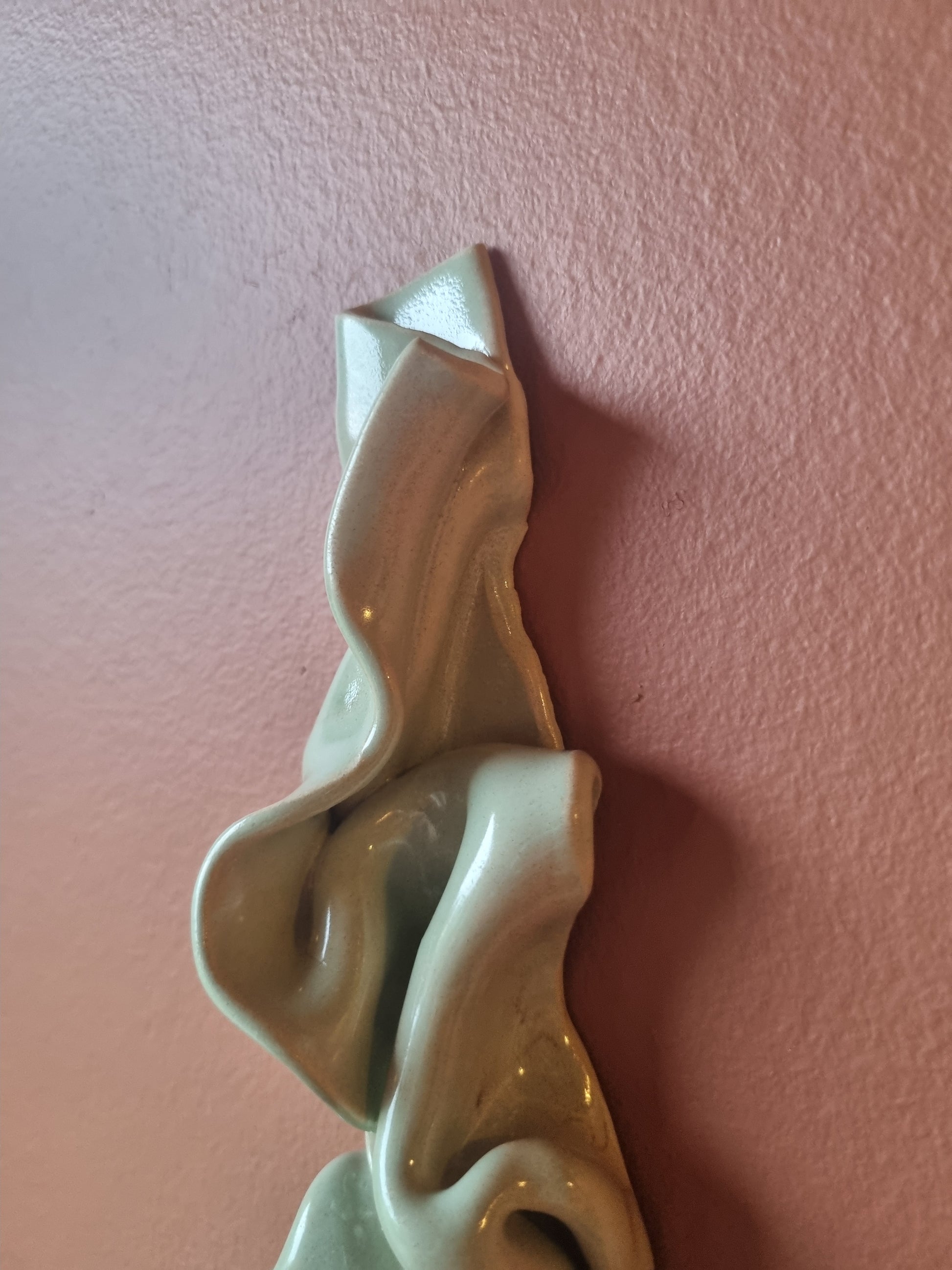Væghængt keramikkrummelure lavet af keramikkunstner Martine Othilie. Håndlavet unika.