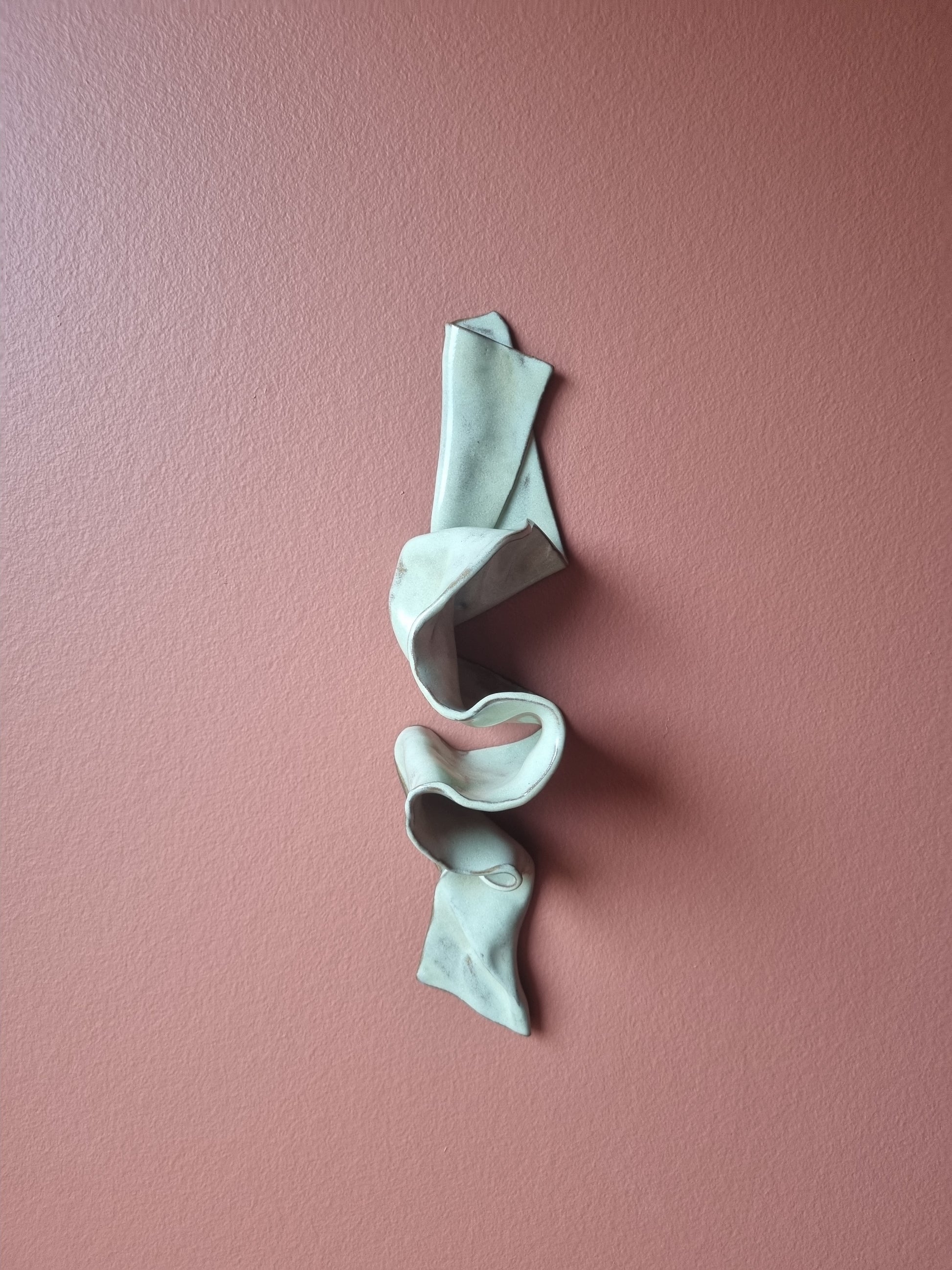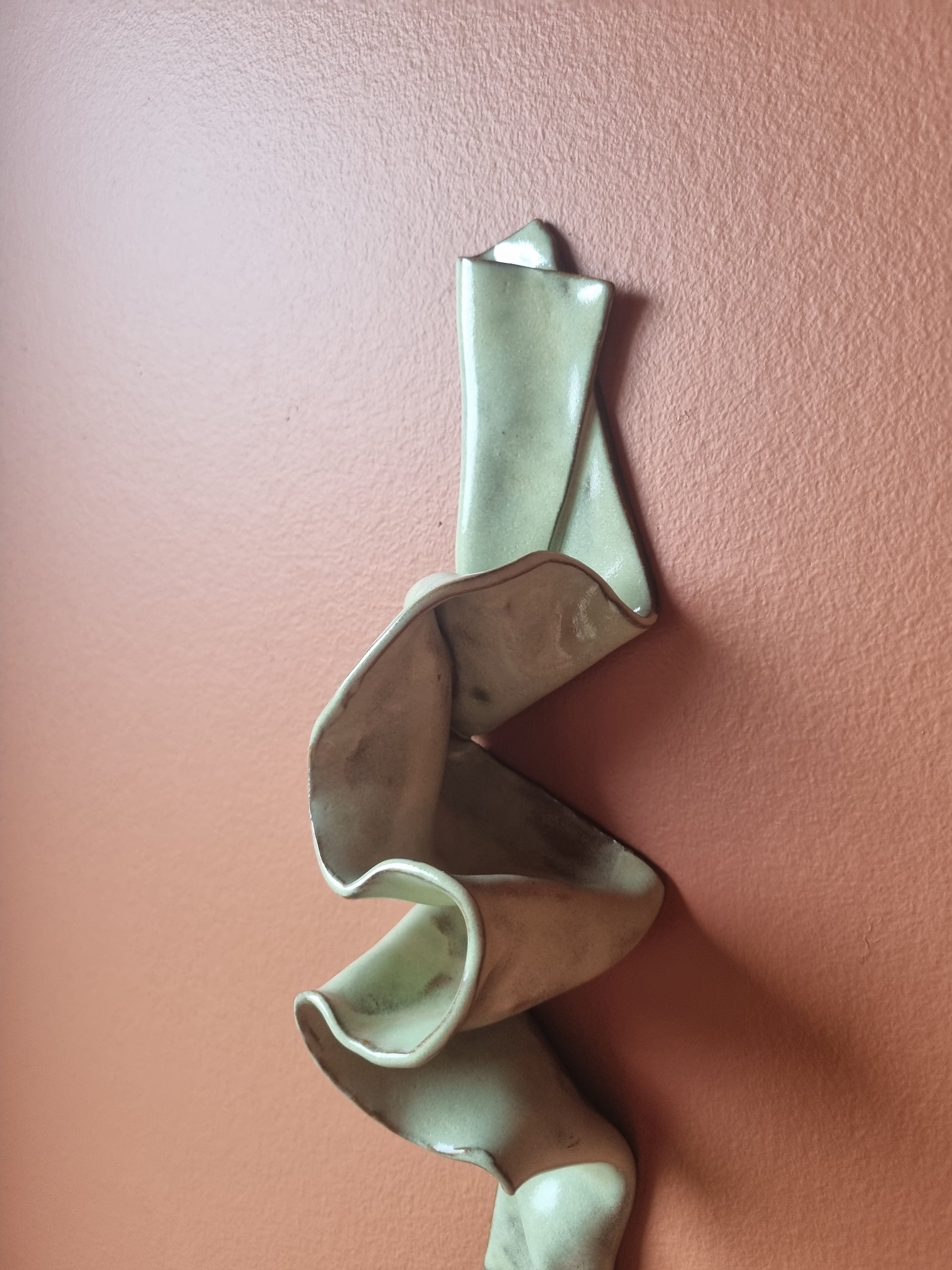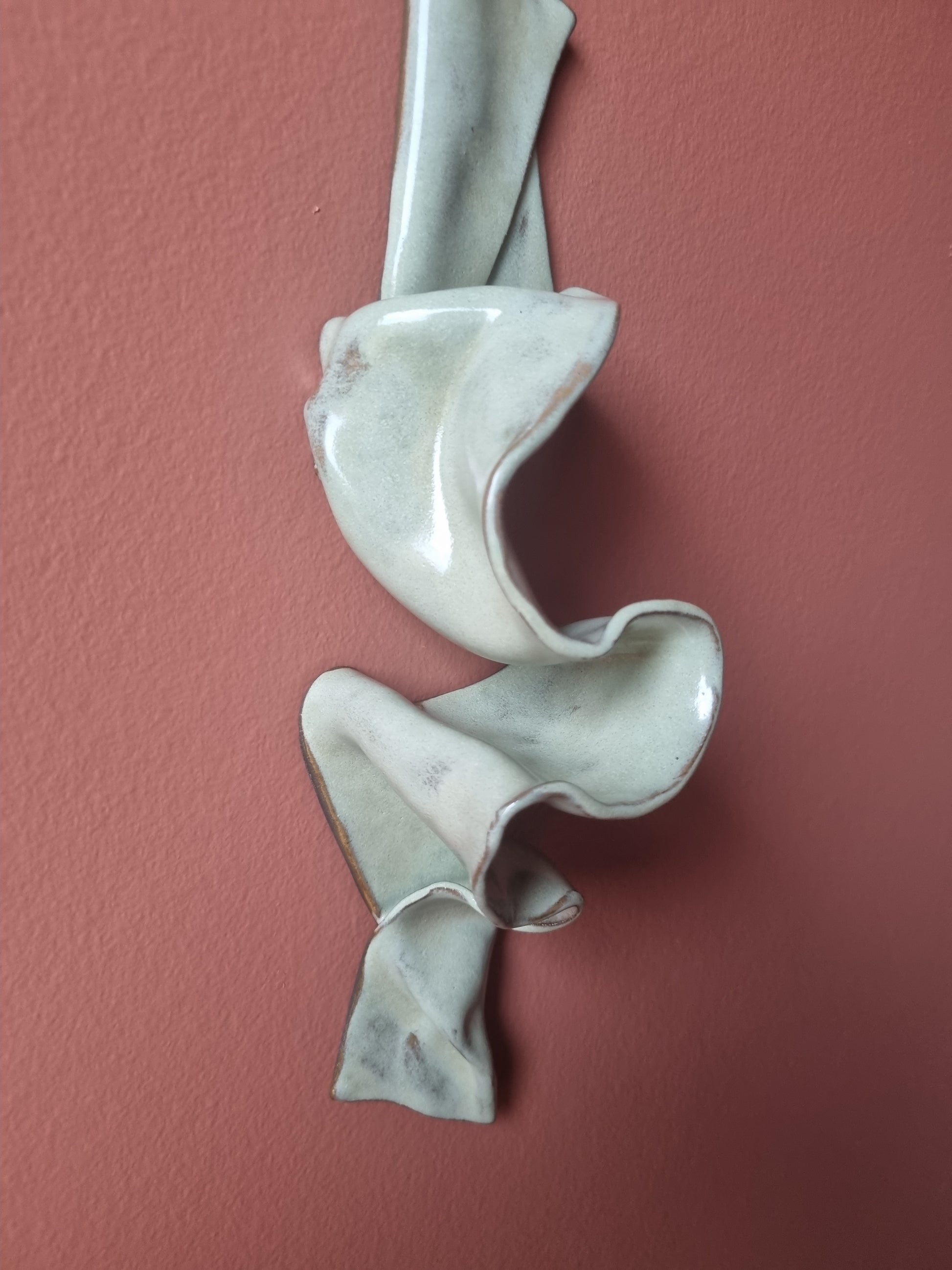 Væghængt keramikkrummelure lavet af keramikkunstner Martine Othilie. Håndlavet unika.