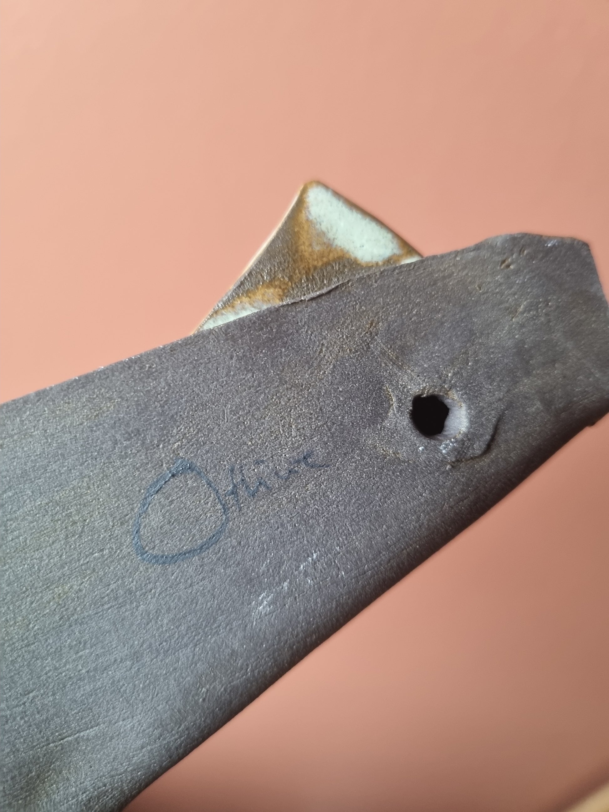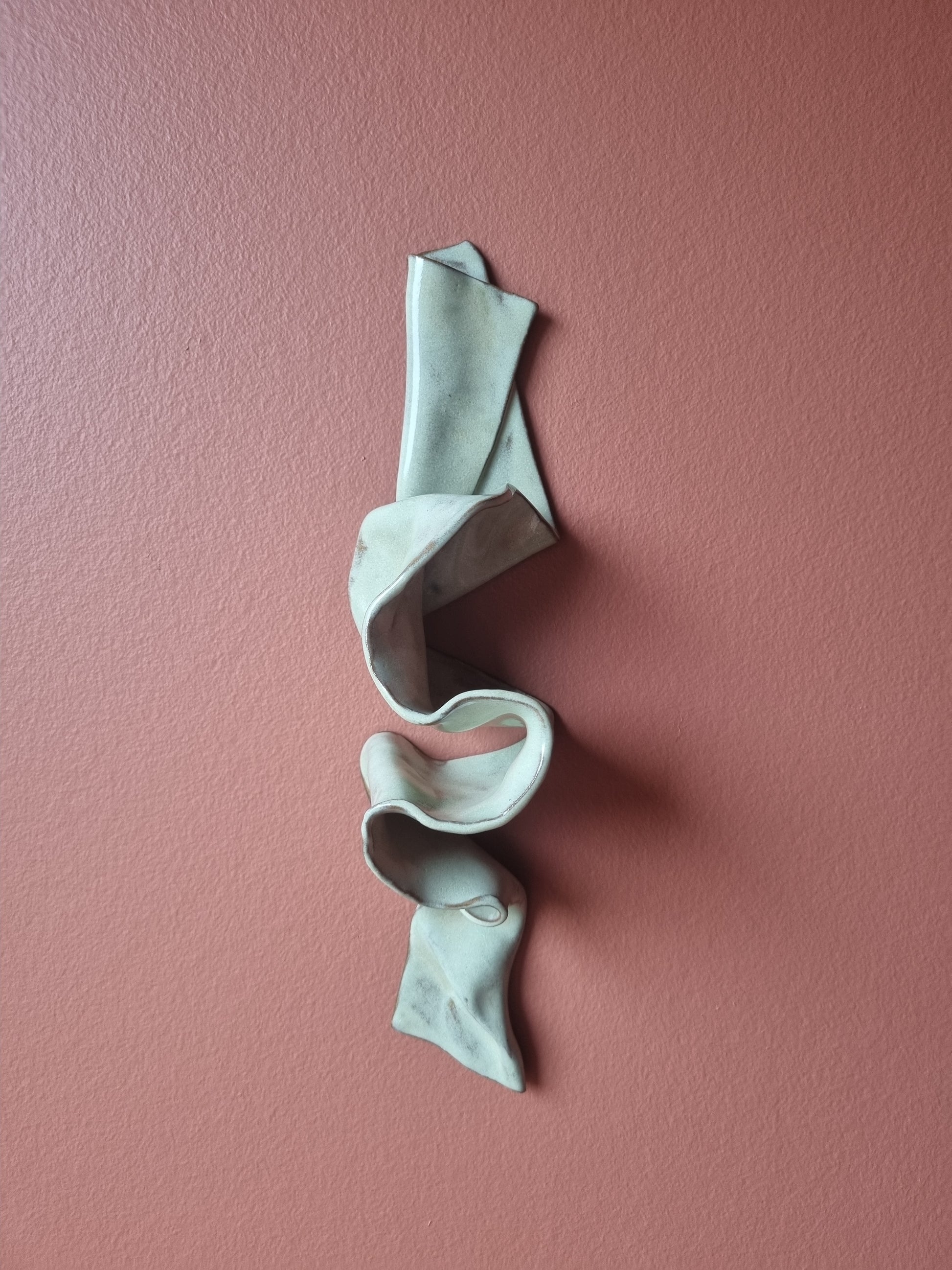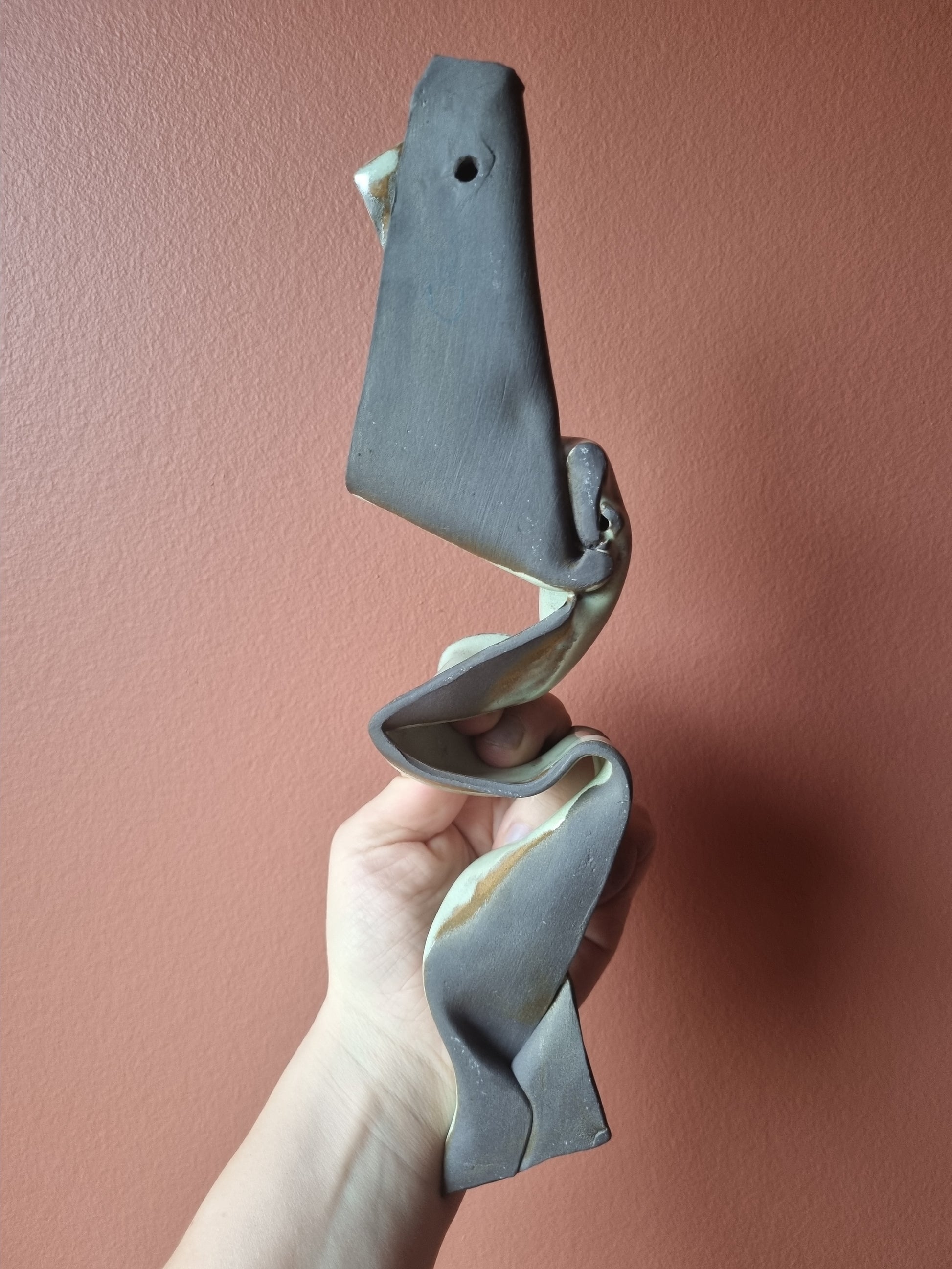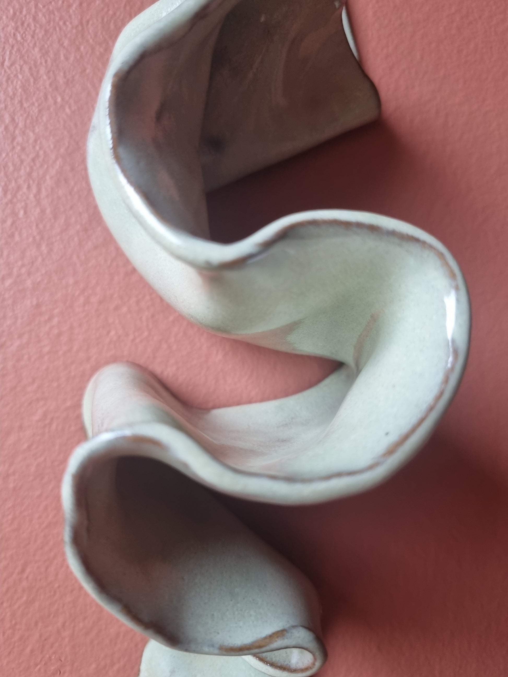 Væghængt keramikkrummelure lavet af keramikkunstner Martine Othilie. Håndlavet unika.