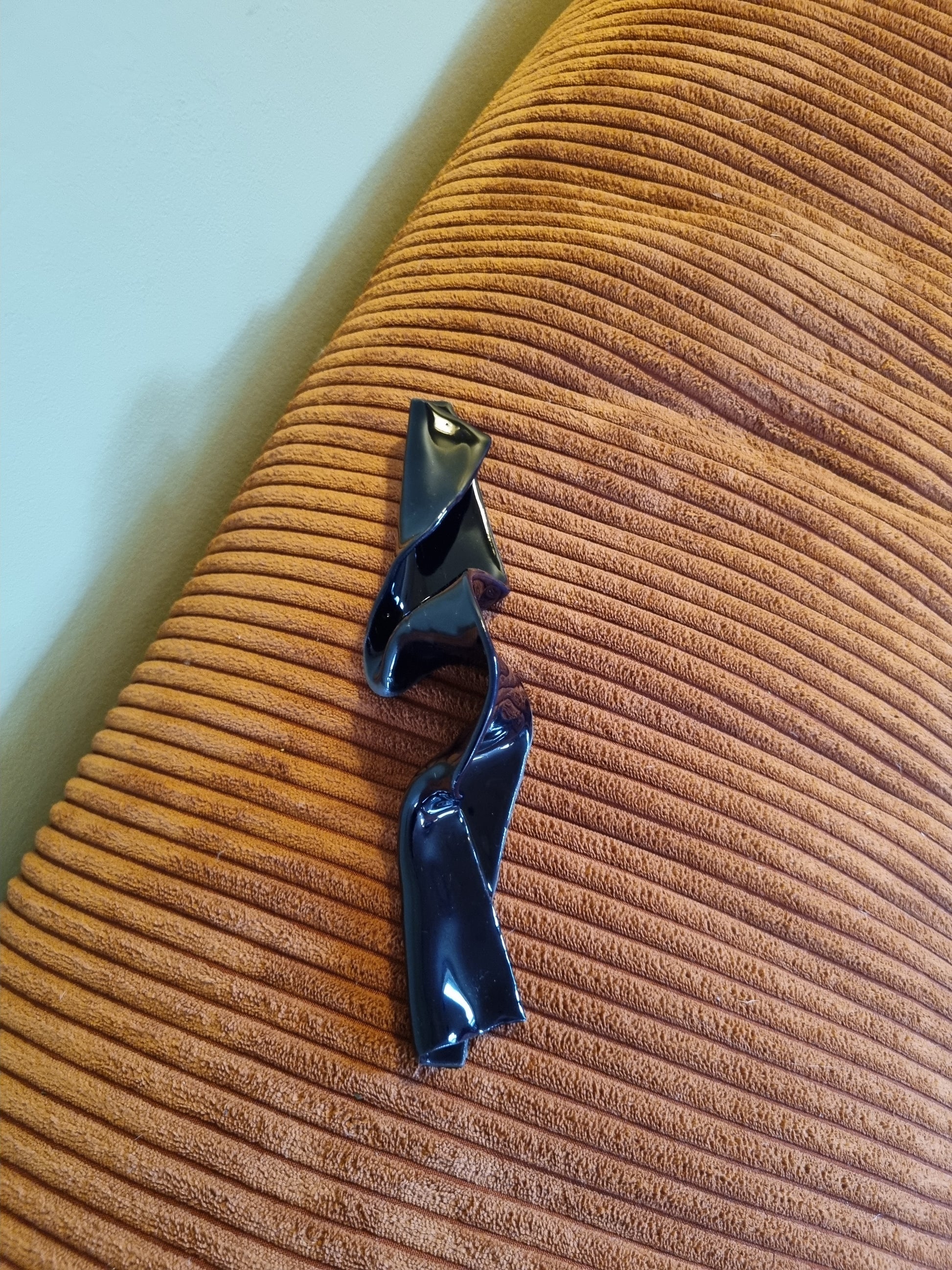 Væghængt keramikkrummelure lavet af keramikkunstner Martine Othilie. Håndlavet unika.