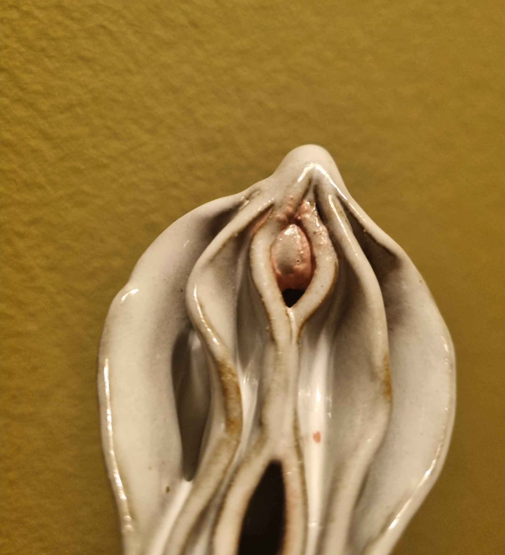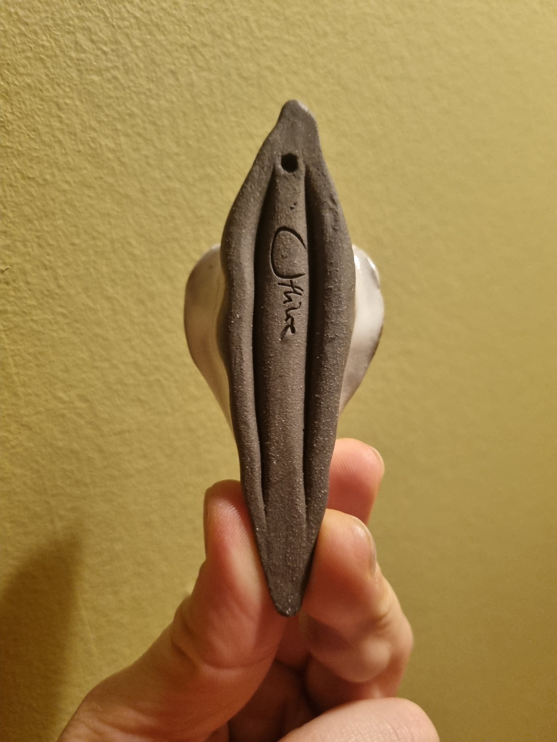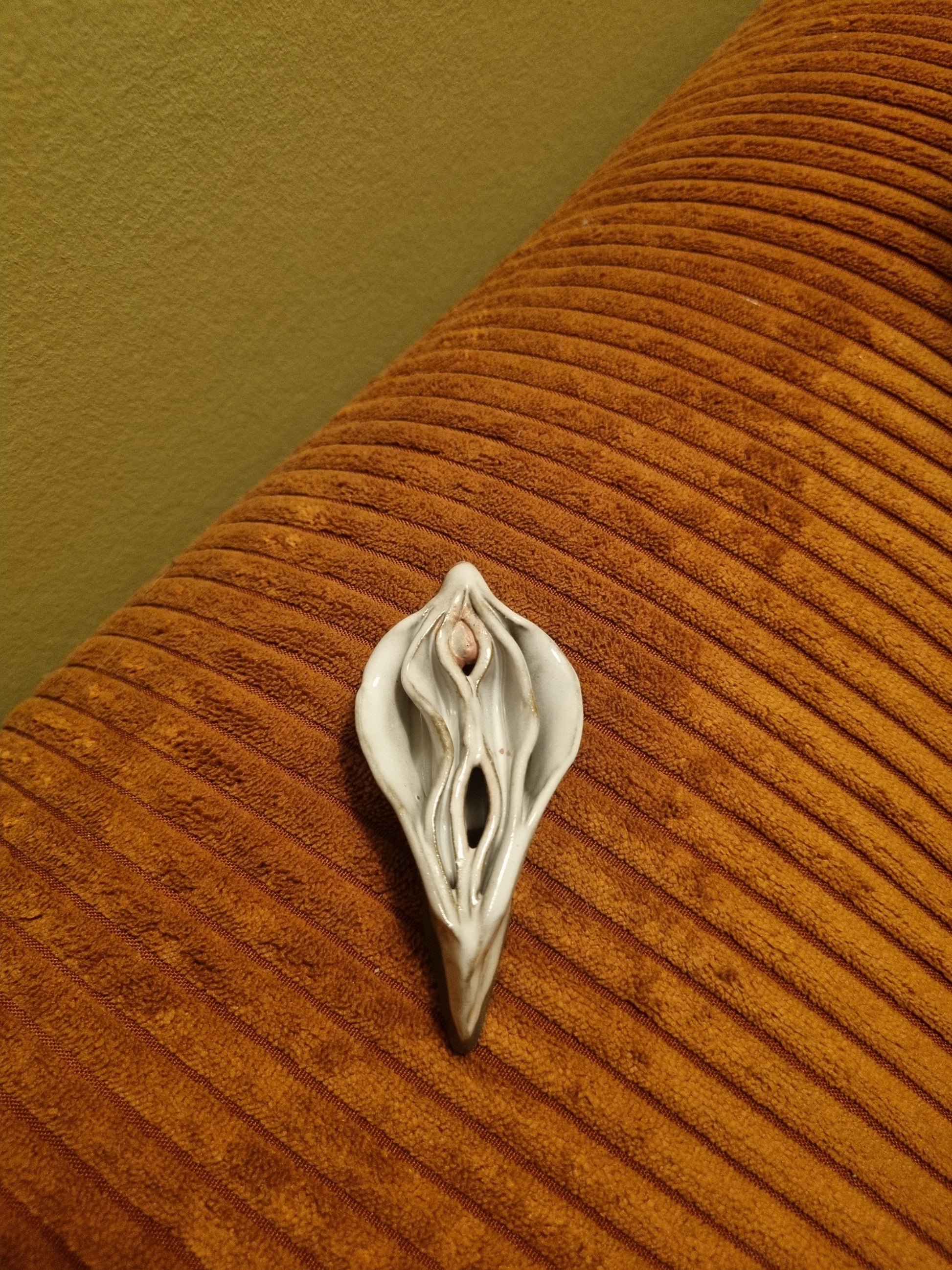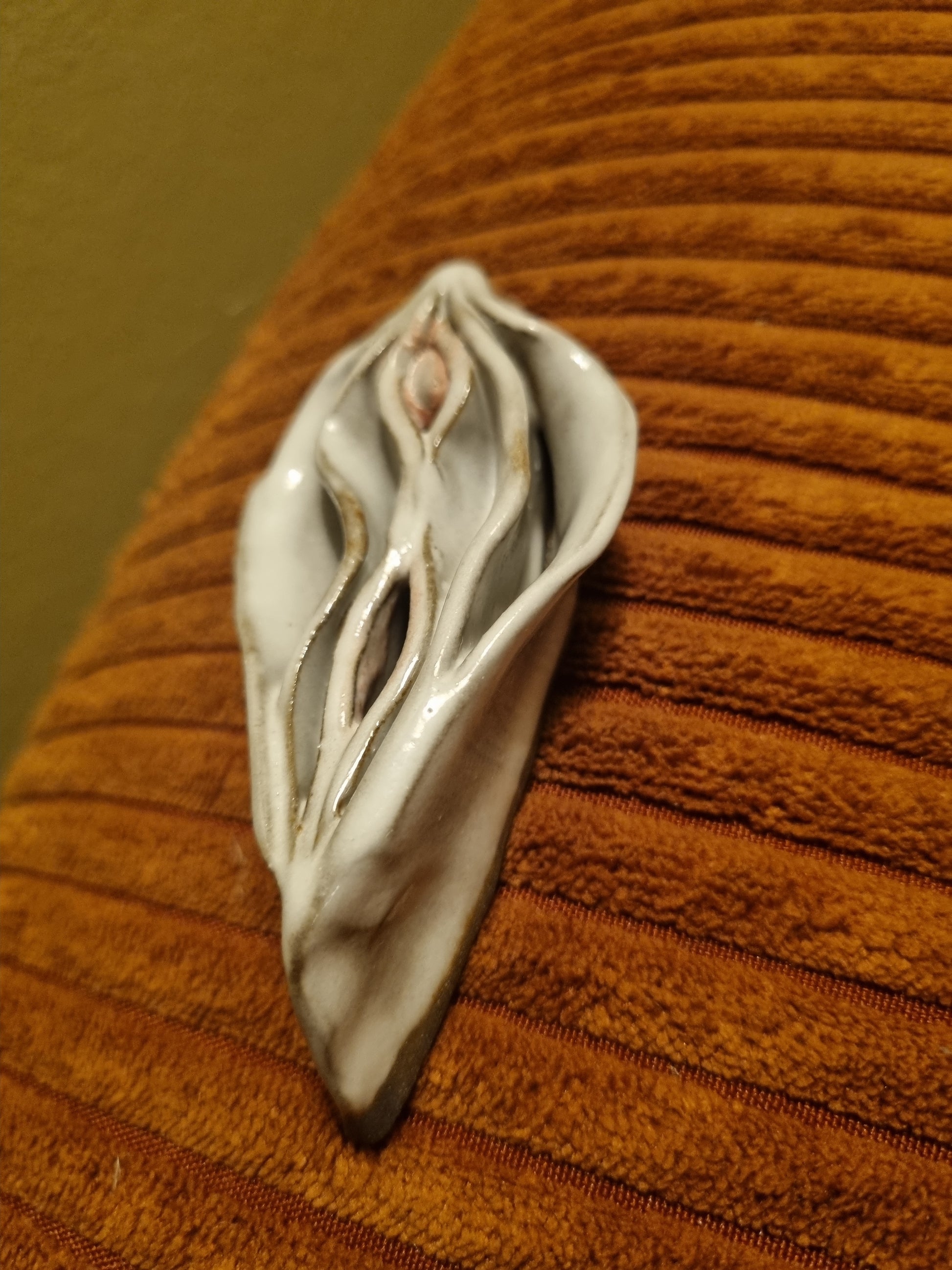 Fin lille hvid væghængt keramikkusse. Håndlavet unika lavet af keramikkunstner Martine Othilie.