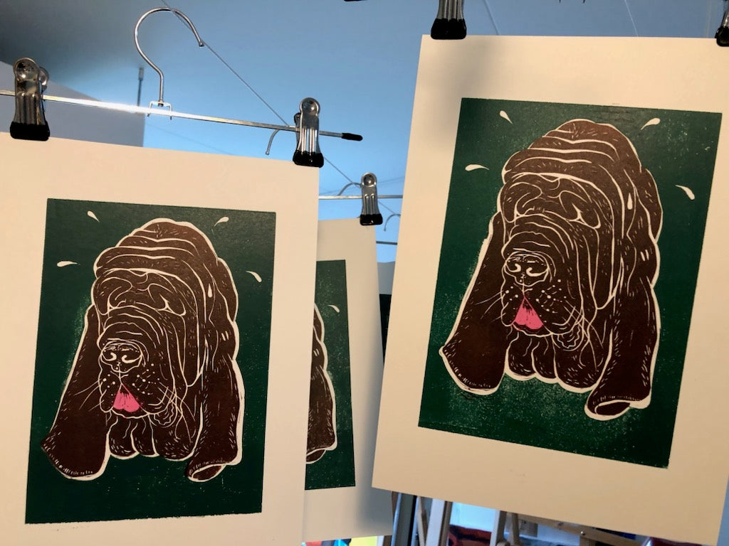 Linoleumstryk, trykt med oliesværte på 250g syrefrit cremefarvet papir.