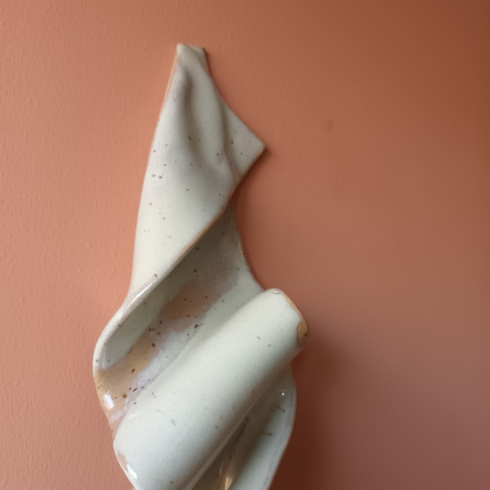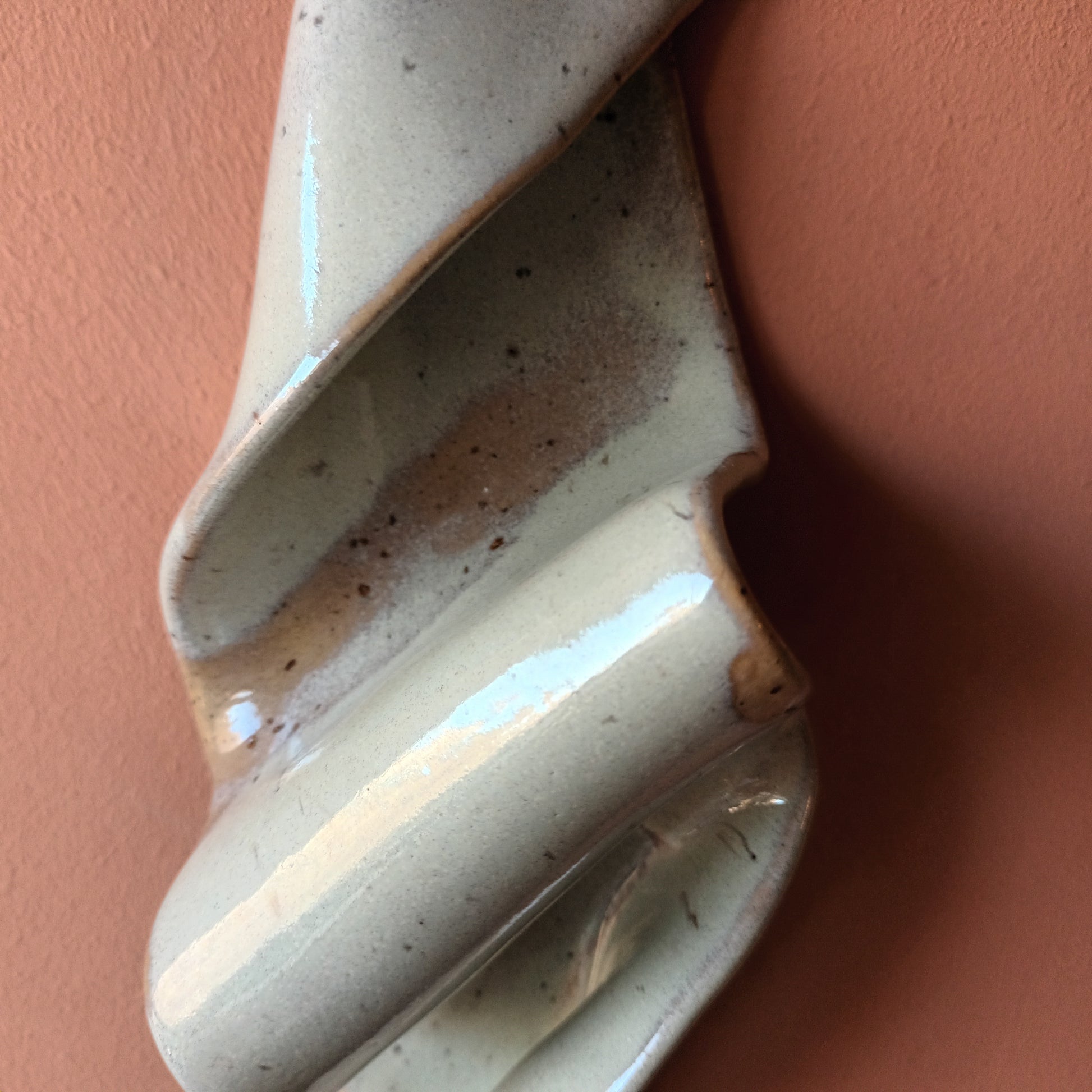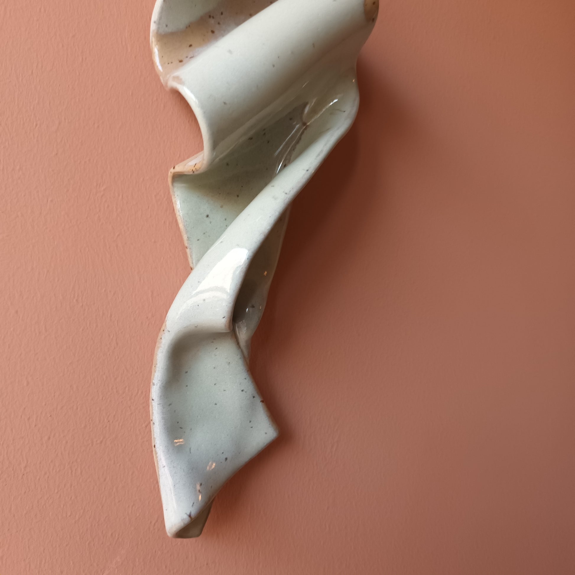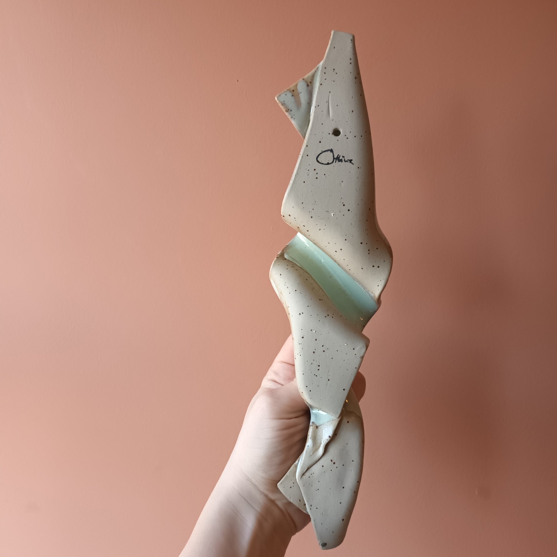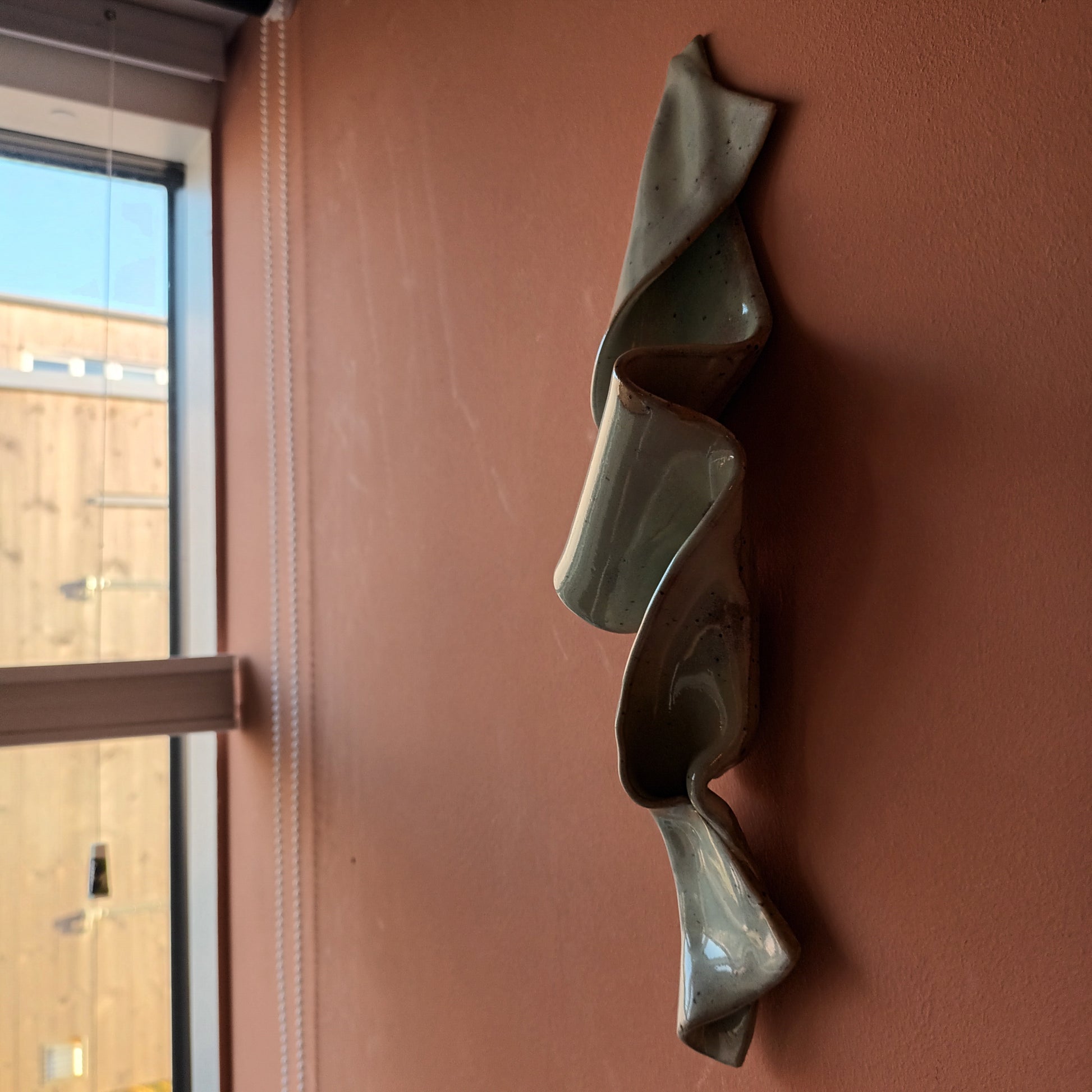 Blågrøn krummelure i lavaler lavet af Martine Othilie. Den kan hænge for sig selv eller som en del af din billedvæg og give farve og dybde.