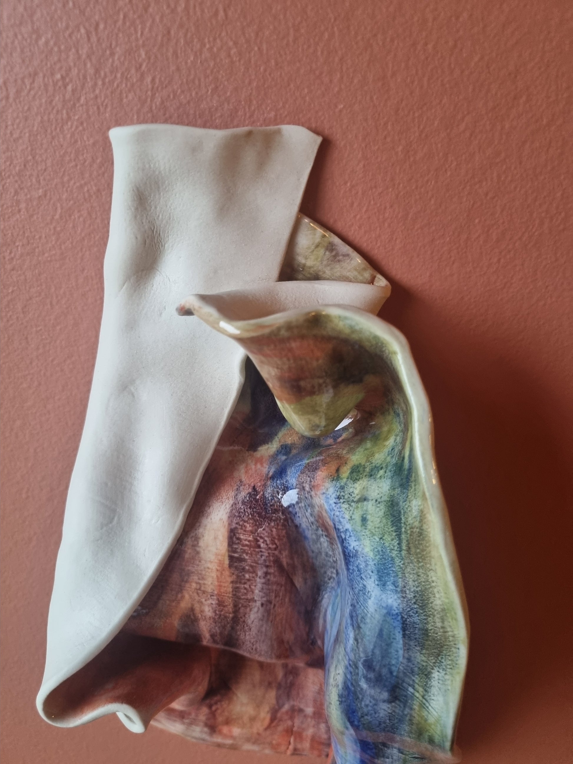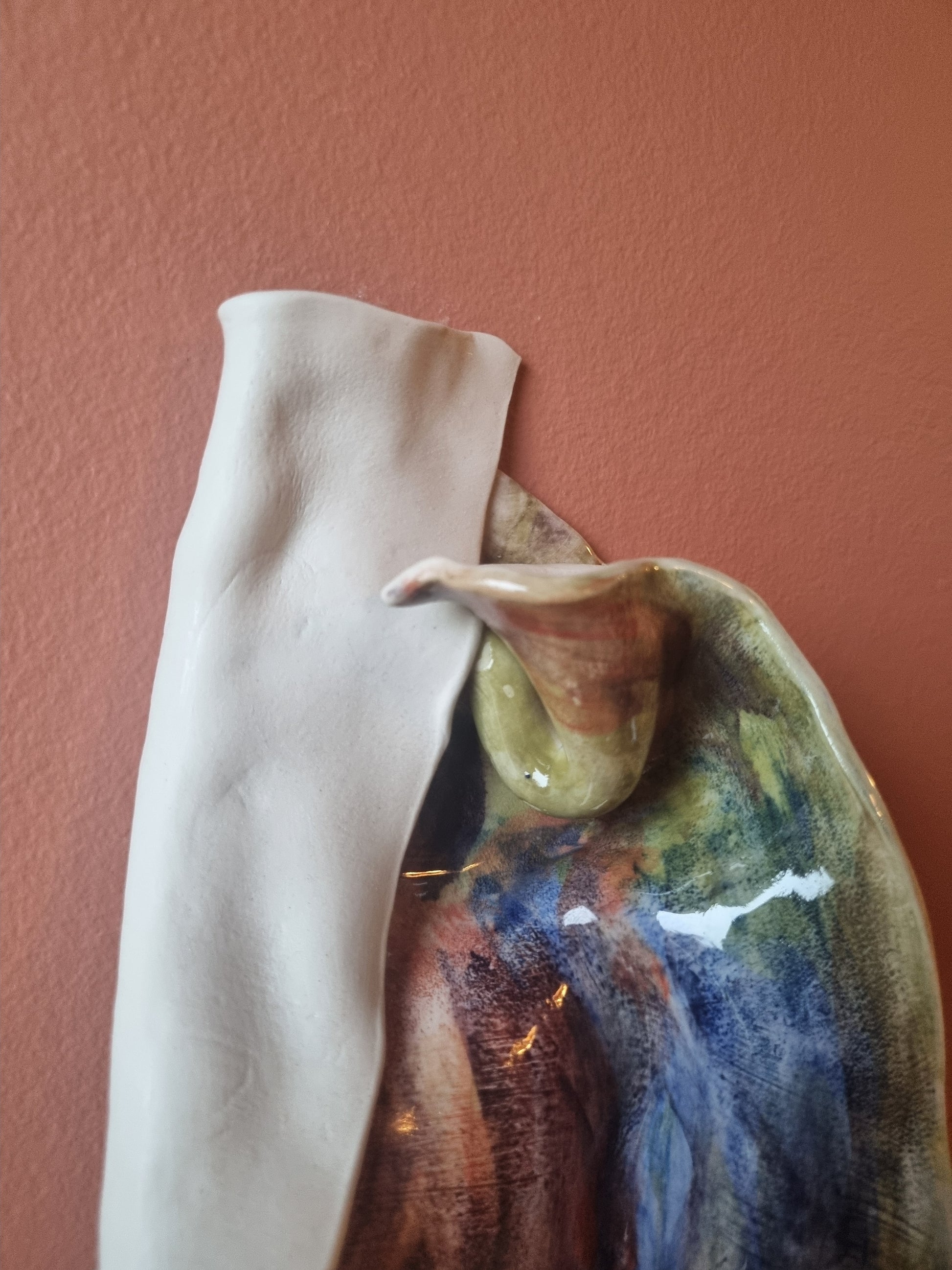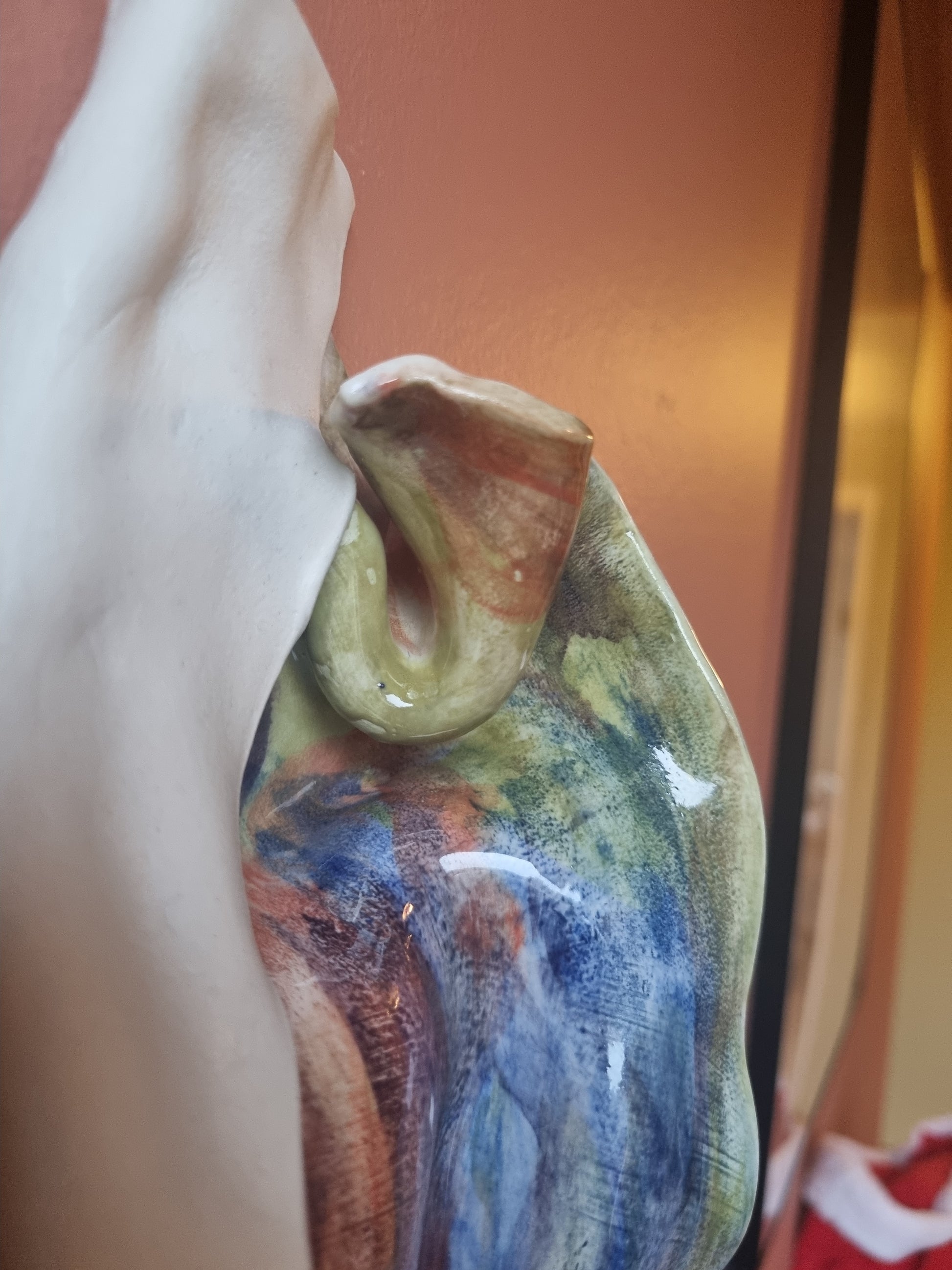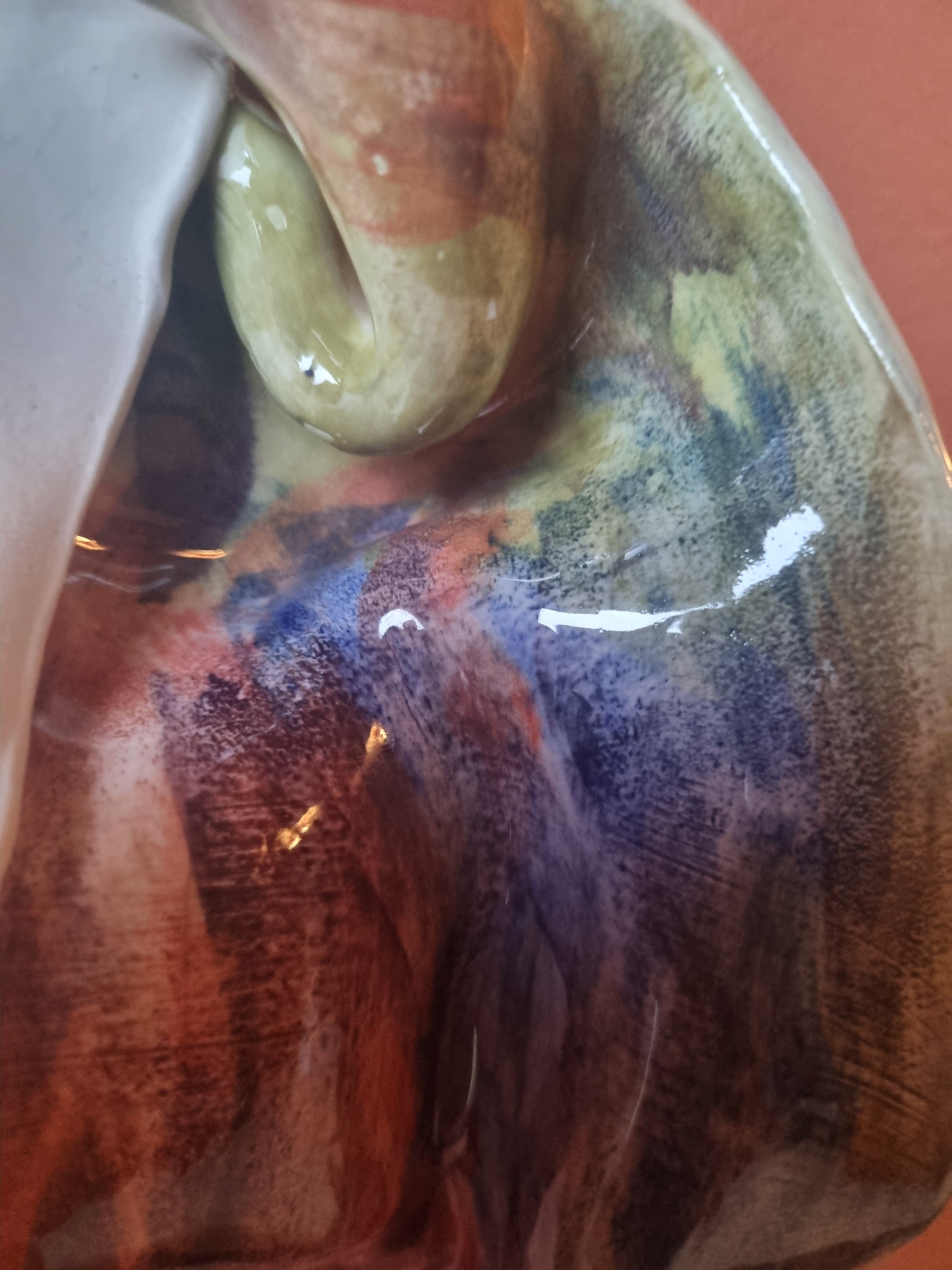 Abstrakt malet keramikkrummelure lavet af keramikkunstner Martine Othilie. Håndlavet unika.