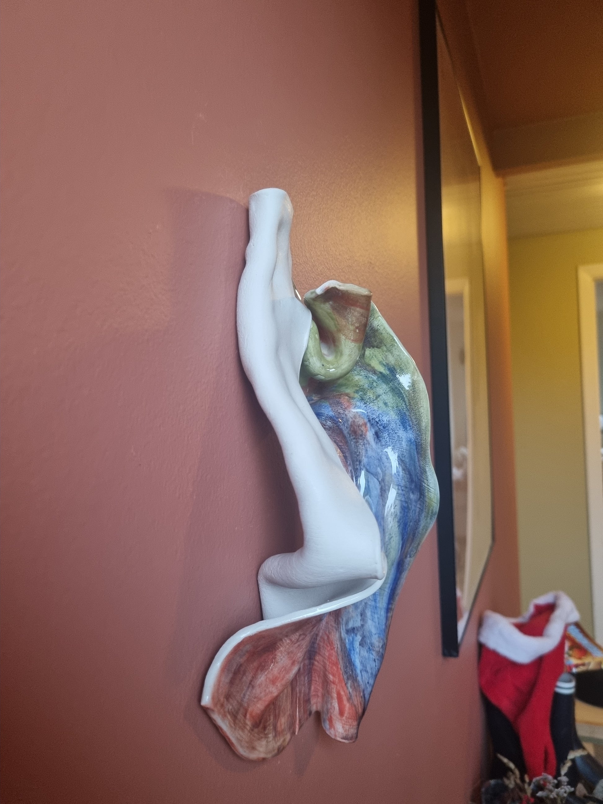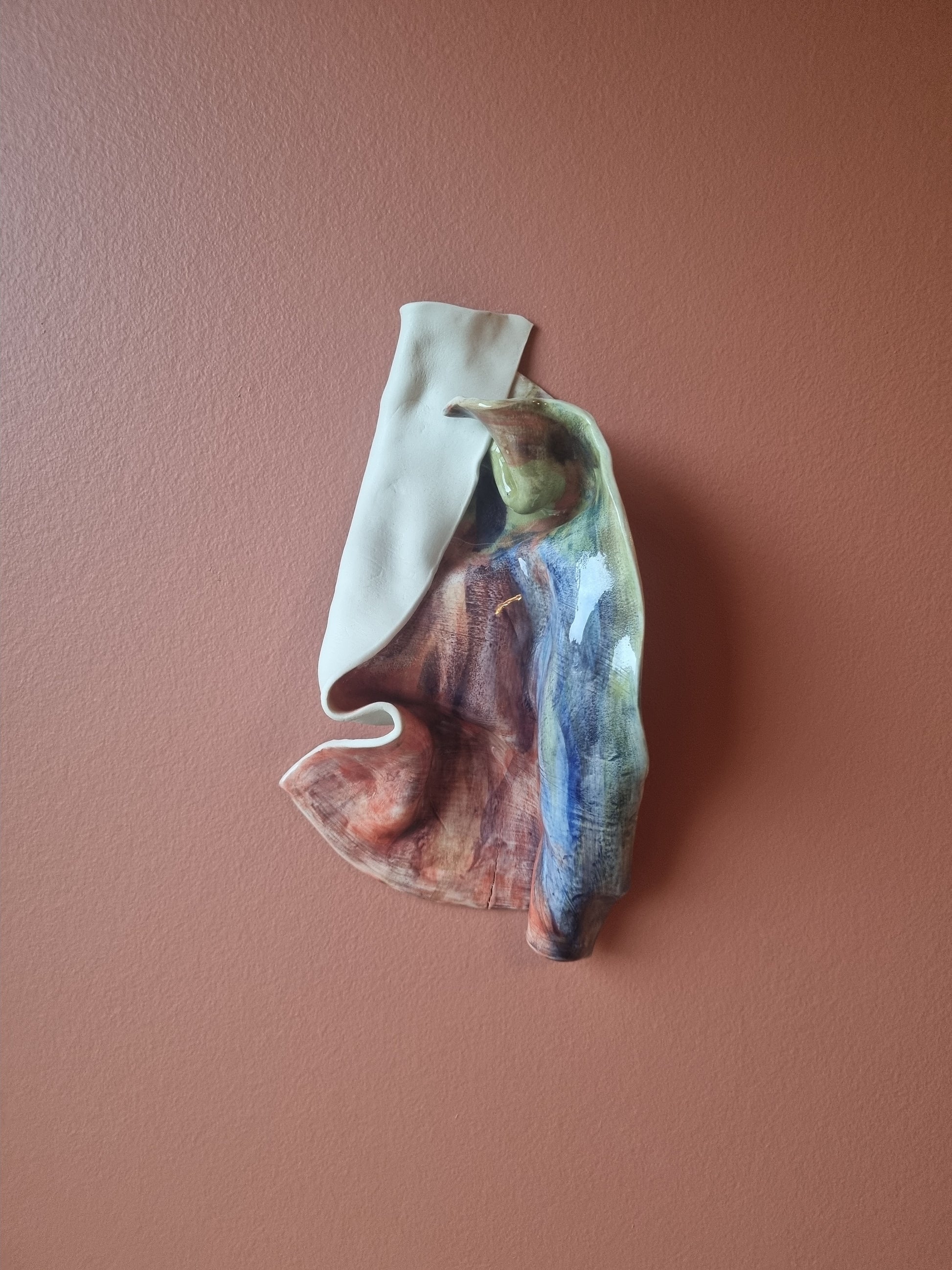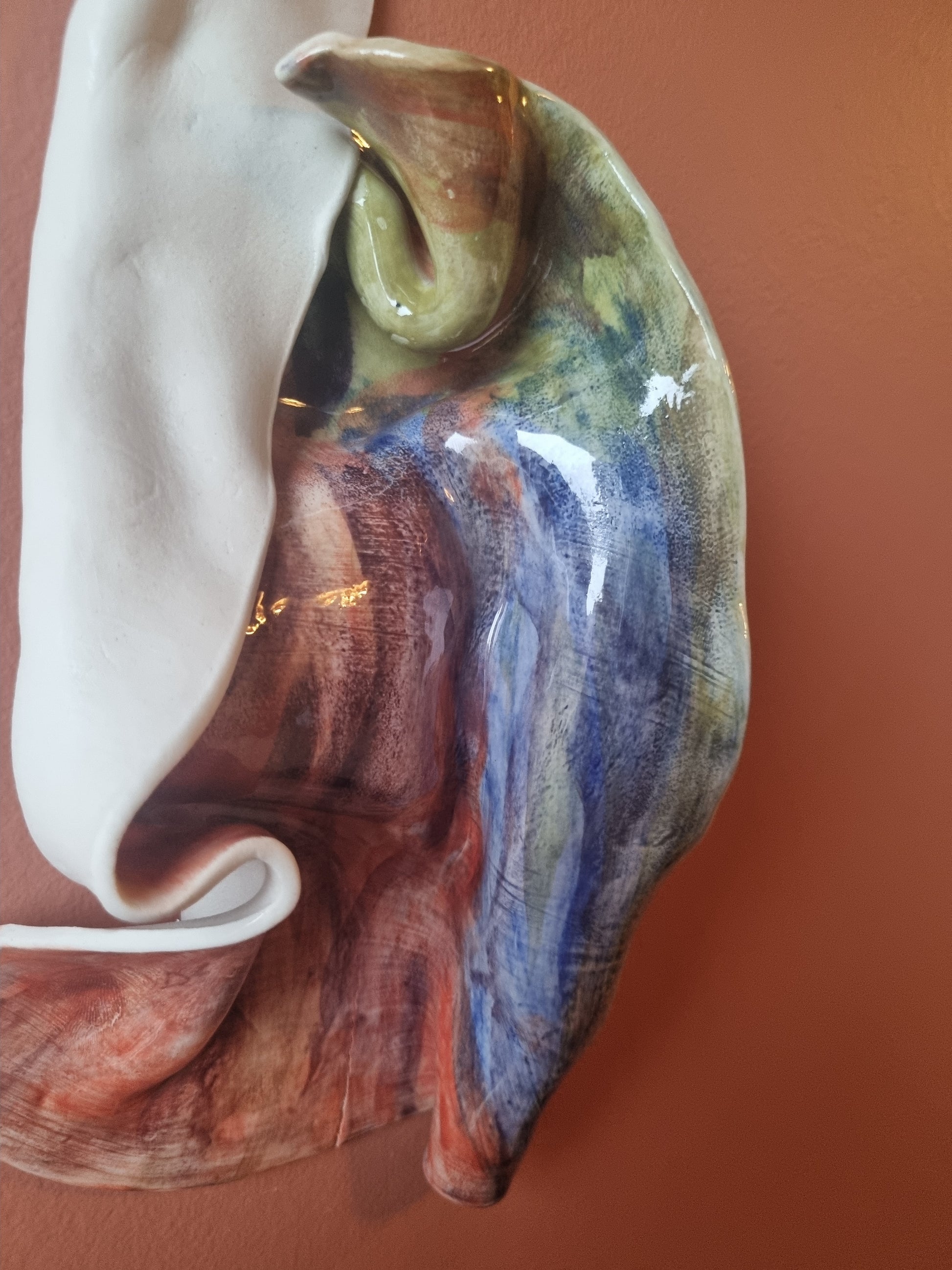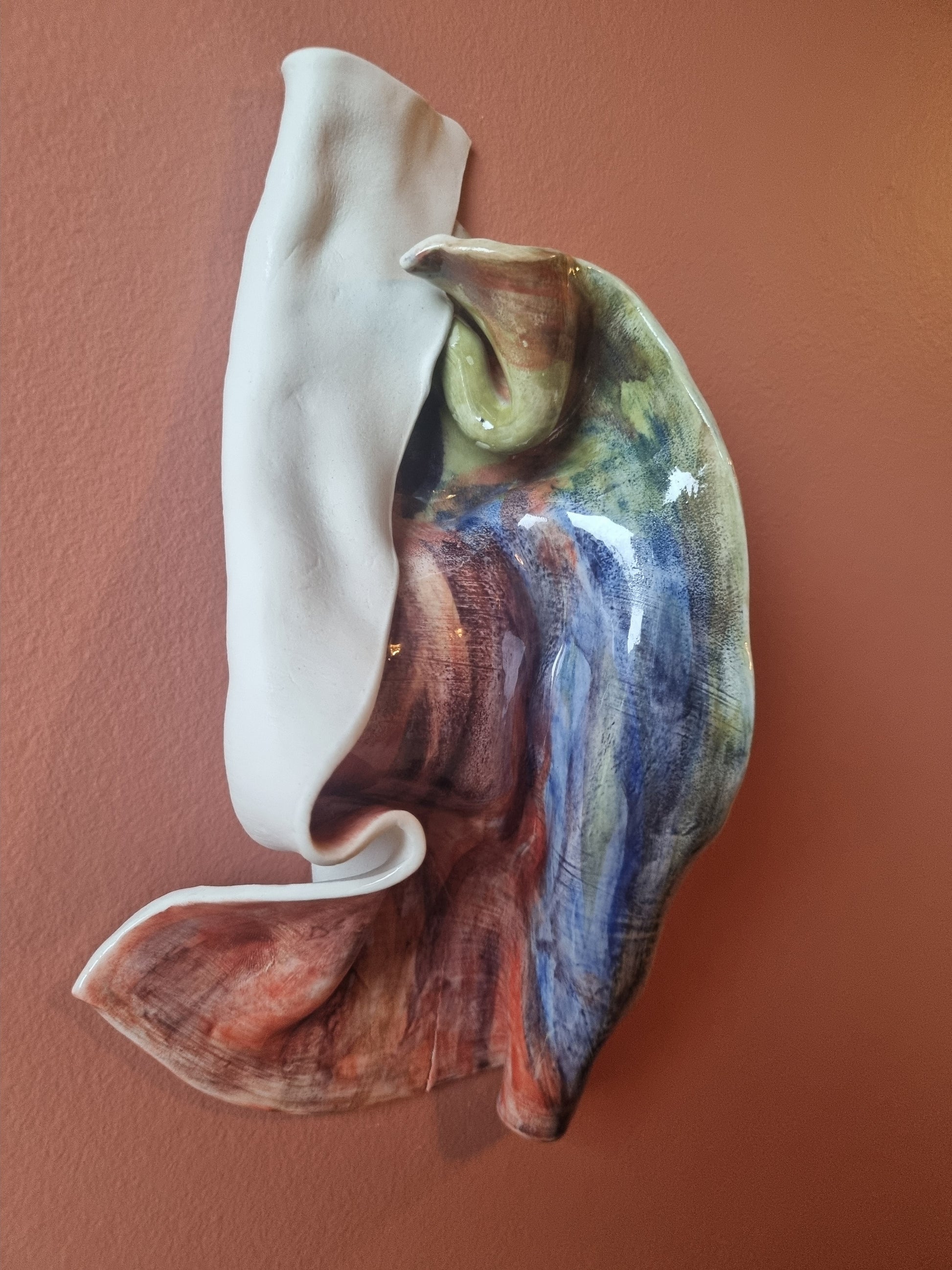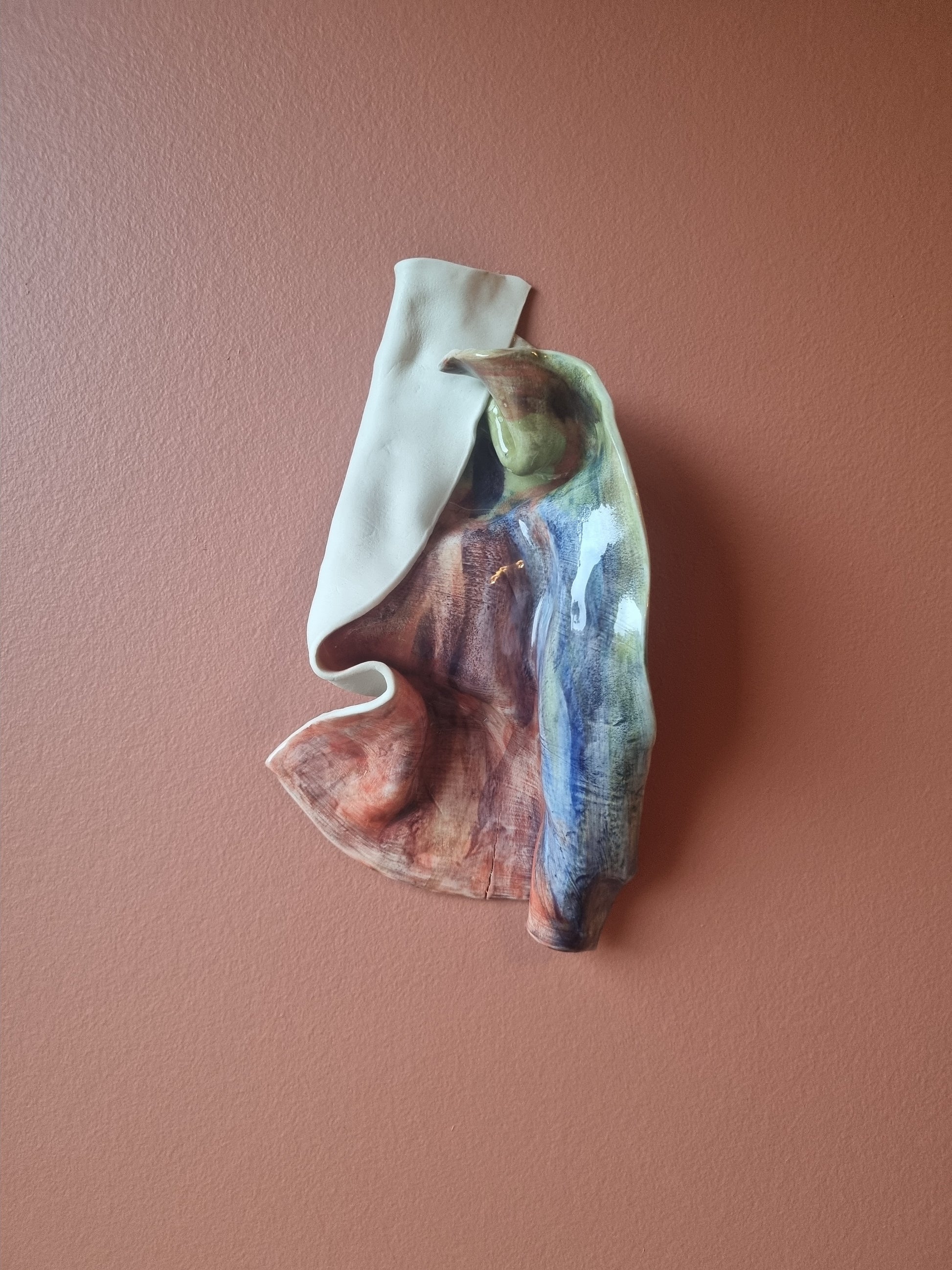 Abstrakt malet keramikkrummelure lavet af keramikkunstner Martine Othilie. Håndlavet unika.