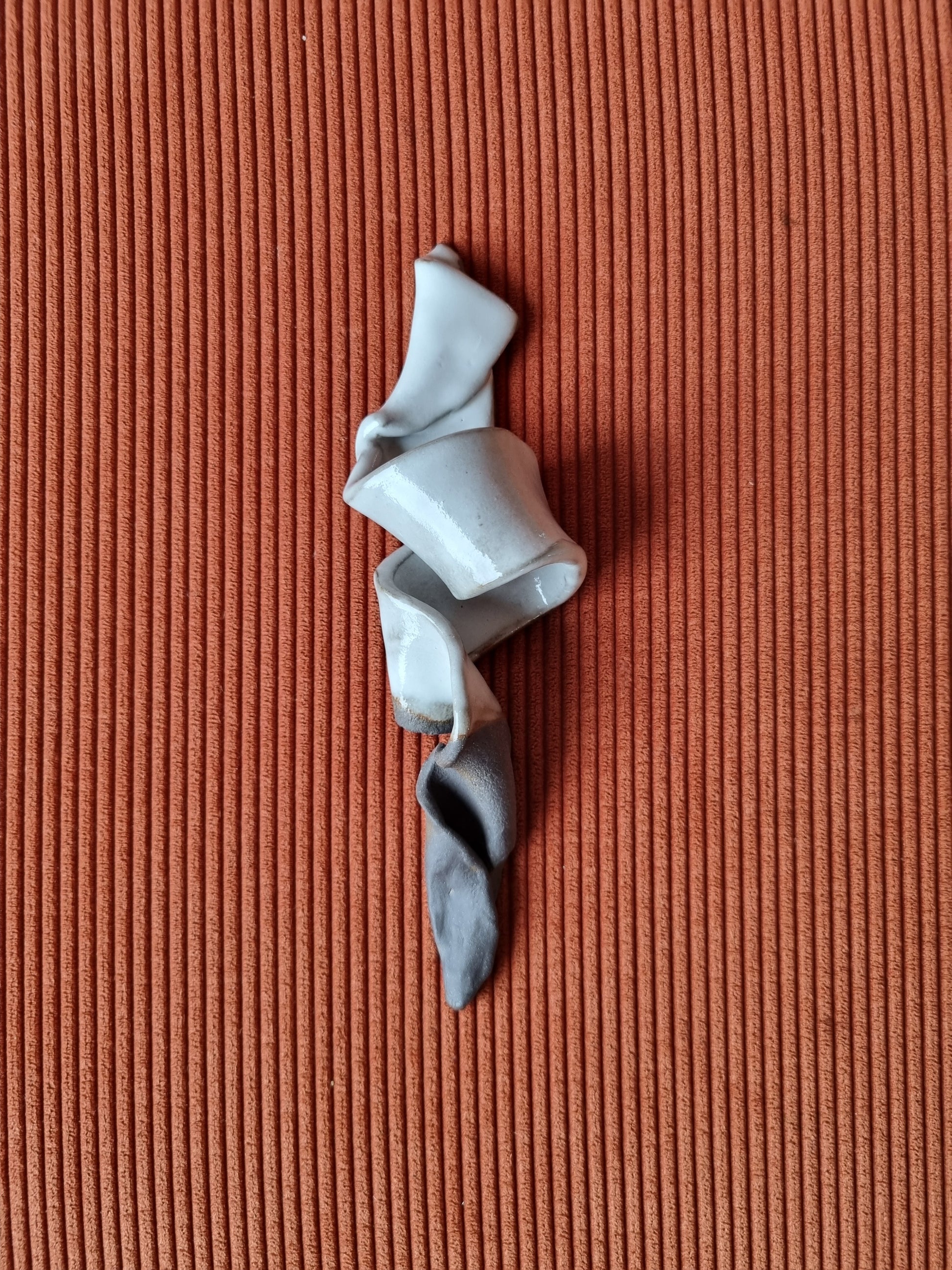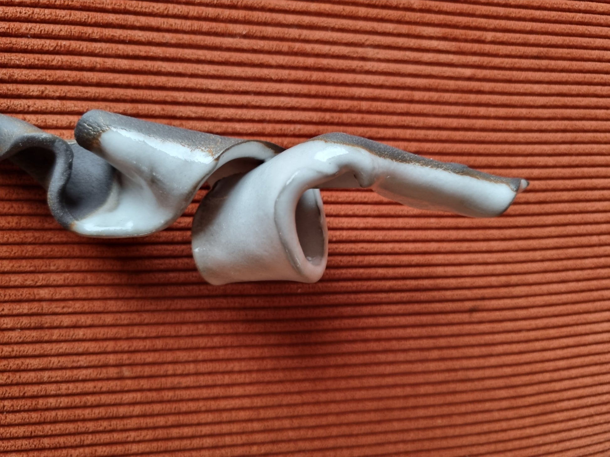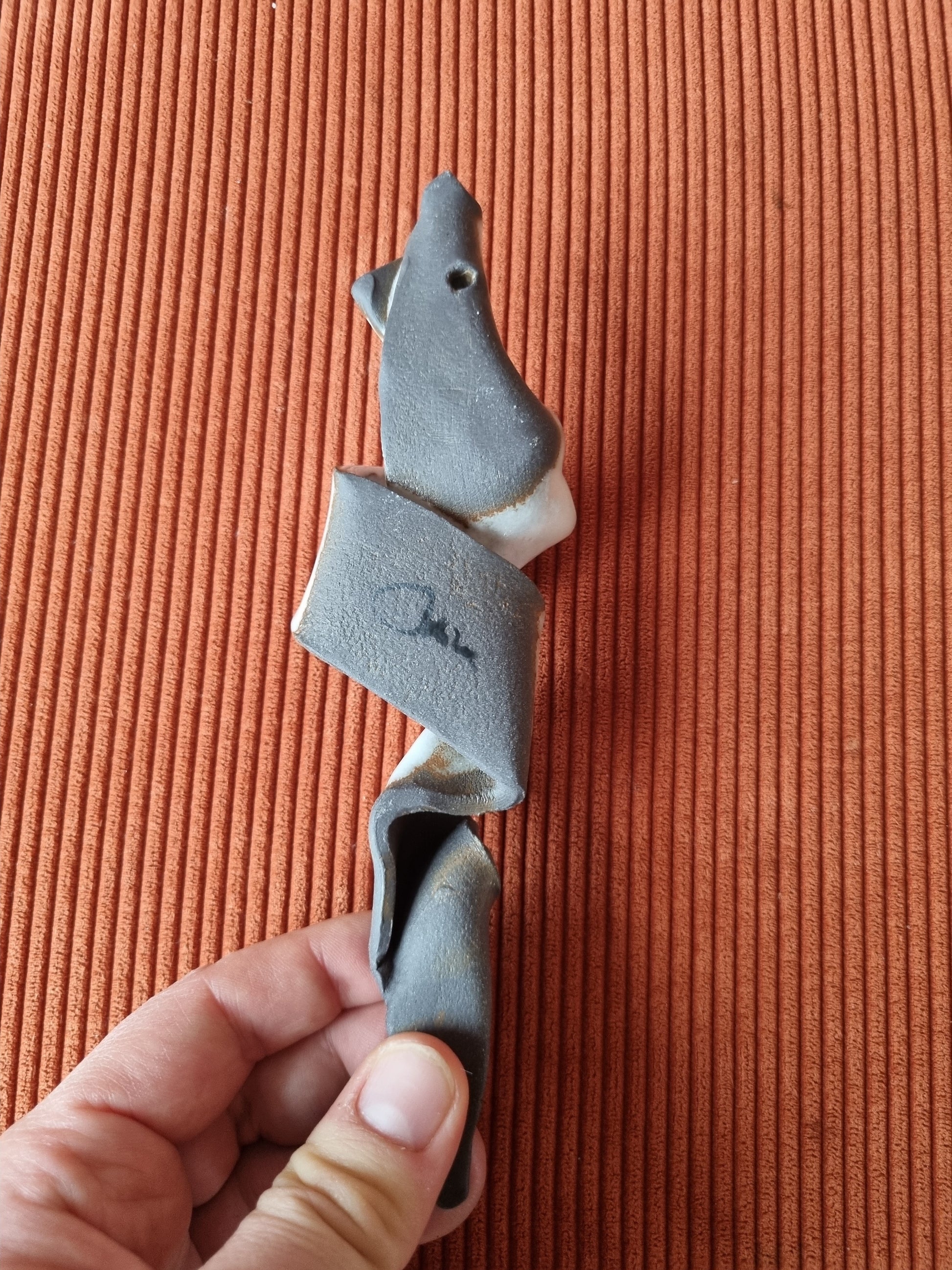 Væghængt keramikkrummelure lavet af keramikkunstner Martine Othilie. Håndlavet unika.