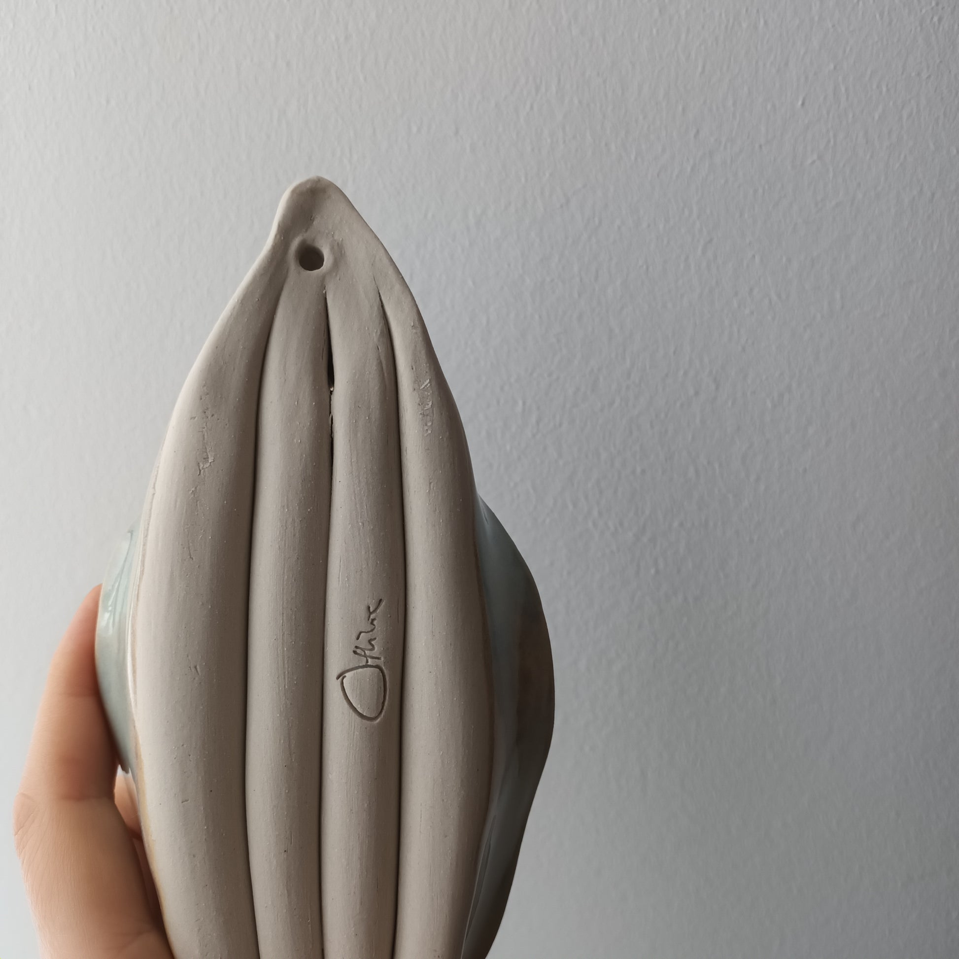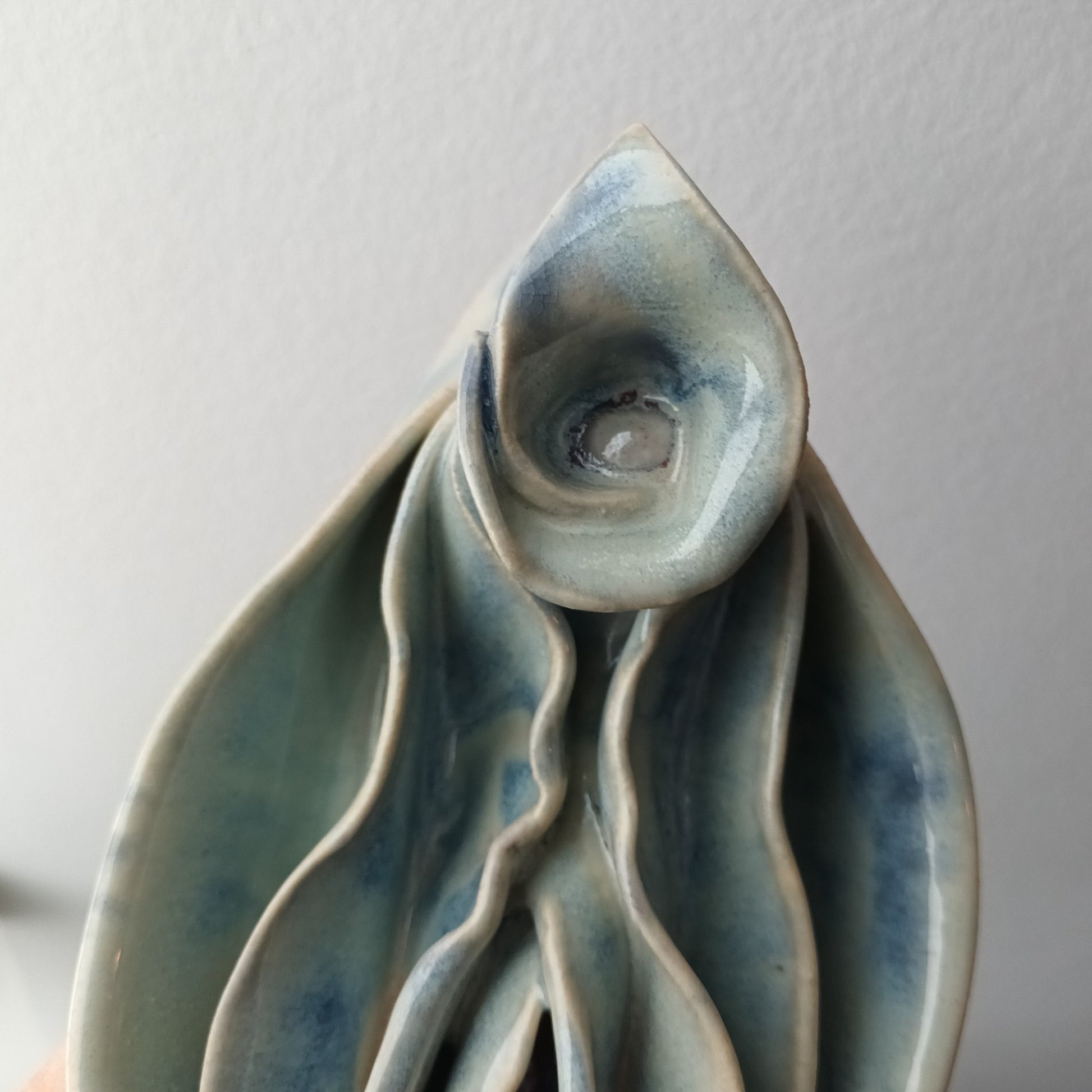 Håndlavet og håndmalet unika keramikkusse med blomsterklit lavet af Martine Othilie. Denne kusse vil skabe power hvor end den får lov at hænge.
