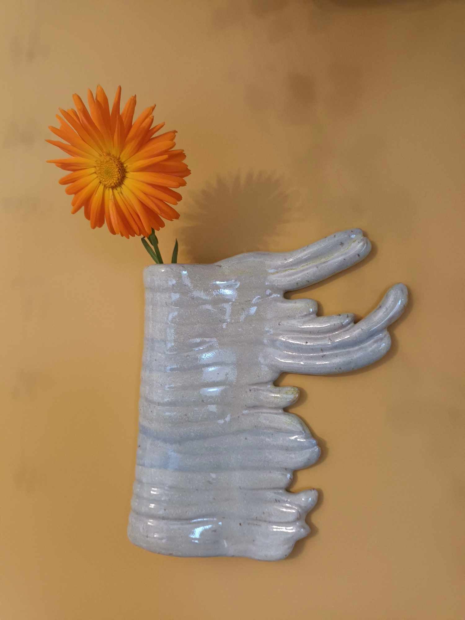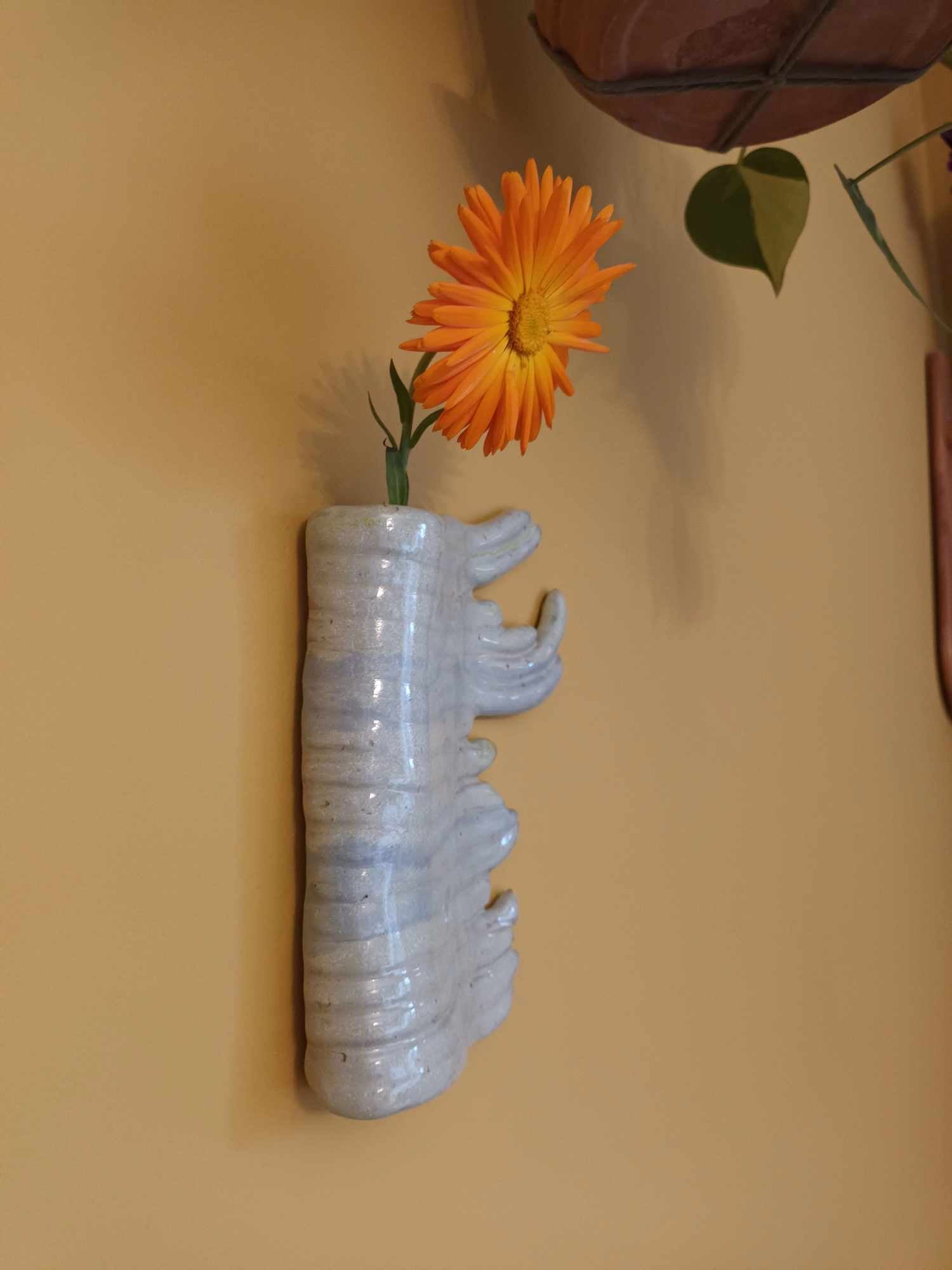 Unika keramikkunst lavet af Martine Othilie. Med denne 16-fingrede hængevase kan hænge dine blomster op på væggen.