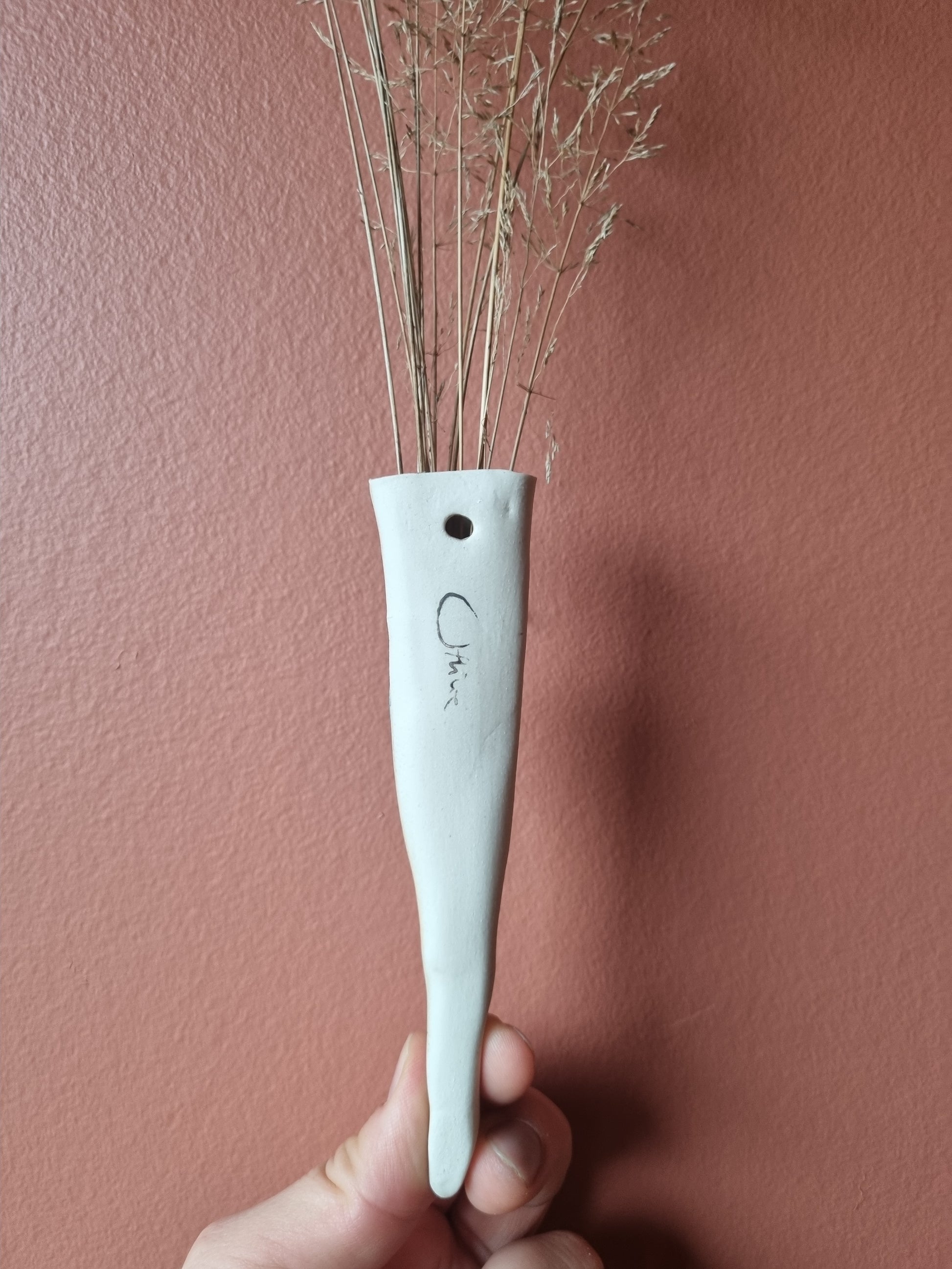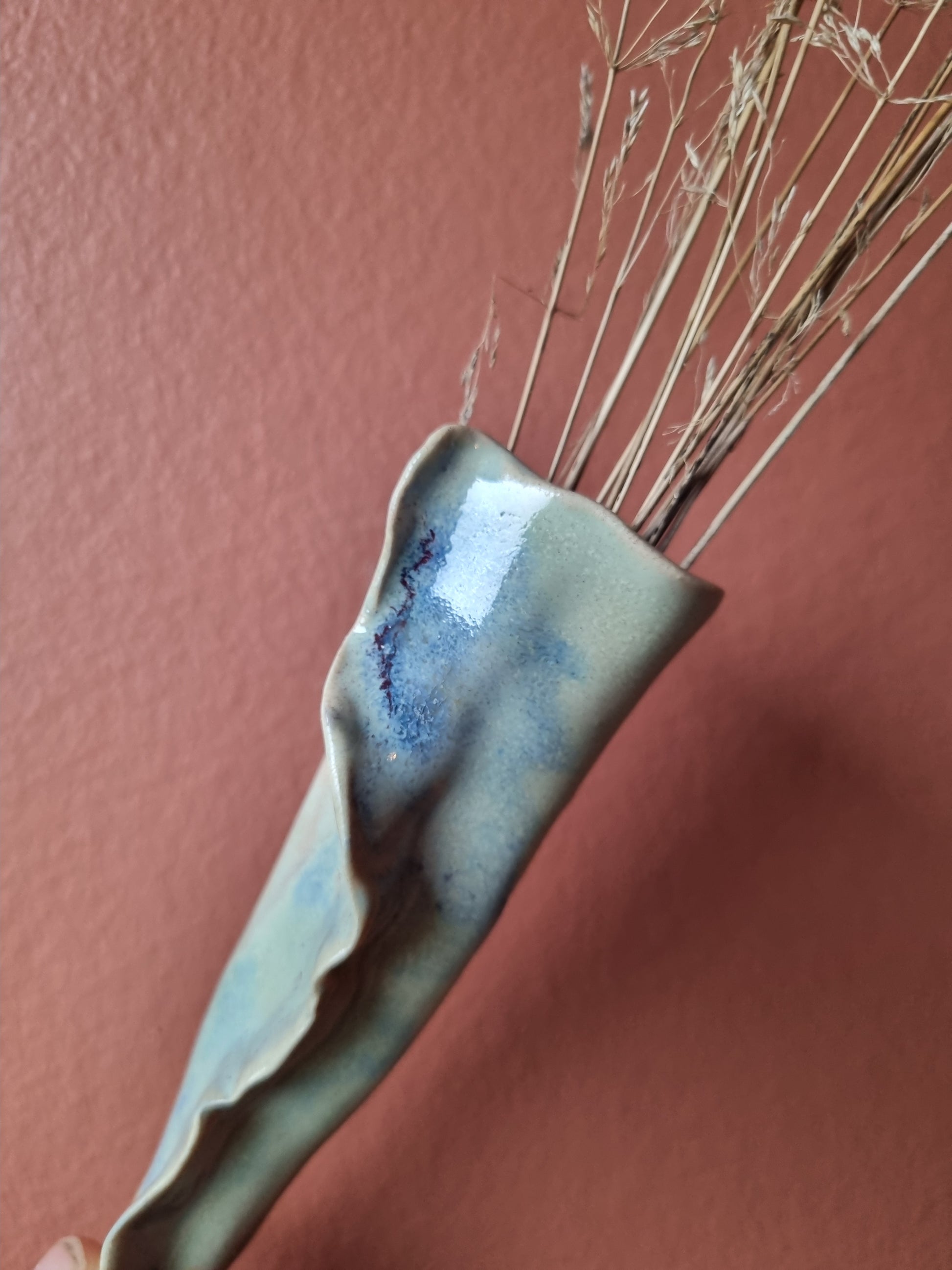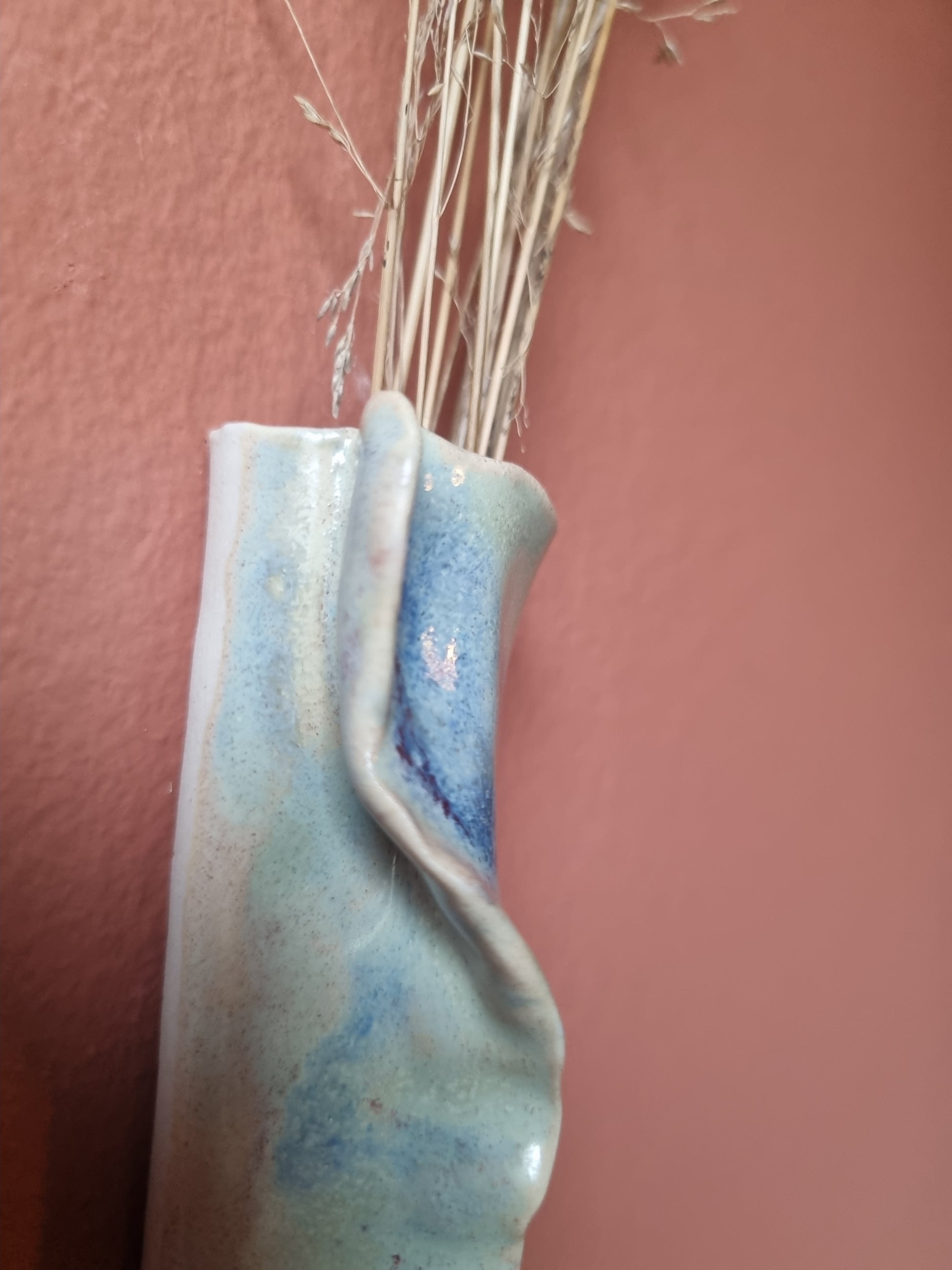 Få dine blomster op på væggen med denne væghængte keramik lavet af keramikkunstner Martine Othilie. Håndlavet unika.