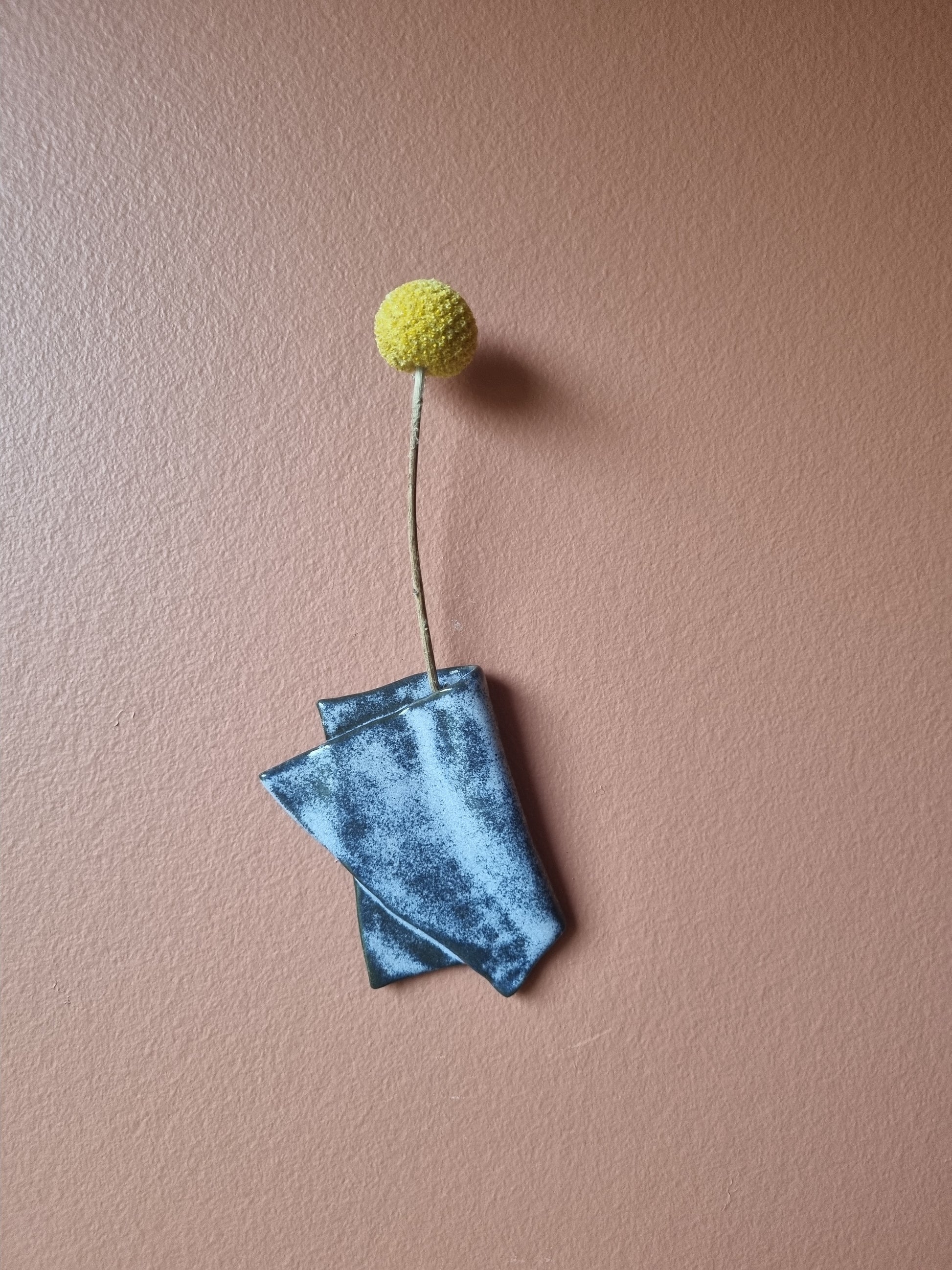 Få dine blomster op på væggen med denne væghængte keramikvase lavet af keramikkunstner Martine Othilie. Håndlavet unika.